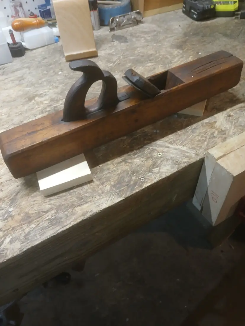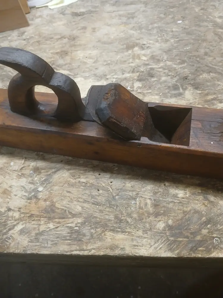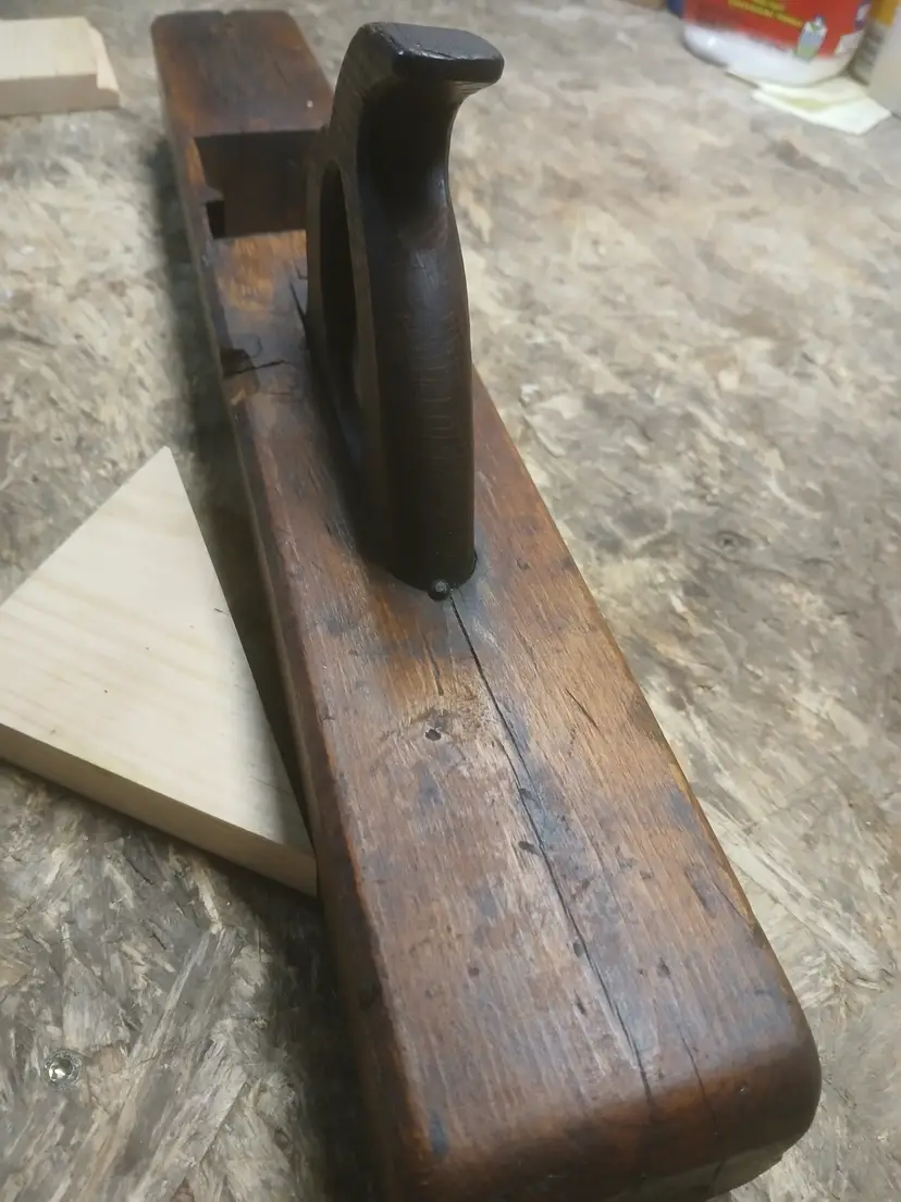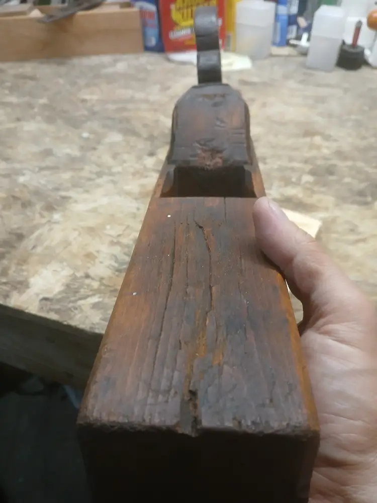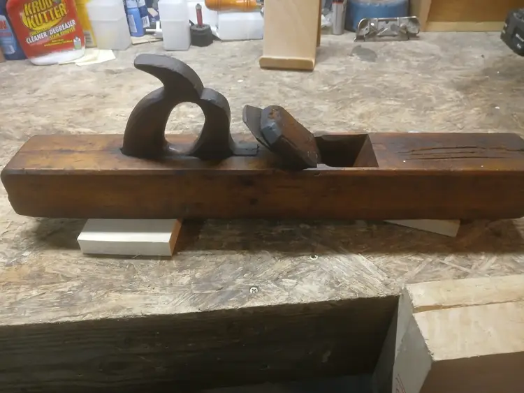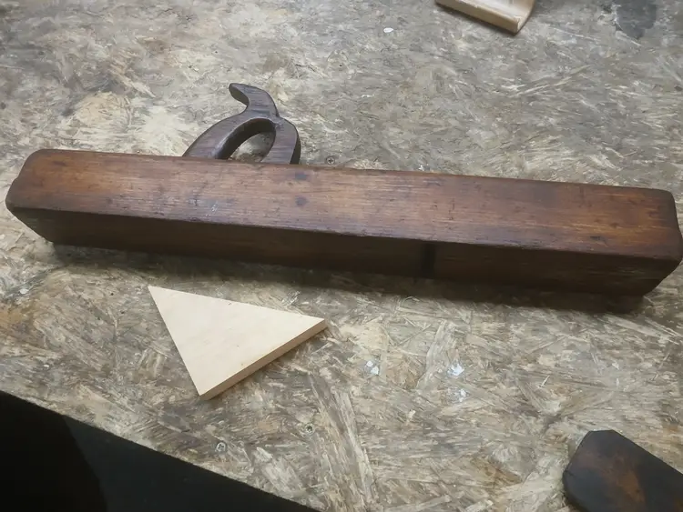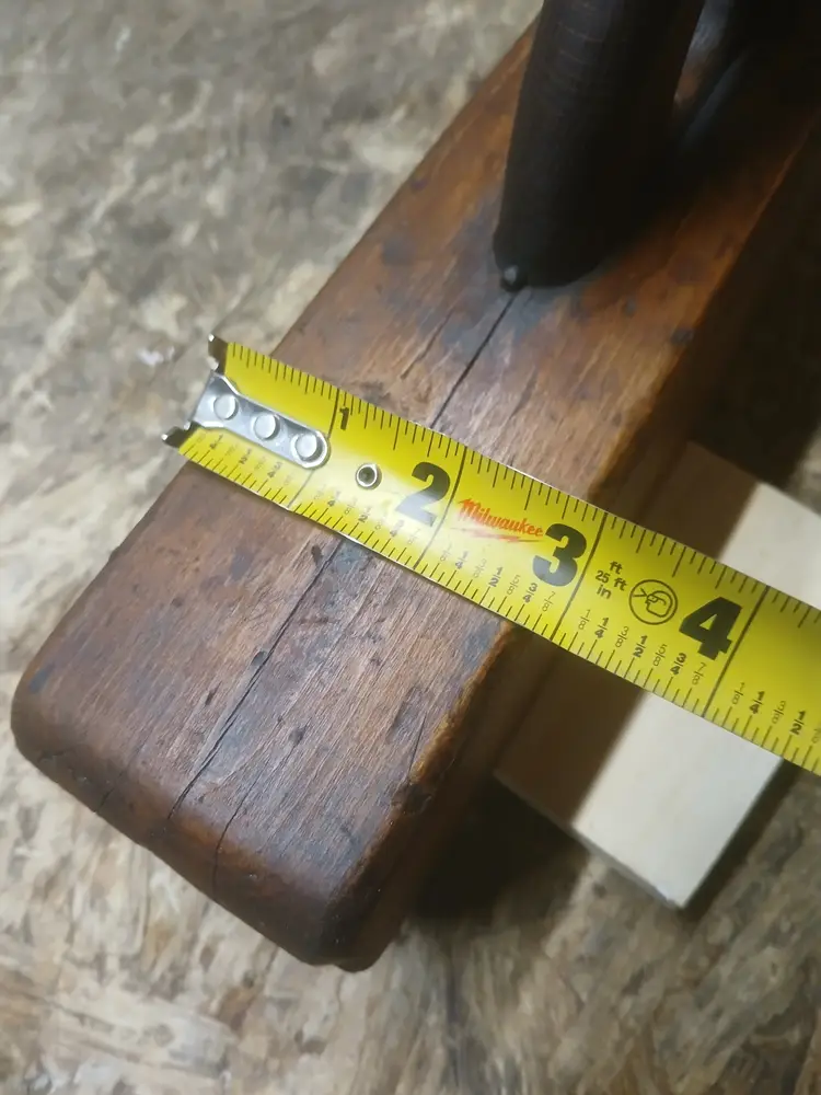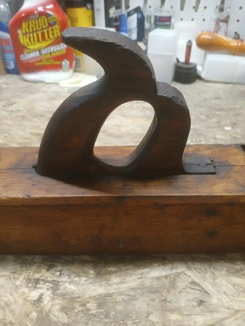 Antique wooden hand plane. A single iron hand plan. 21" long and 2 3/4 inches wide. No marker marks that I could find. The iron is cast streel.