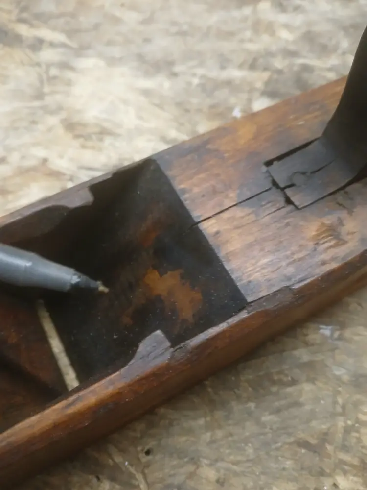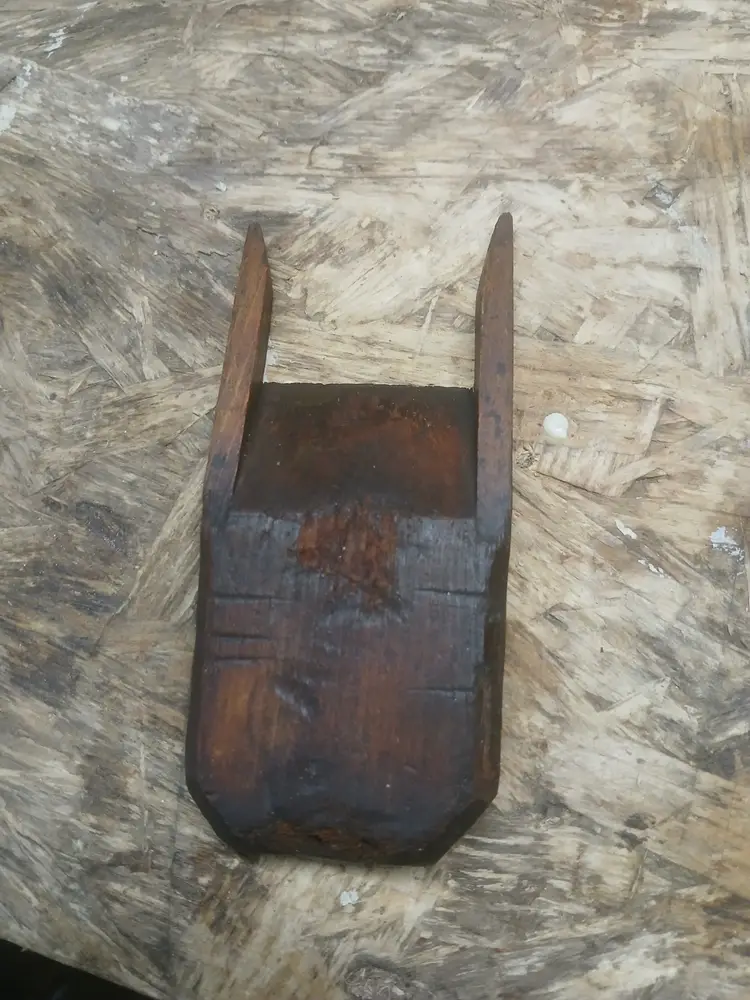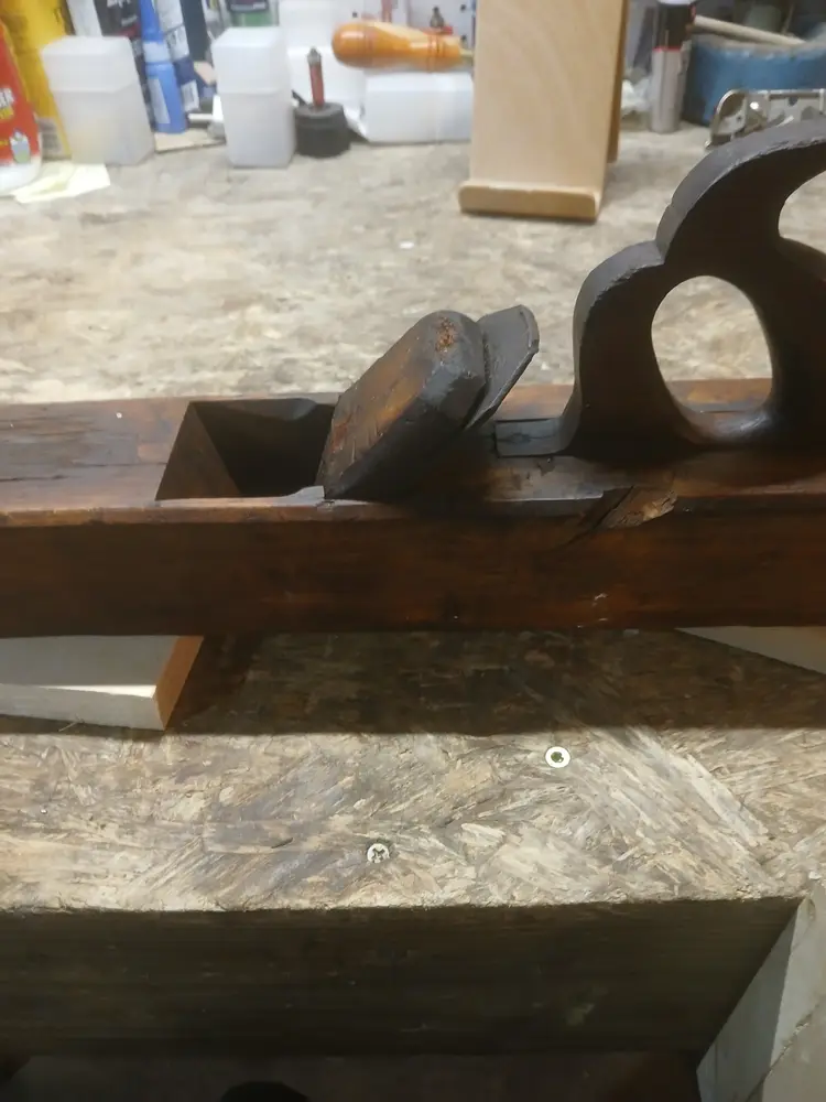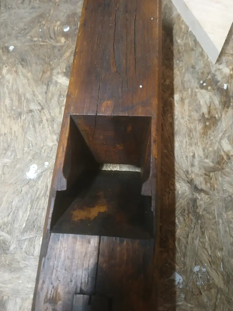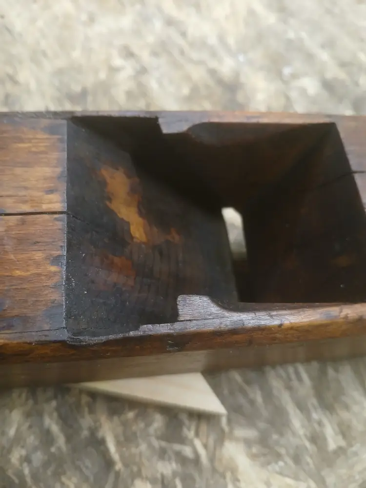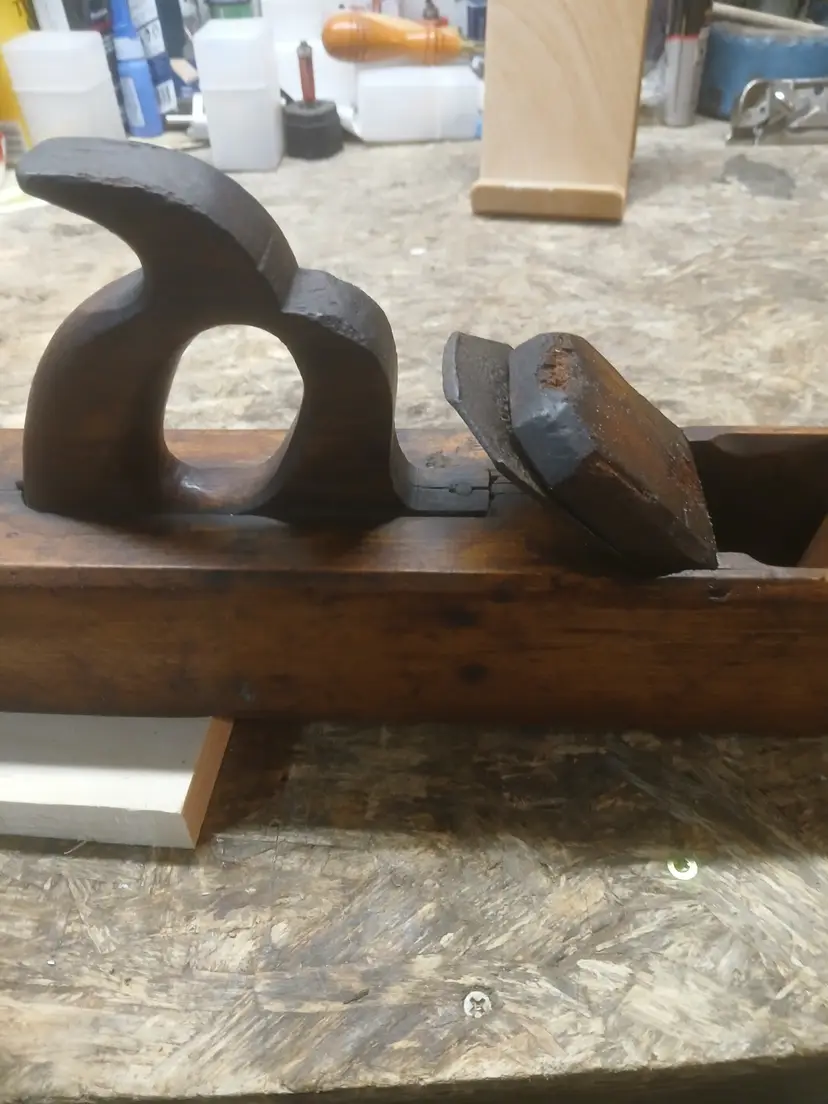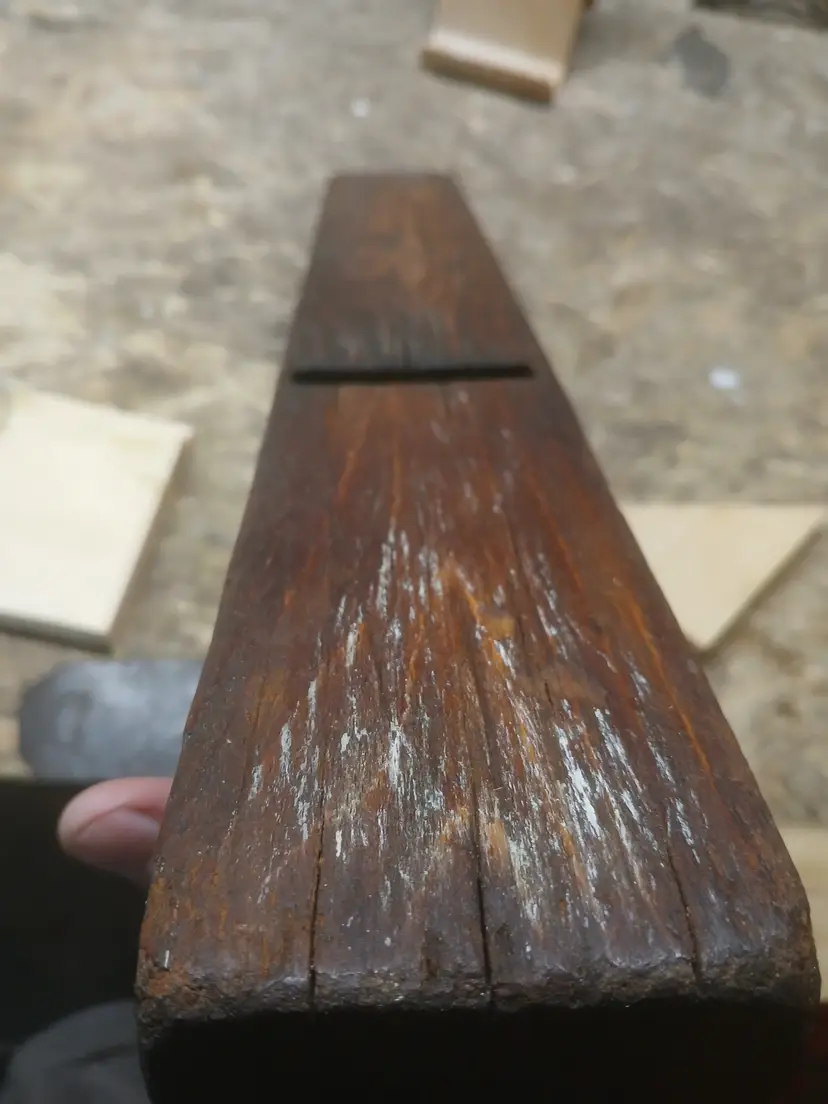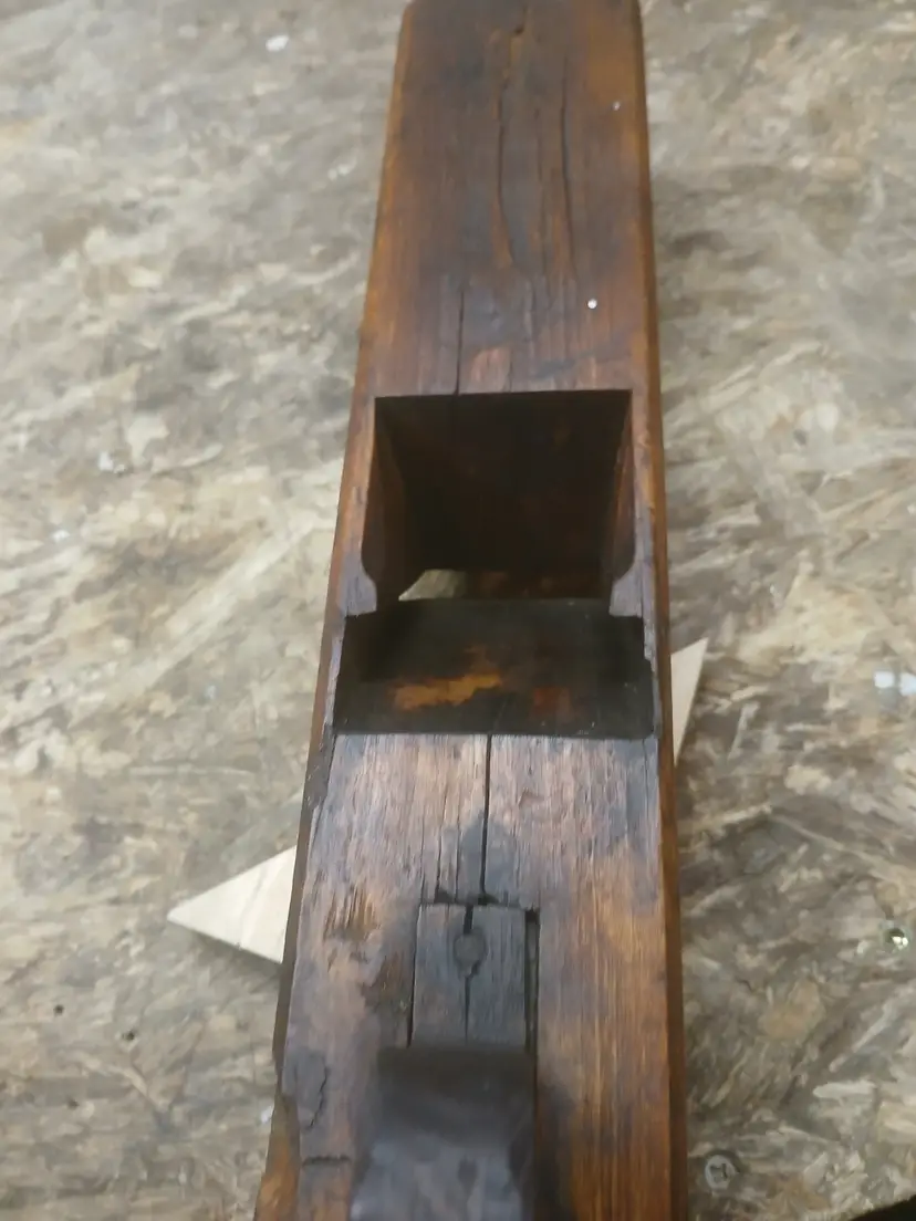 Antique wooden hand plane. A single iron hand plan. 21" long and 2 3/4 inches wide. No marker marks that I could find. The iron is cast streel.