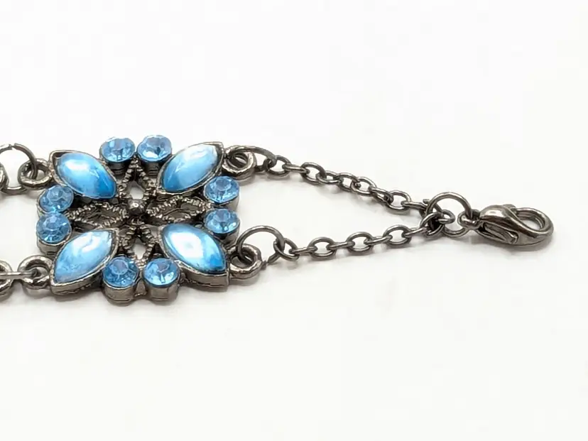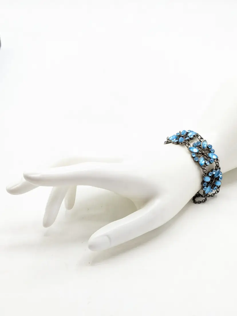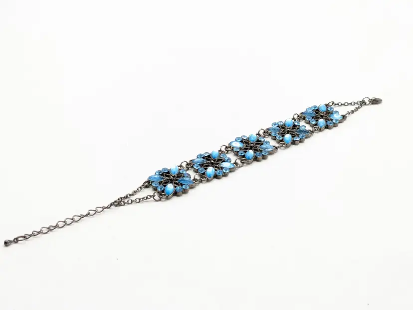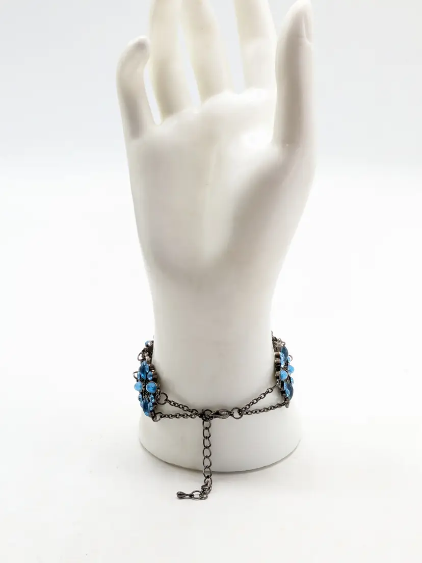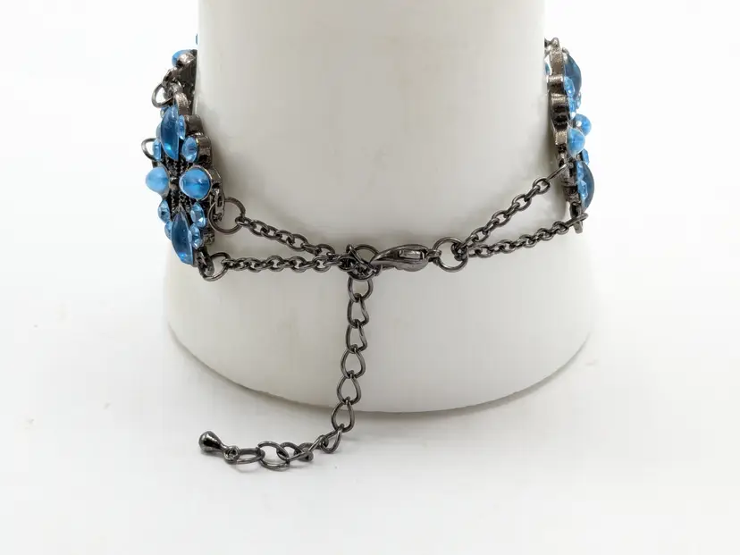 Good condition. Crystals are an ocean blue. Size 7" with a 2" extender. 3/4" wide. EN2