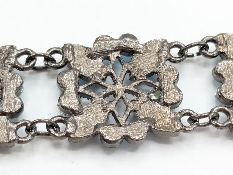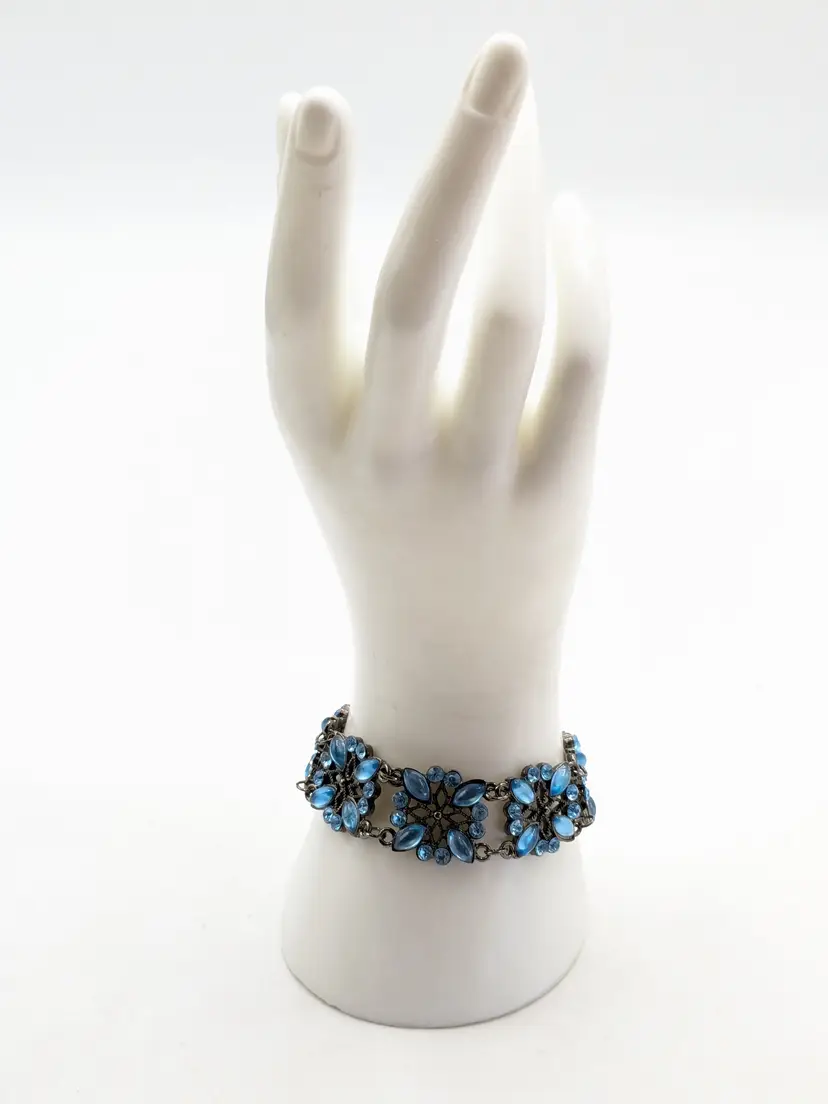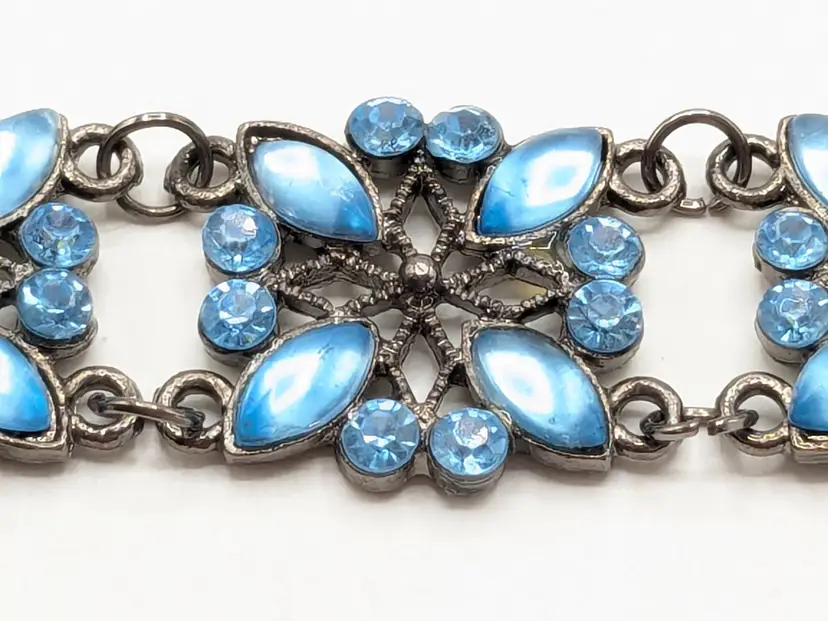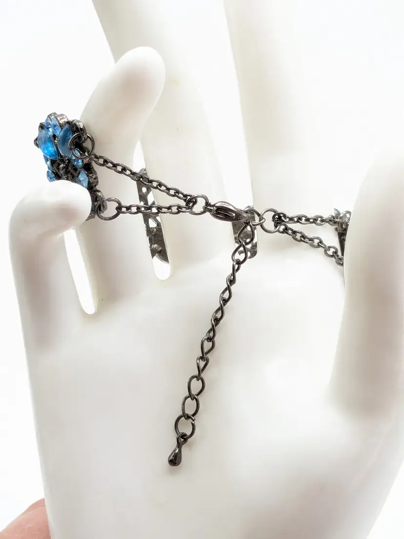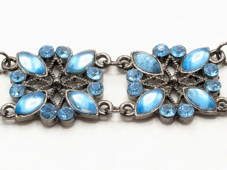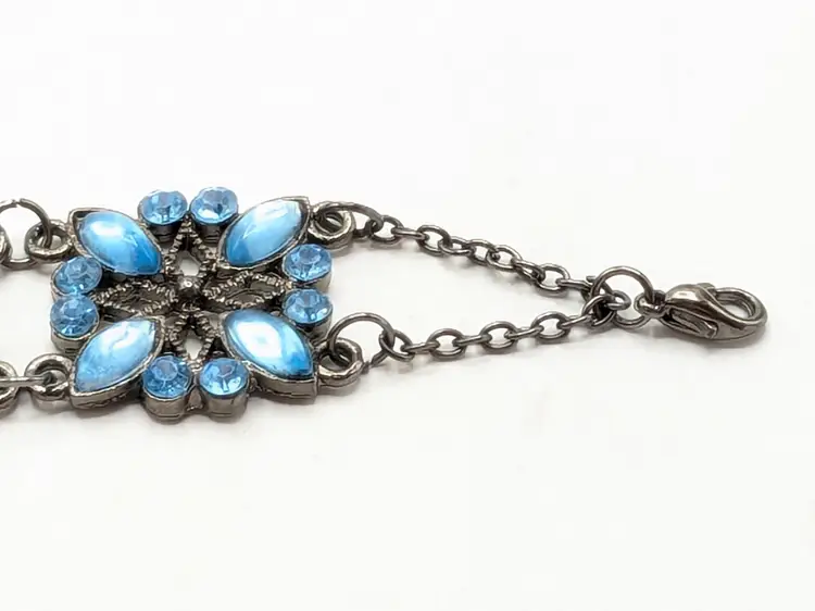 Good condition. Crystals are an ocean blue. Size 7" with a 2" extender. 3/4" wide. EN2