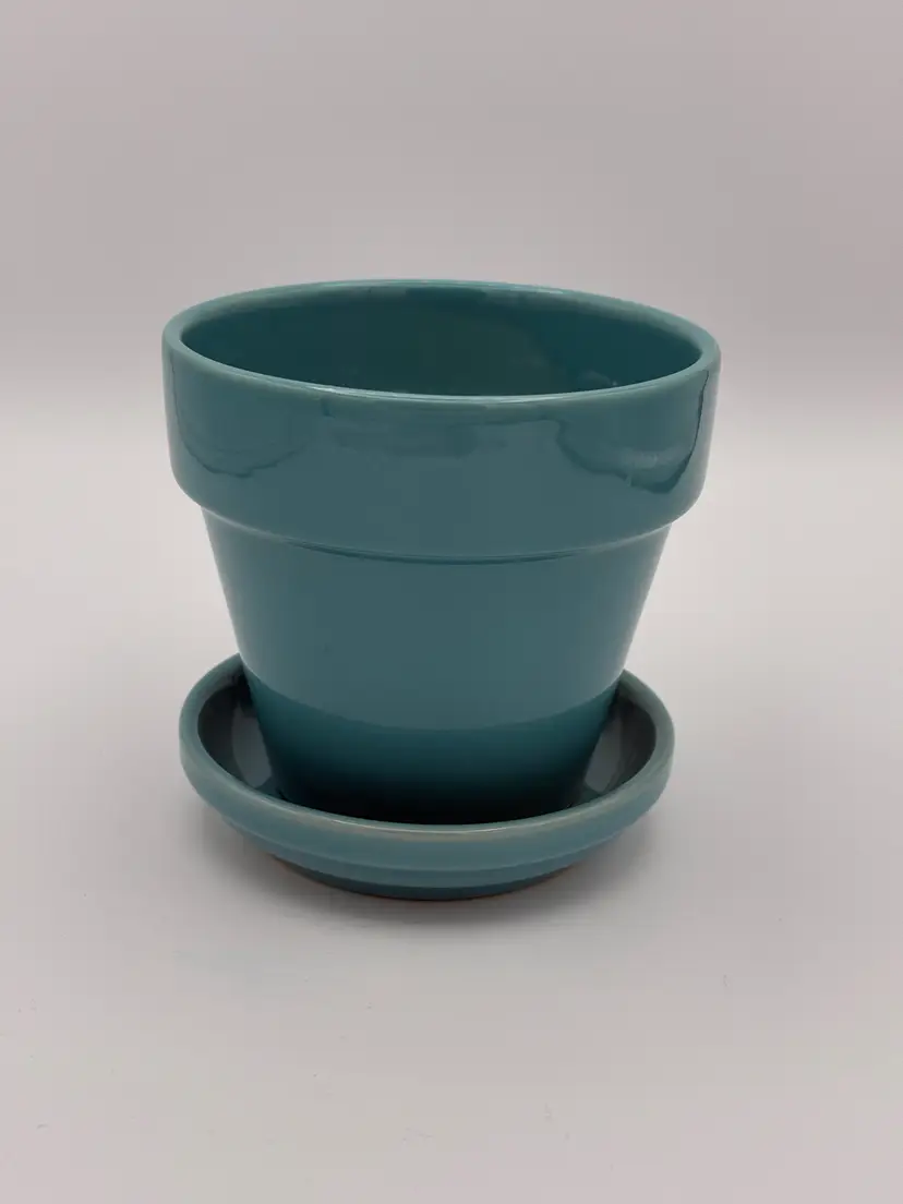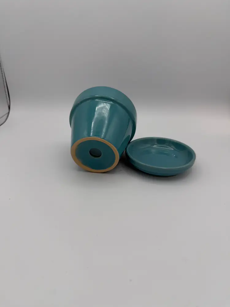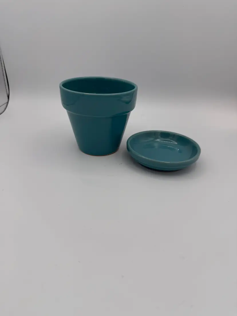 Aqua Color Clay Planter Pot With Saucer No Chips/Cracks. 4" H