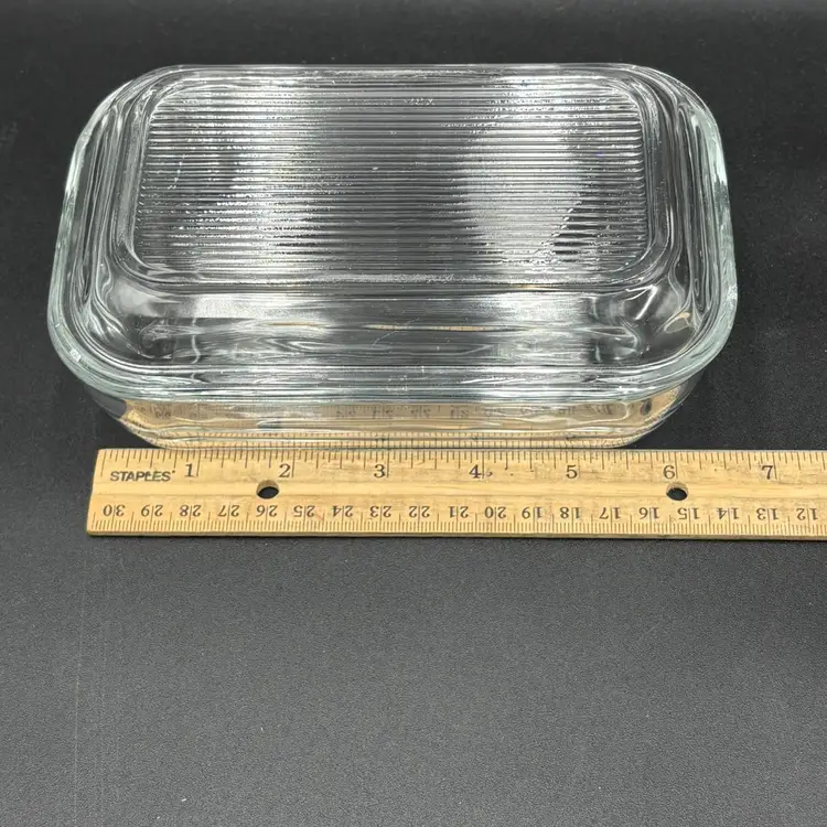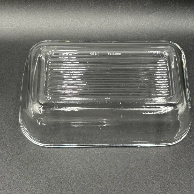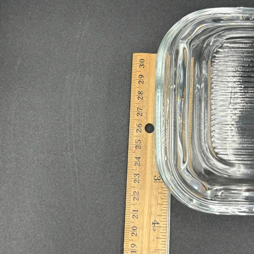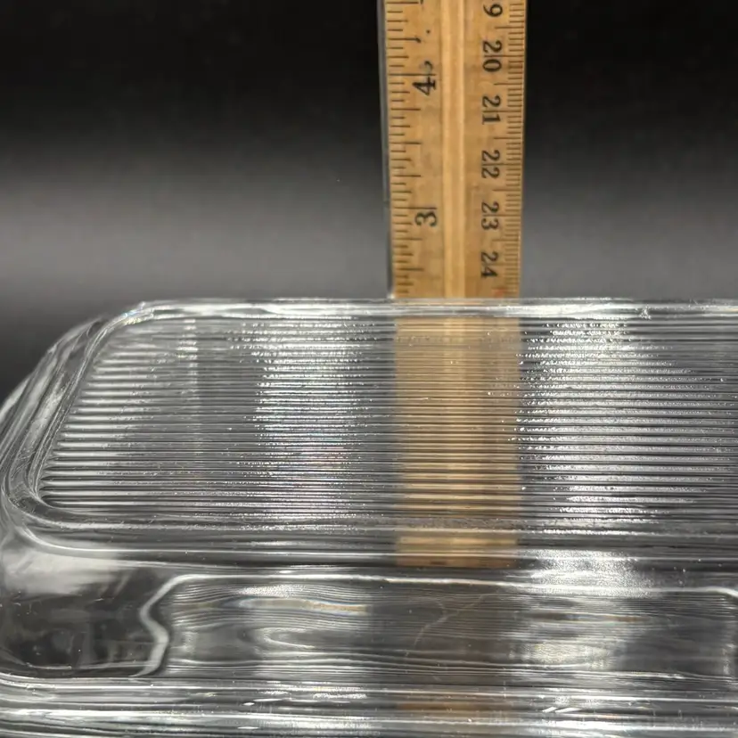 Please see photos. No chips or cracks. Seems to be a flaw on lid that was made during manufacturing process. 6.5” x 4” x 3.5”