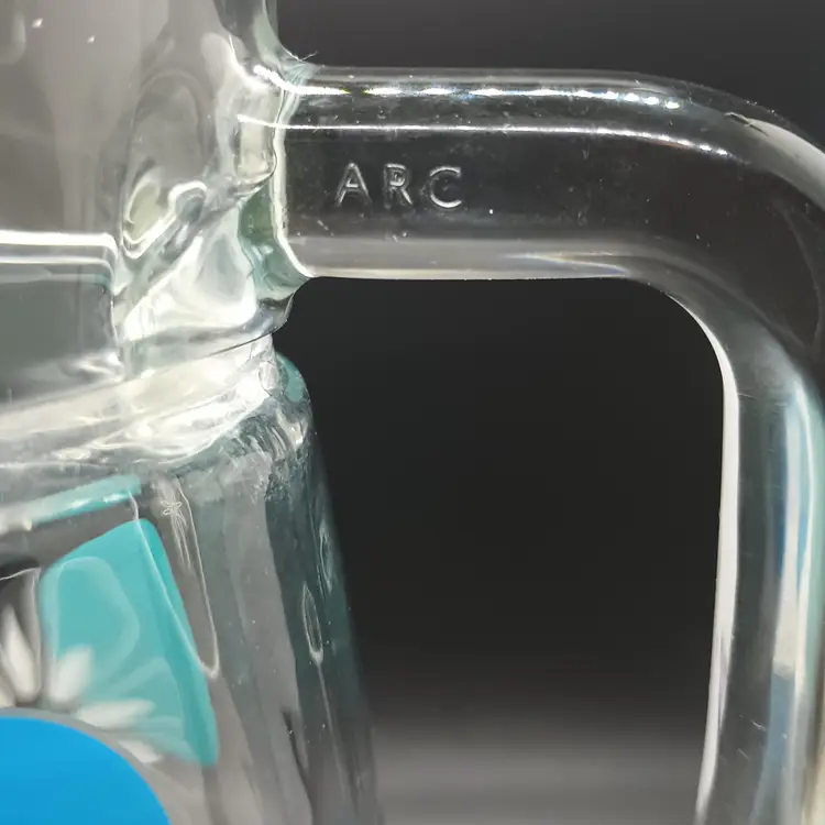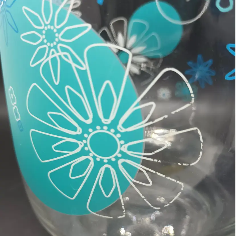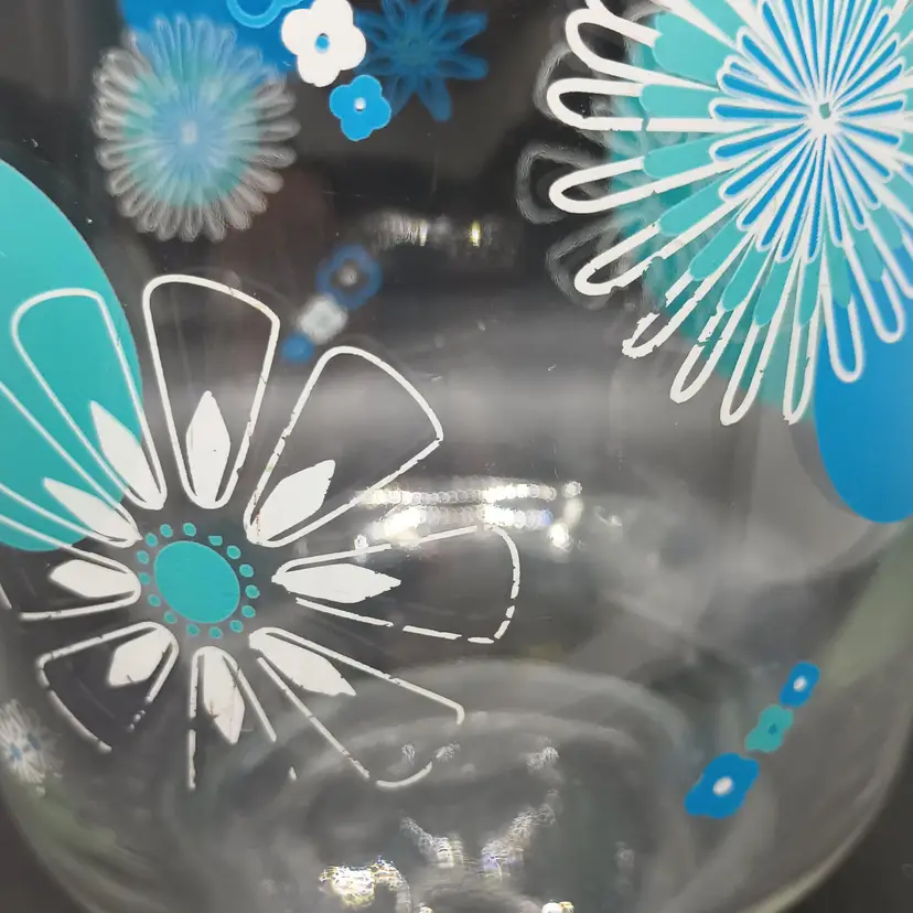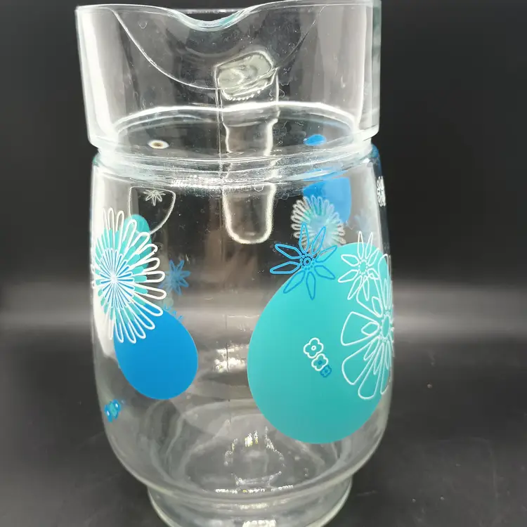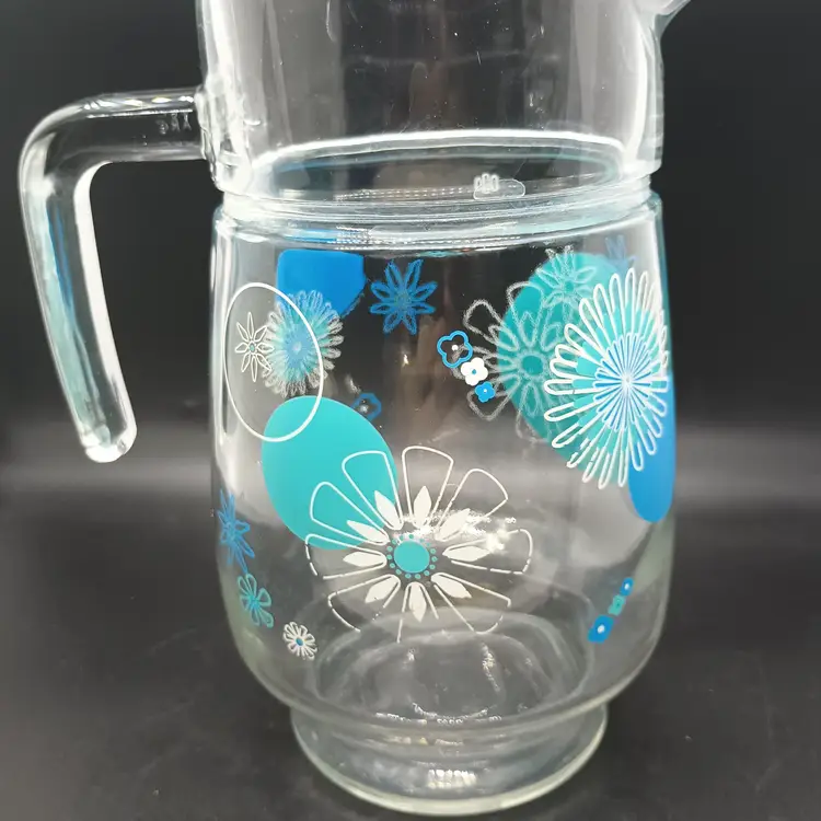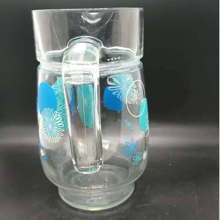 NOTE: there is wear to some of the white of flowers, so please review the photos. There is no other damage. It is marked ARC on the handle. Measures 8 in tall, top diameter 4 in, spout to handle 6 1/2 in.