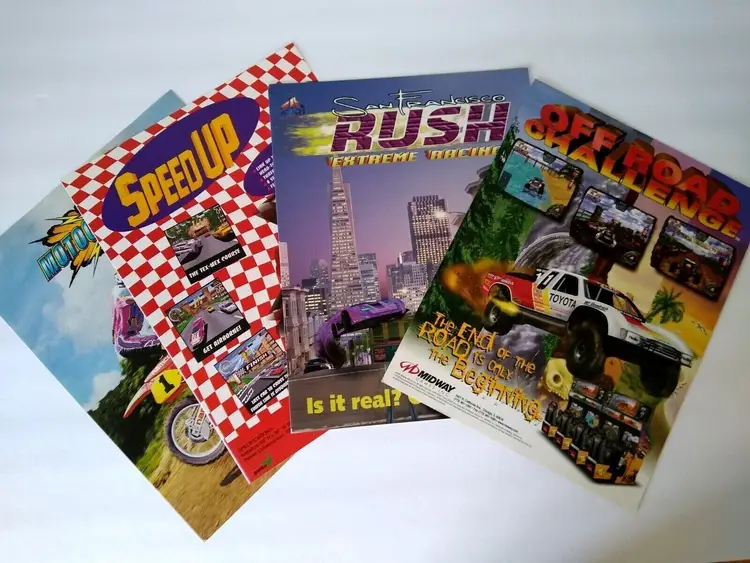 Arcade Game Flyers Race Cars Cycles Trucks Off Road Challenge Speed Up Motocross