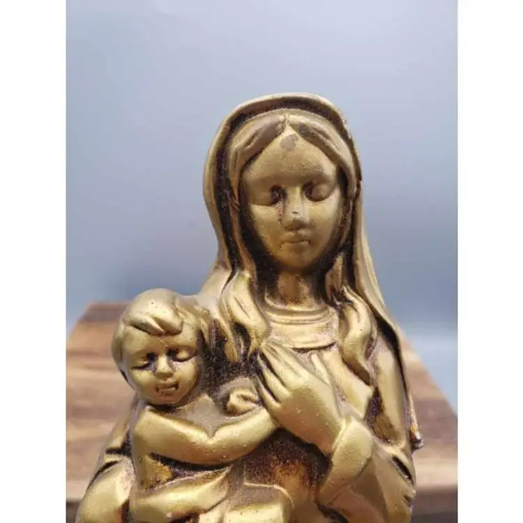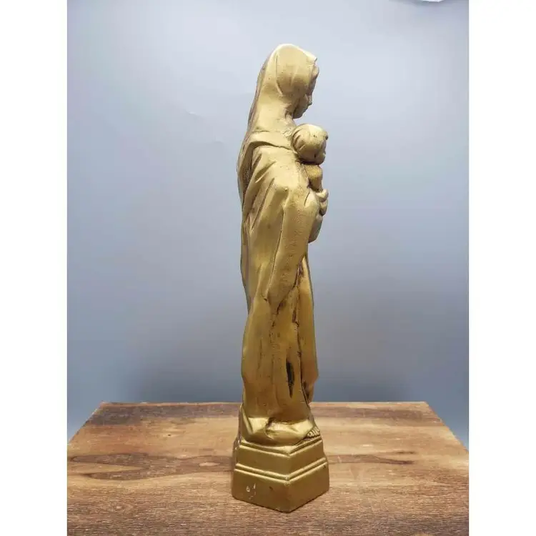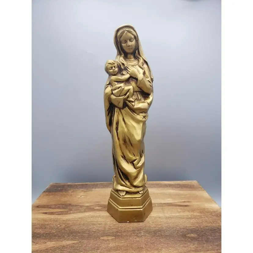 Vintage Ardco Paper Mache Mary and baby Jesus statue/figurine. It measures approx. 11” high. It does have a couple of small dings/gold paint missing (see pics). The original sticker is attached and reads: Ardco Fine Quality Dallas, Made in Japan.