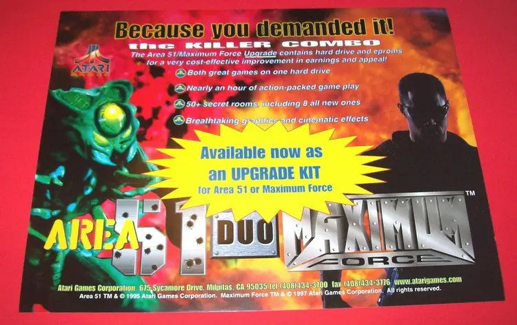 Arcade: Flyer Modified Item: No Country/Region of Manufacture: United States Original/Reproduction: Original Year: 1995 Game Title: Area 51 / Maximum Force Brand: Atari