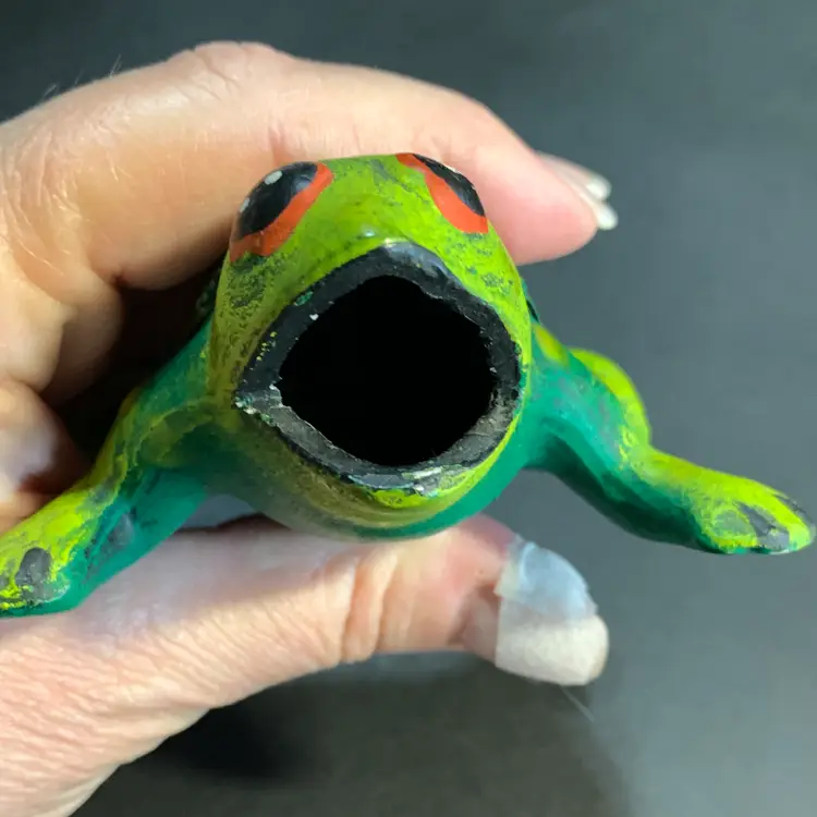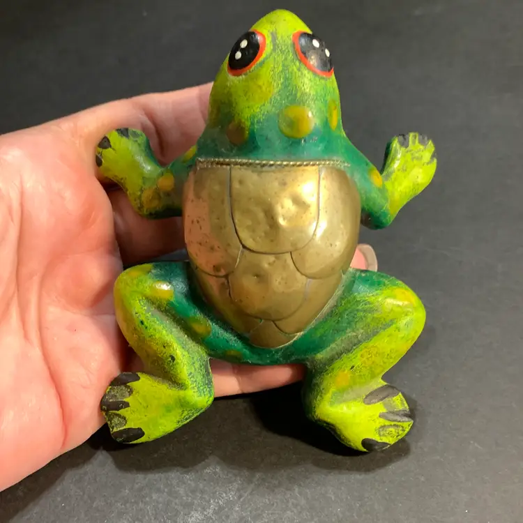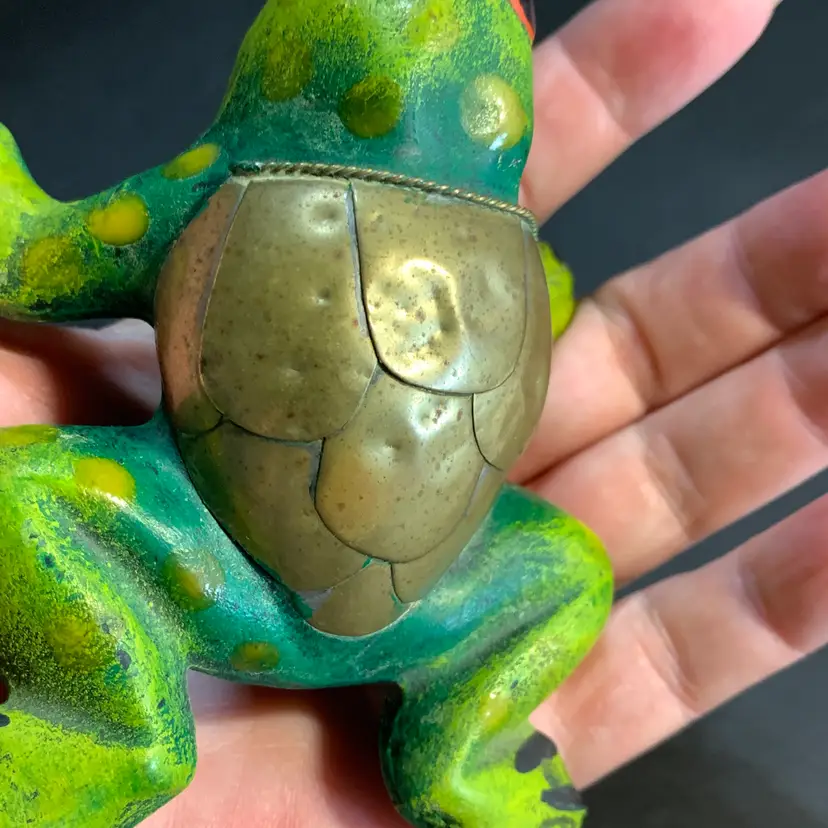 This is in great condition. A few tiny paint chips but no chips to the ceramic or cracks. Measures 4 inches across, 3 3/4 inches wide and 1 3/4 inches tall. Weighs 3 ounces. If the actual postage ends up being less than what you paid, you will be refunded for anything over one dollar.