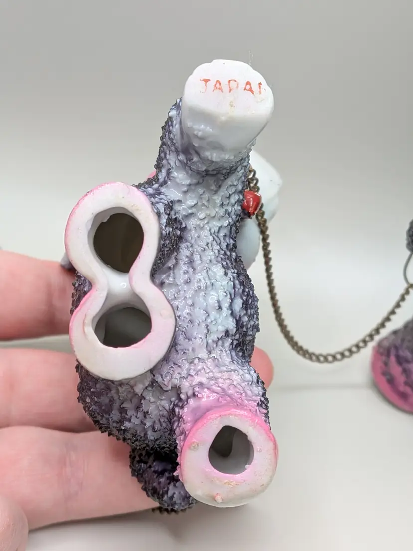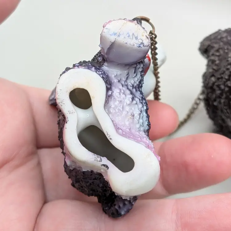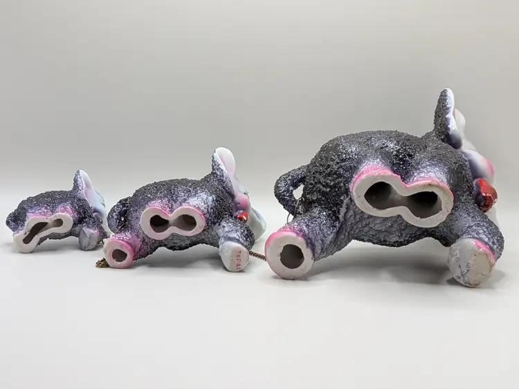 You will receive the momma, a medium baby, and a small baby, all as photographed. Please note that the smallest one has a small call-out on the loop part where the chain connects (photographed). These appear to be in otherwise wonderful, used, vintage, well kept condition, and show very minimal (if any) paint loss or damage to the "sugar" part.