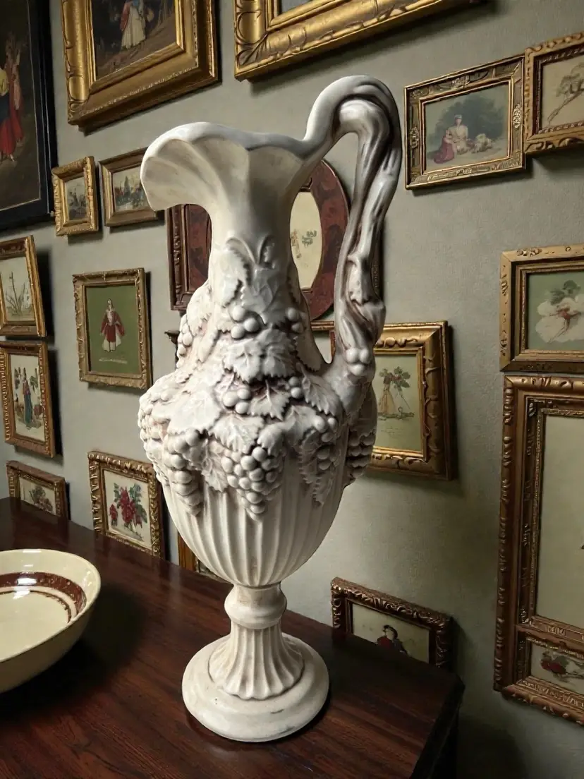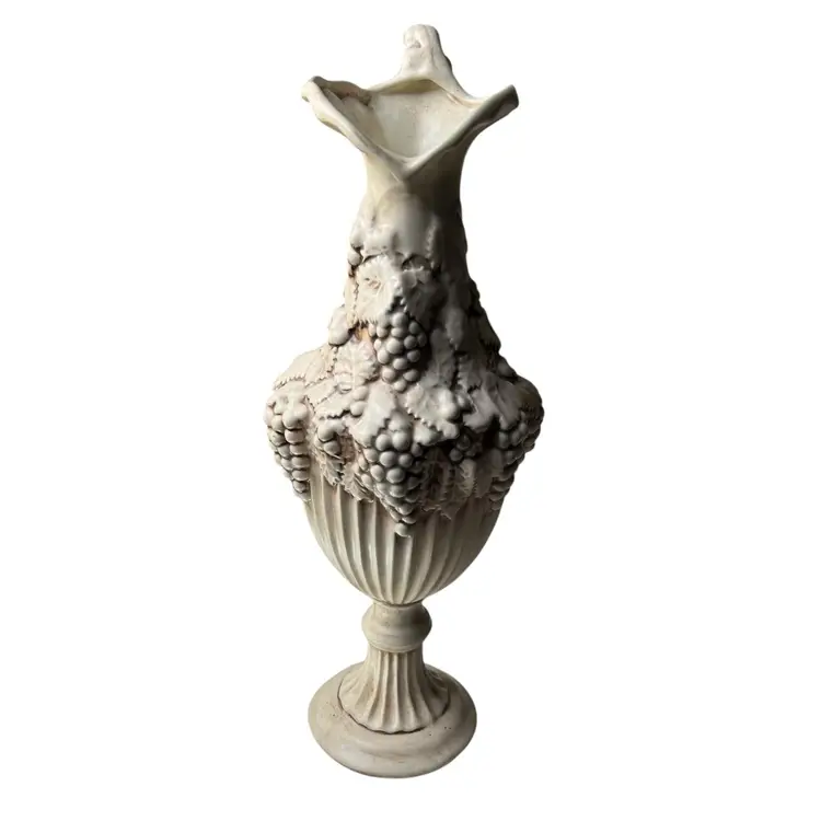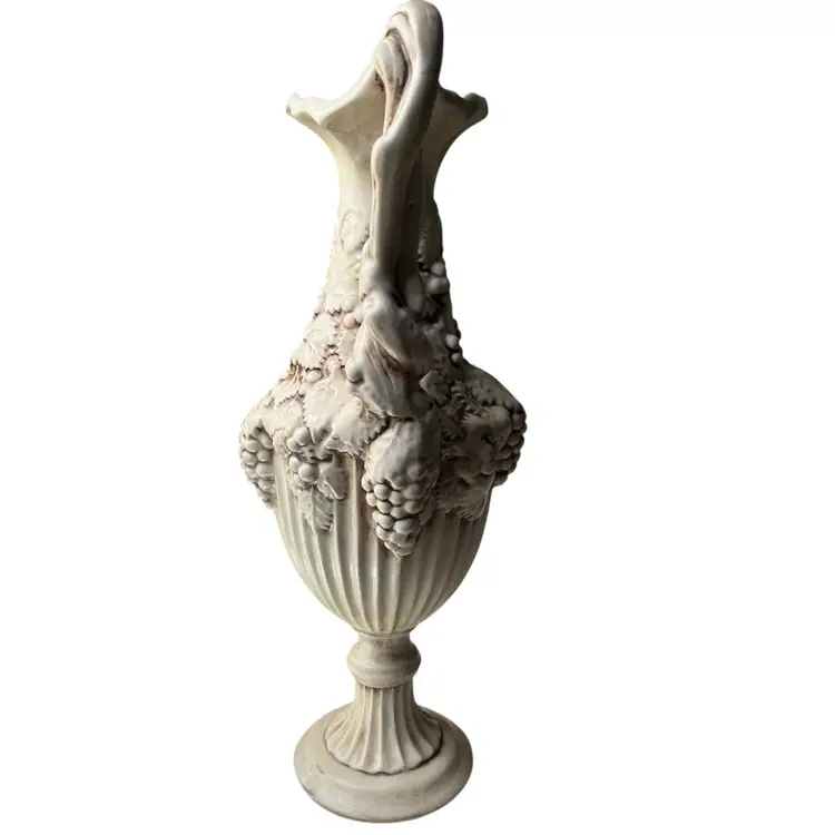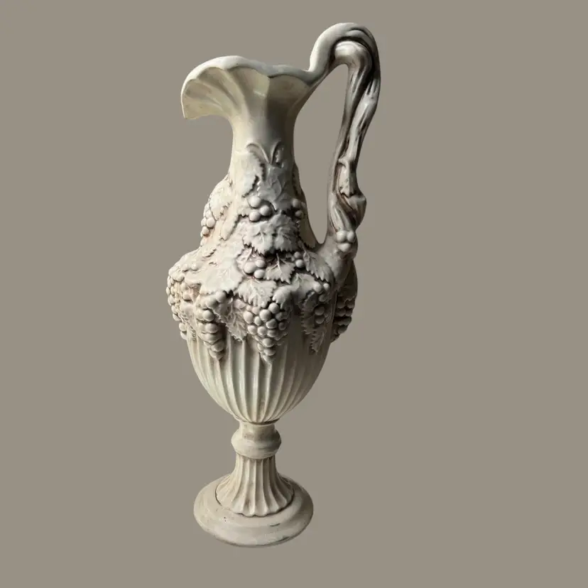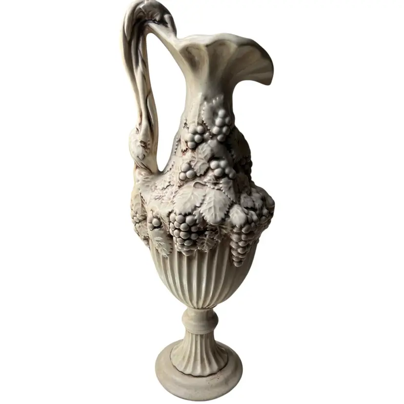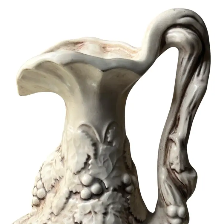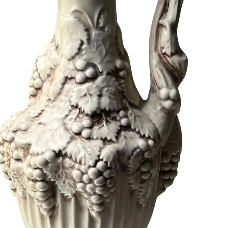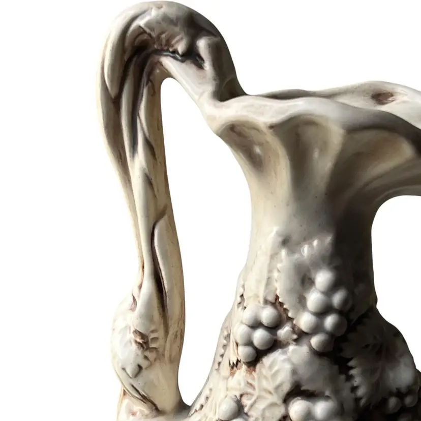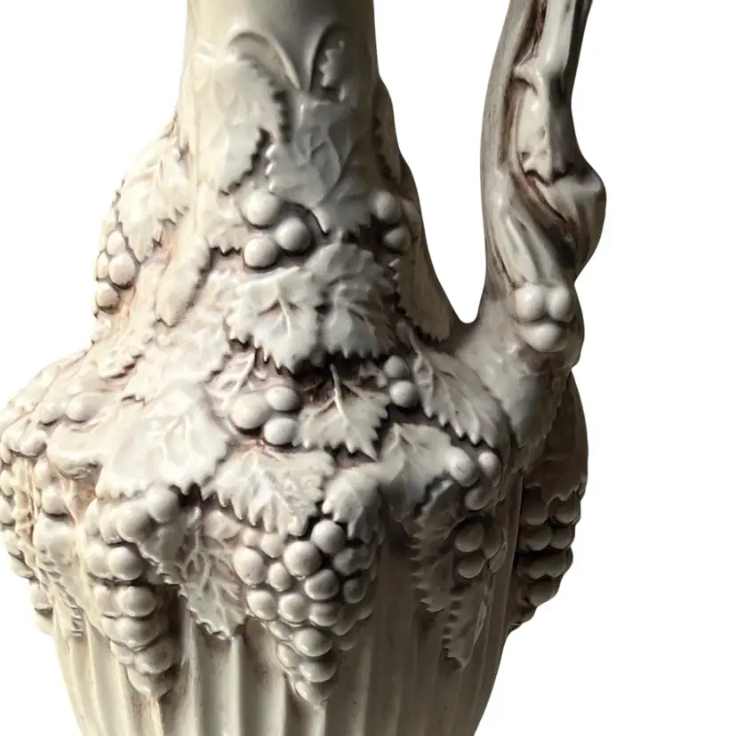 007 Arnell Pottery Ewer antique white grapes vines 1960s marked MD 14" x 5.5"