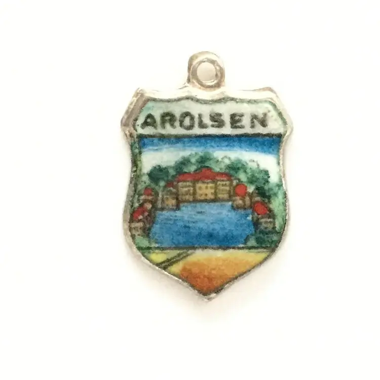 Arolsen - Germany - Vintage Enamel Souvenir Travel Shield Bracelet Charm - 800 Silver