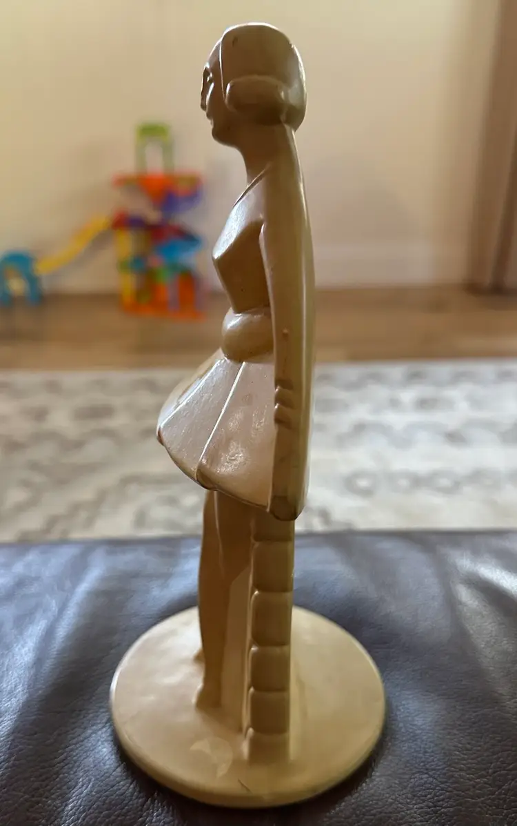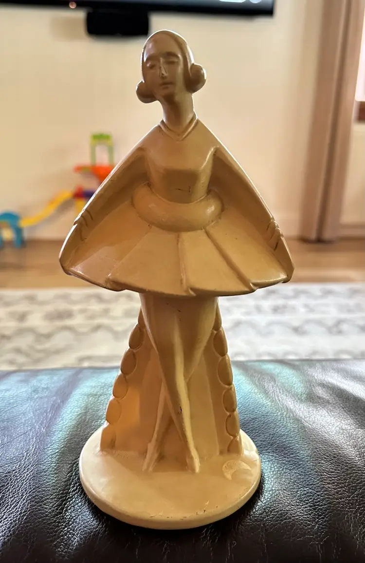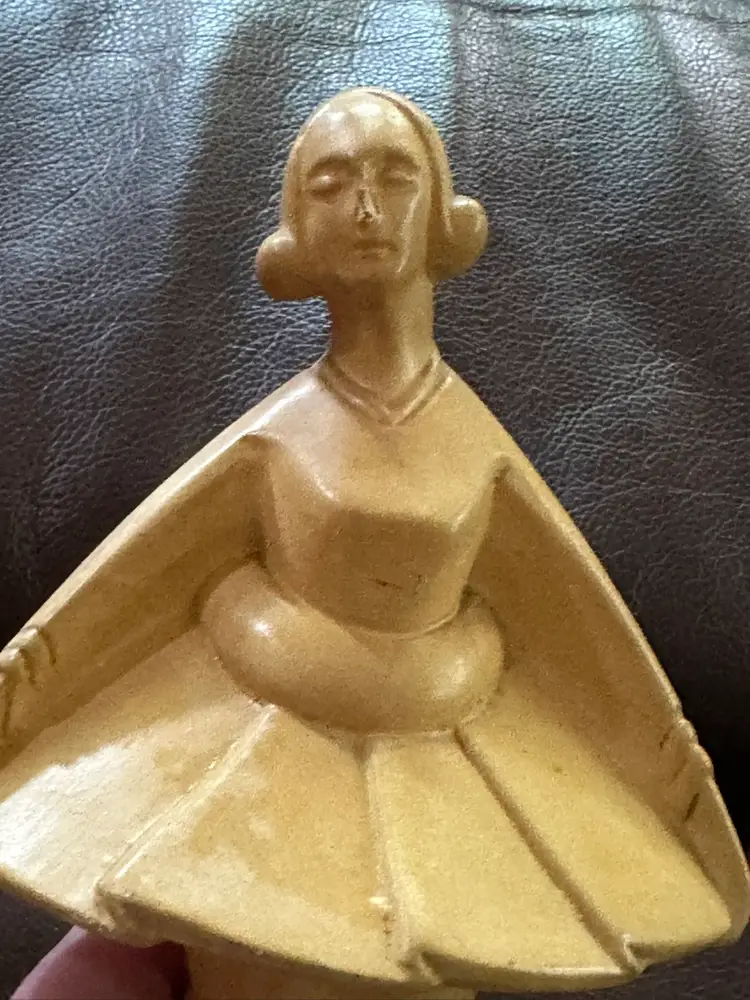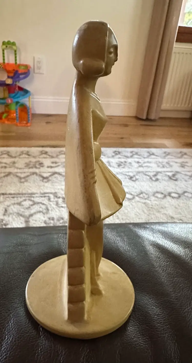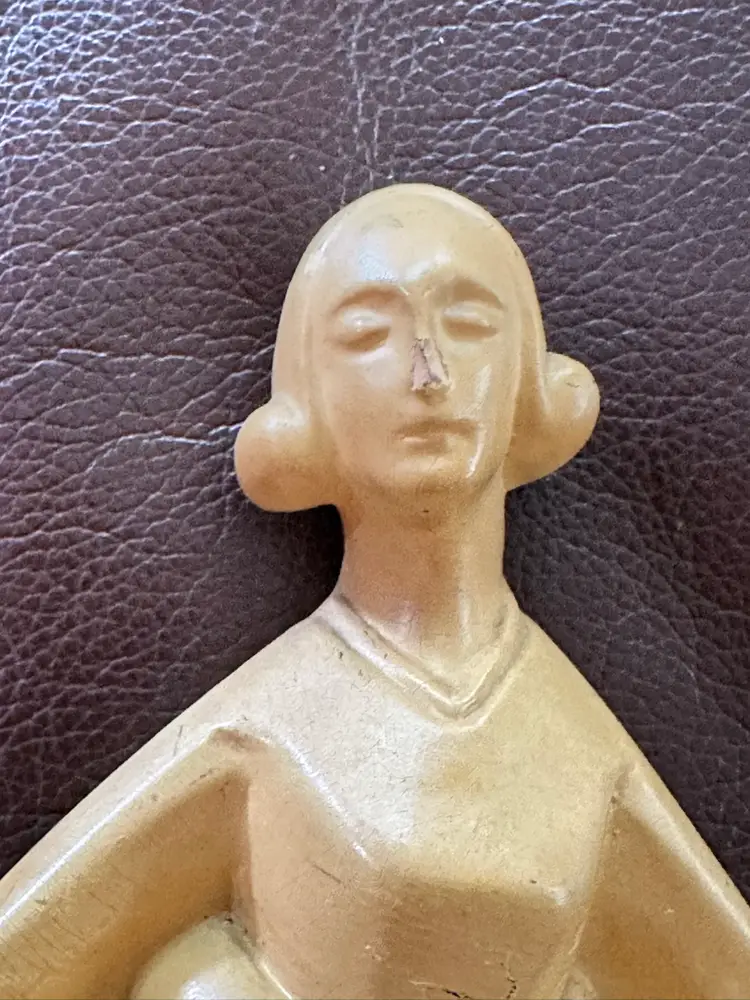 Great deco figurine of lady c.1930-40. She is ceramic. She measures 8.5” x 4.5”. She is marked Made in Holland. Slight chip on her nose.