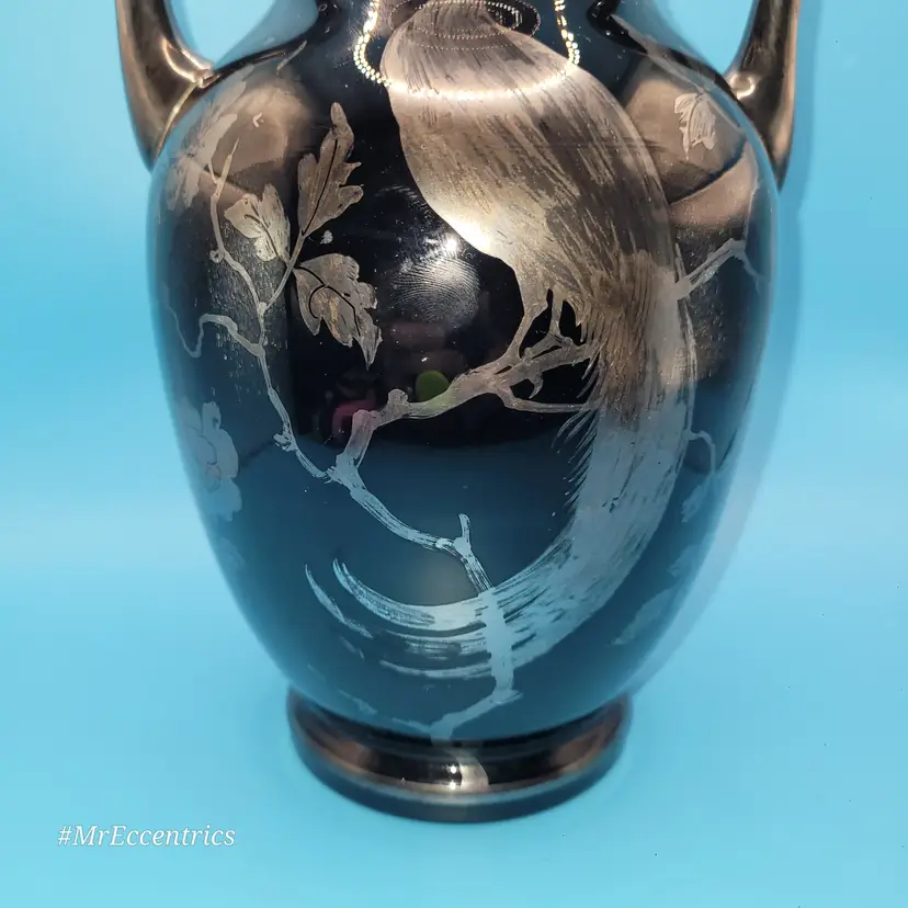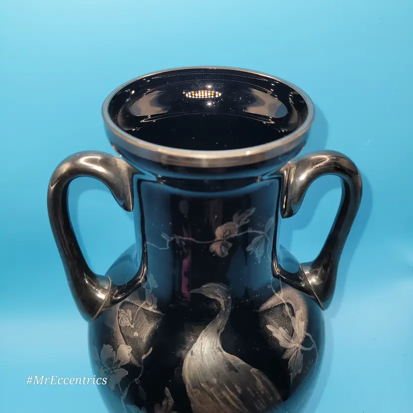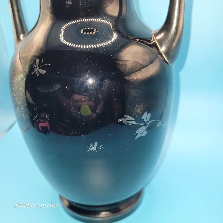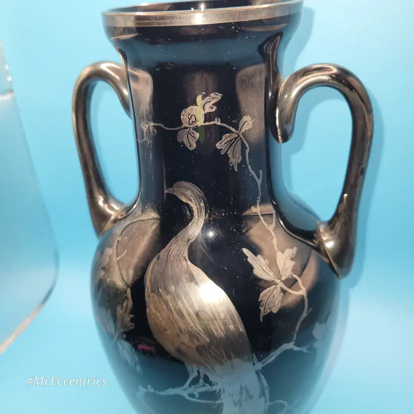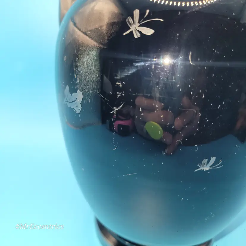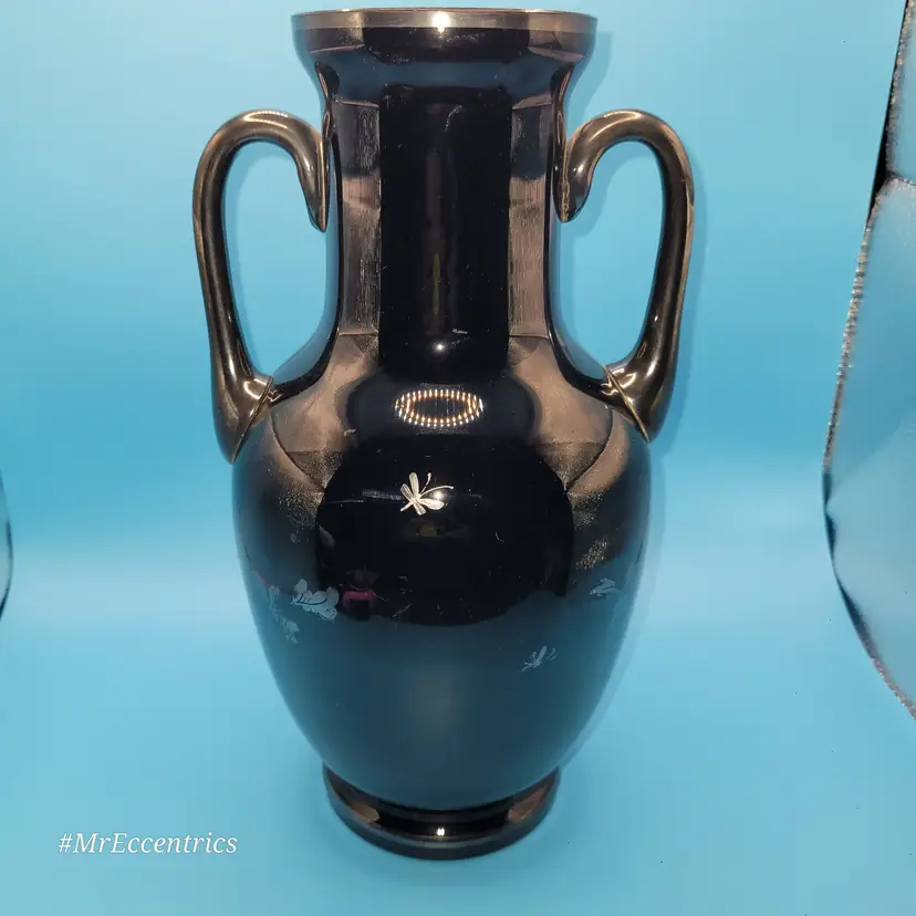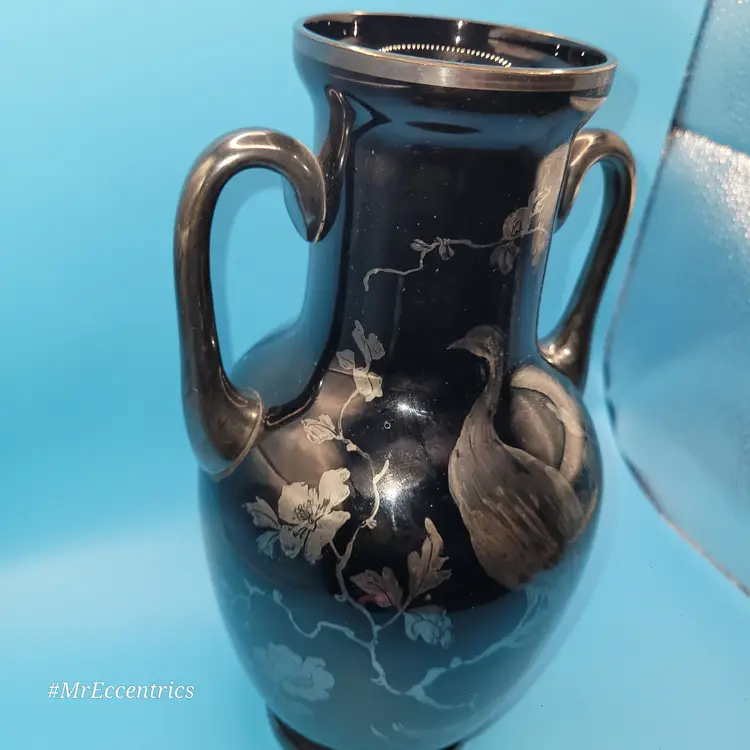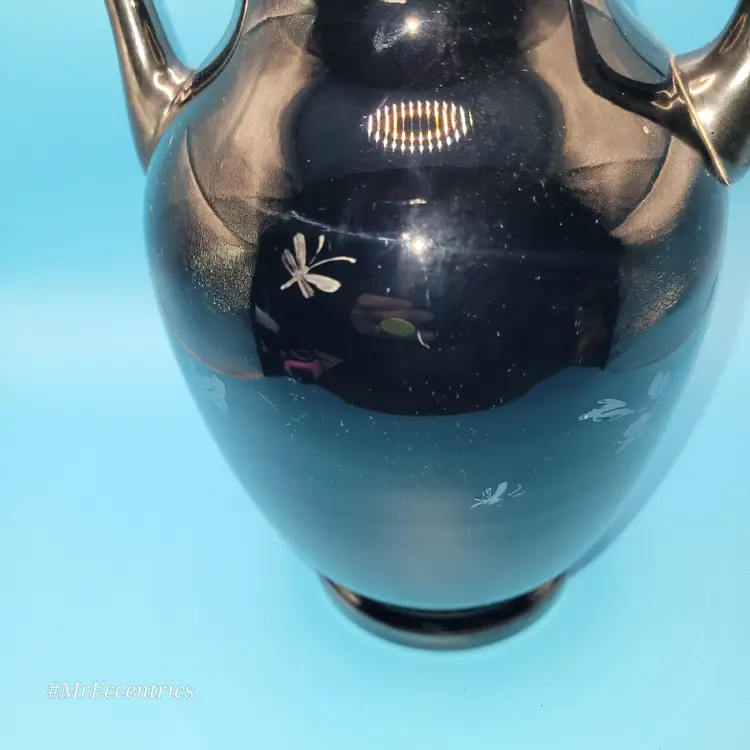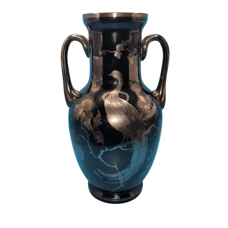 Beautiful vase. 10" tall. Some wear to decoration. Some scratches on glass.