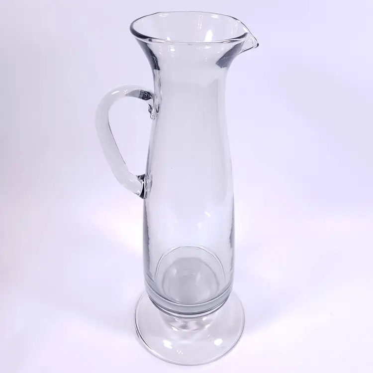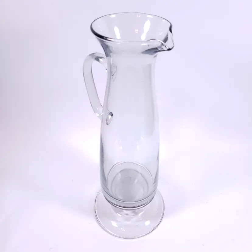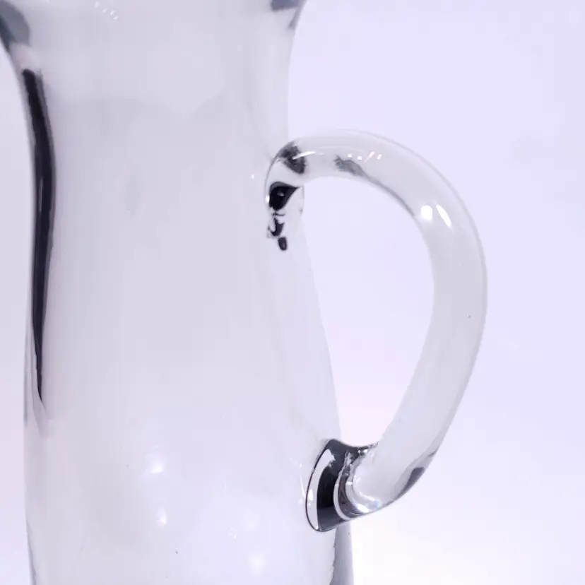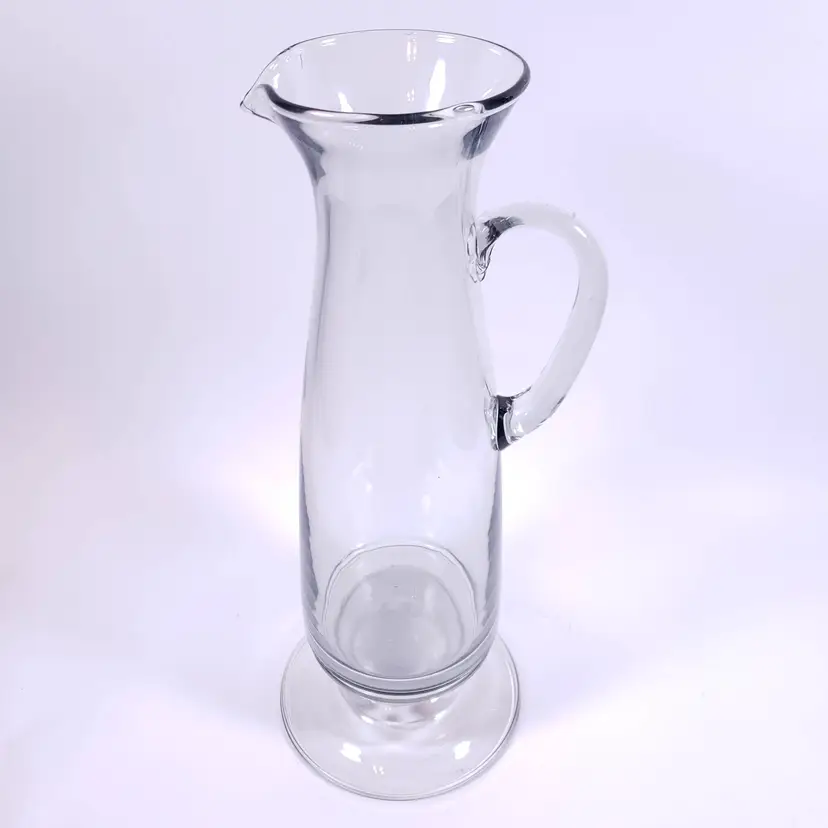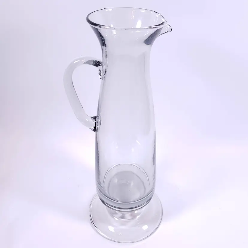 Art Deco Elegant Hand Blown Clear Glass Applied Handle Footed Carafe Jug PITCHER