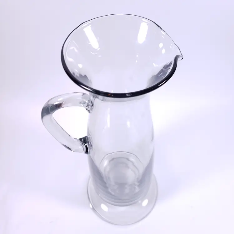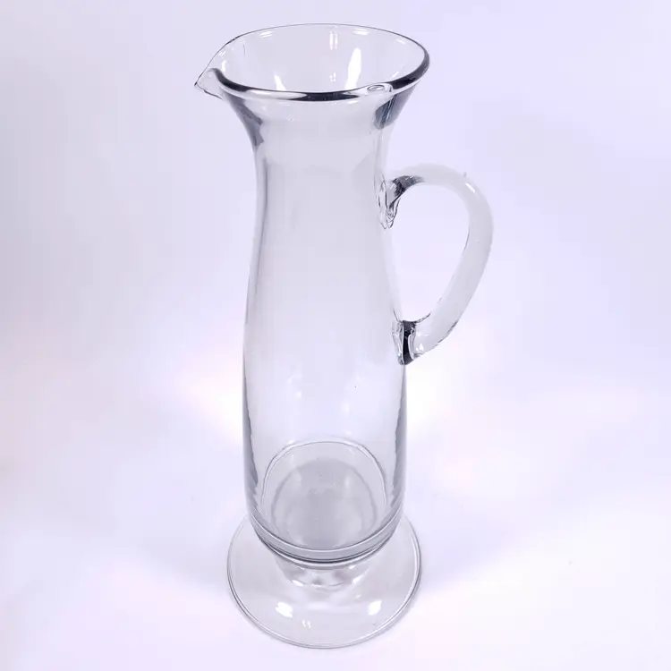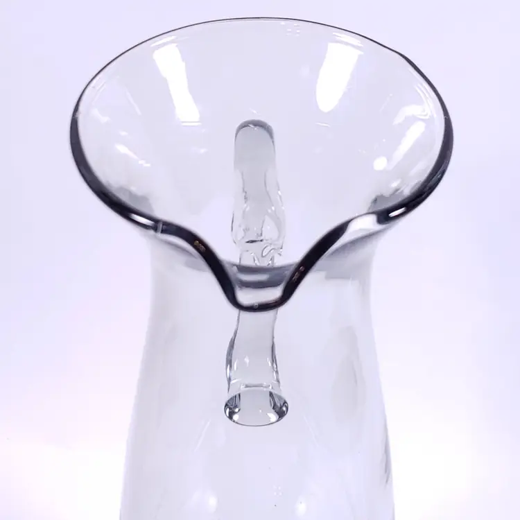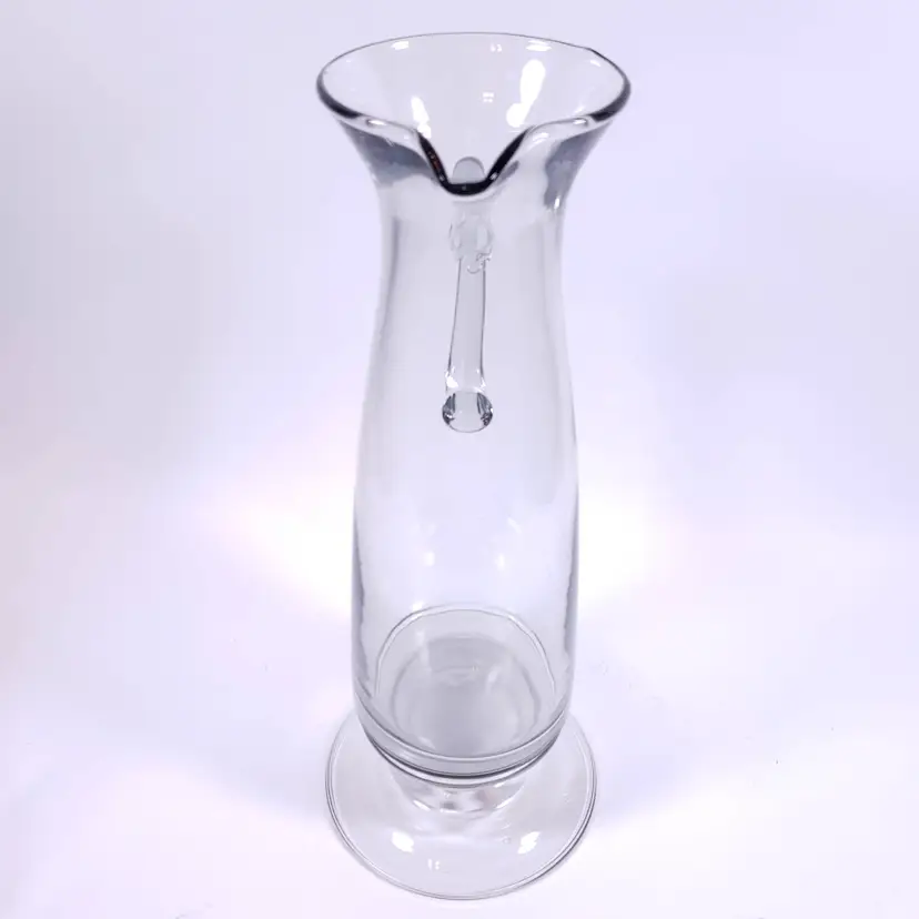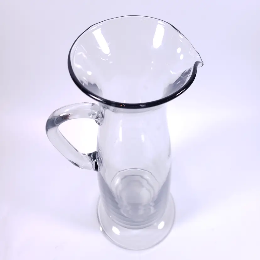 Art Deco Elegant Hand Blown Clear Glass Applied Handle Footed Carafe Jug PITCHER