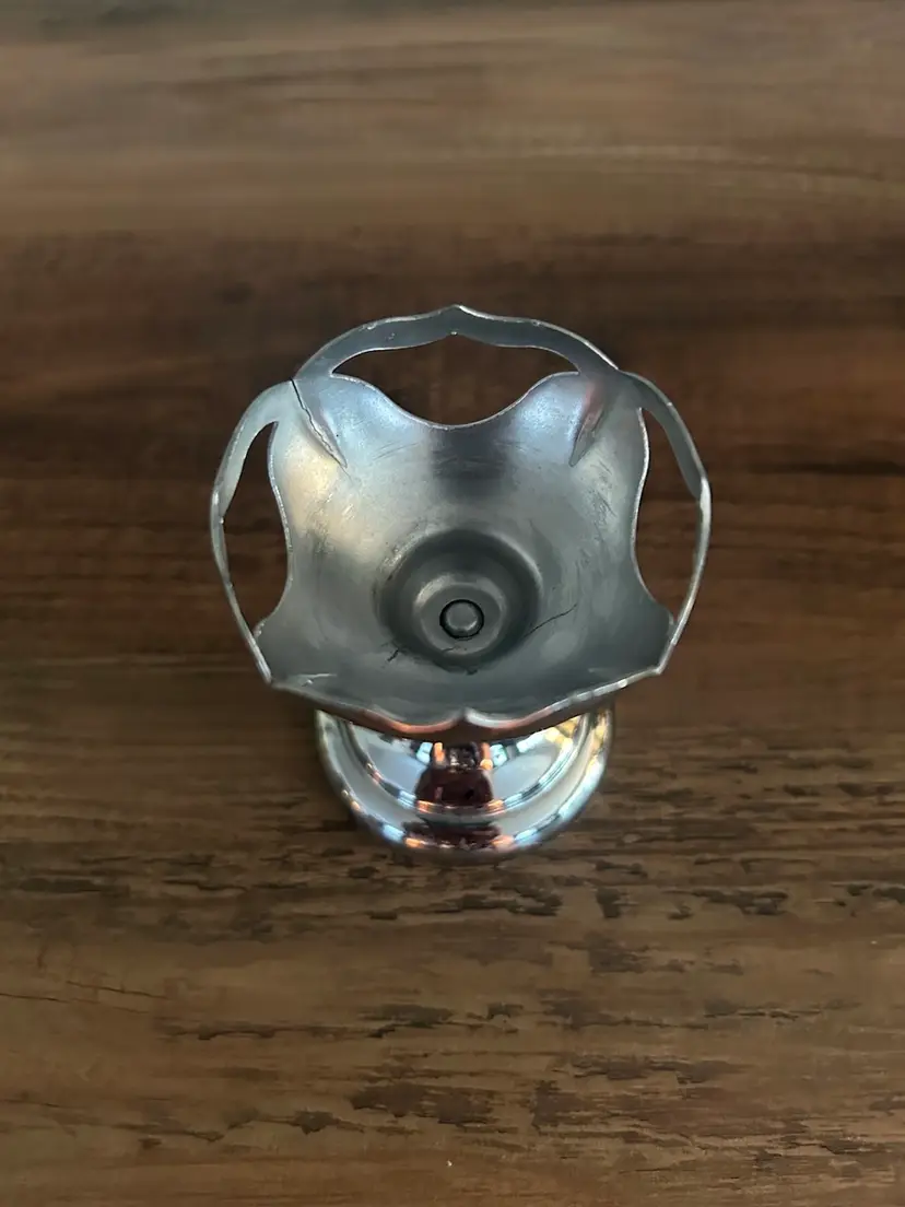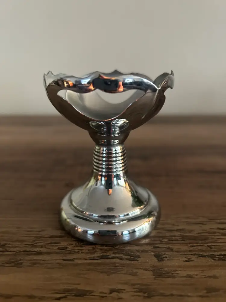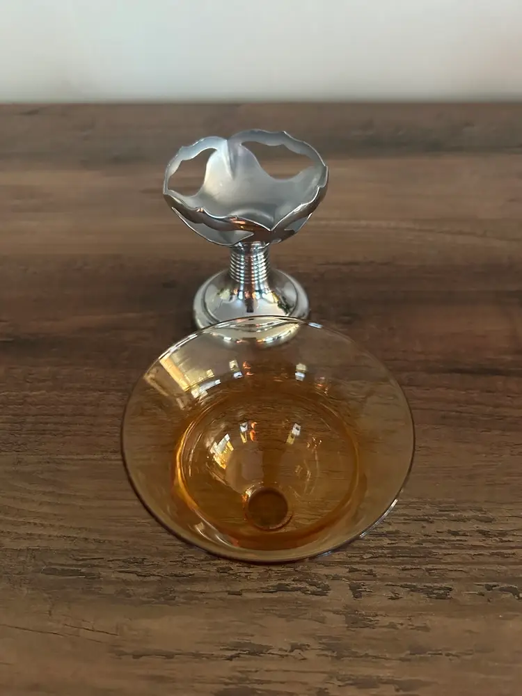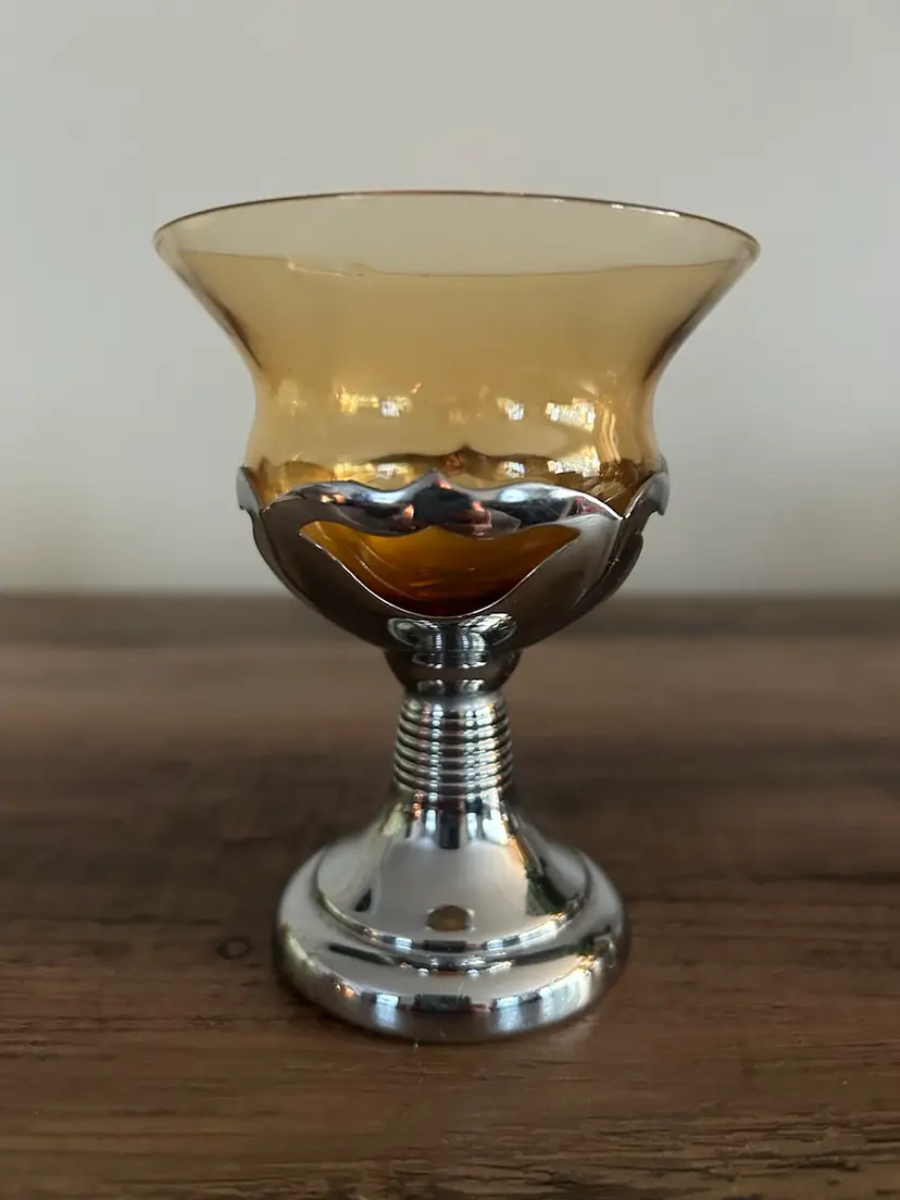 Amber cordials set in chrome pedestal cups with distinctive art deco look by Krome Kraft.
