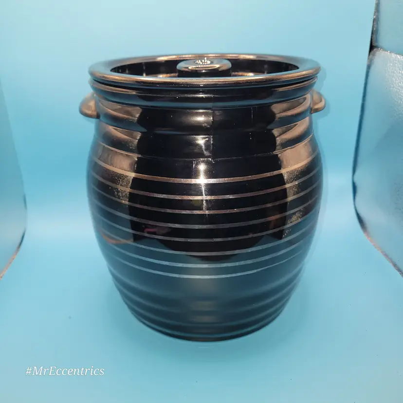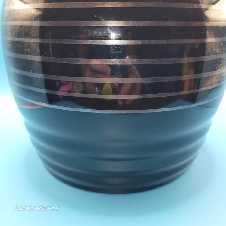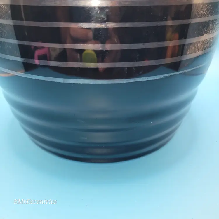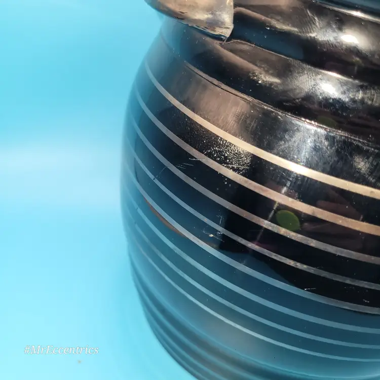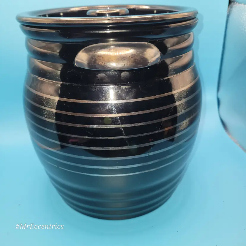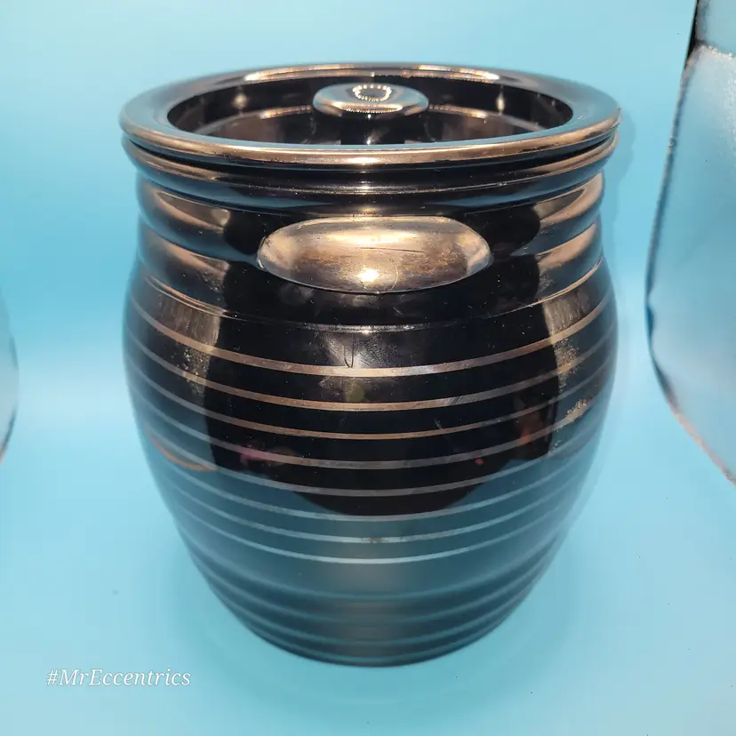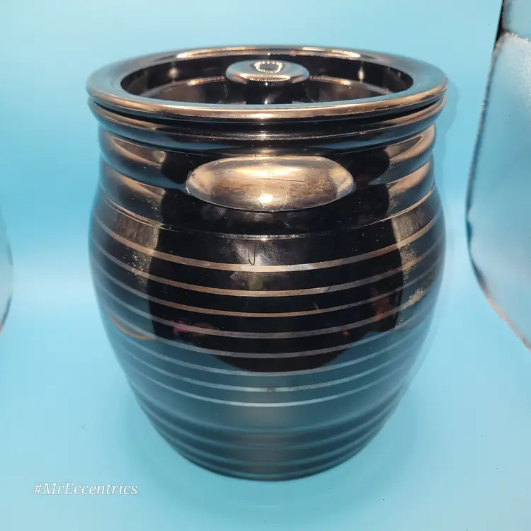 Beautiful jar. Some wear to silver bands. Some scratches to glass. No cracks or chips.