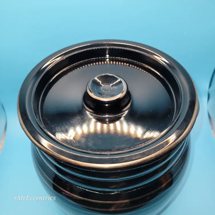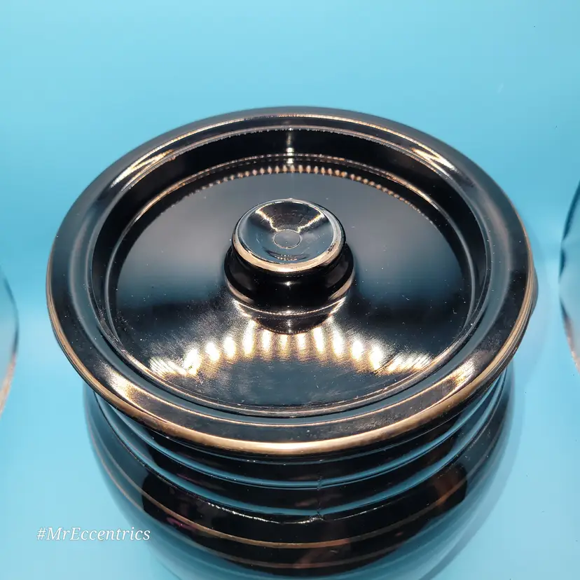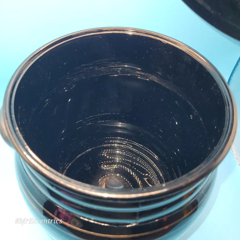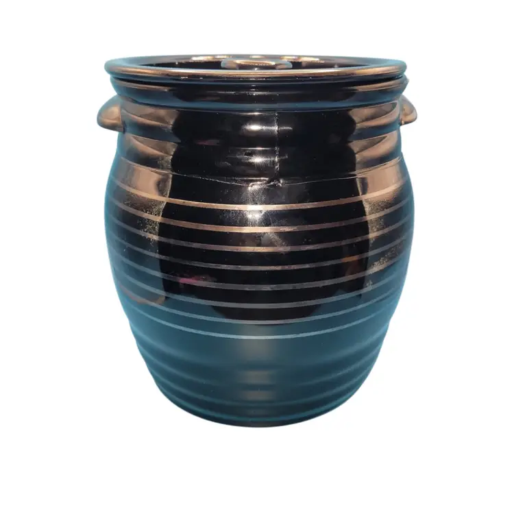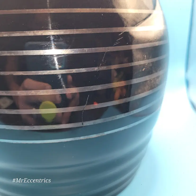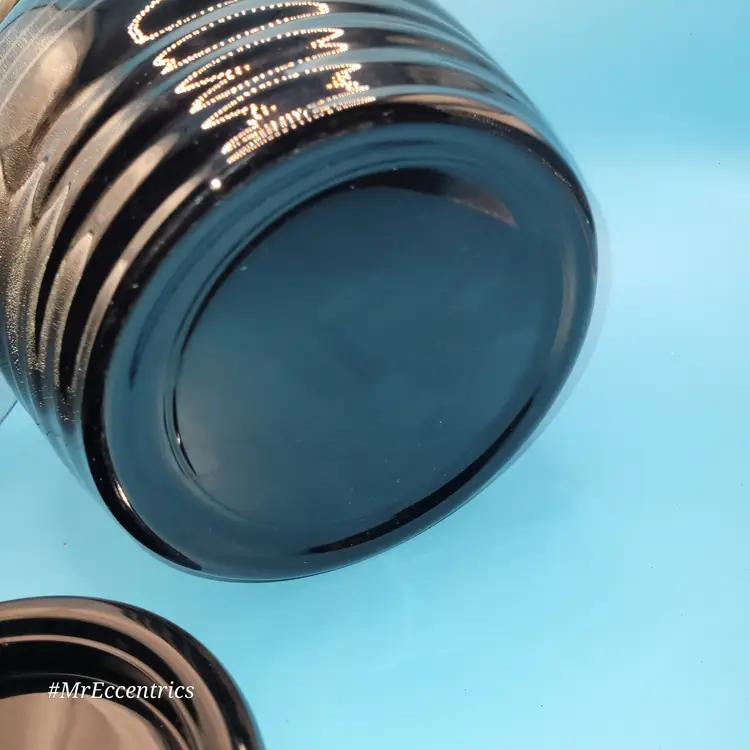 Beautiful jar. Some wear to silver bands. Some scratches to glass. No cracks or chips.