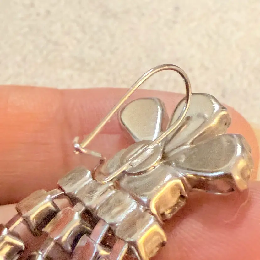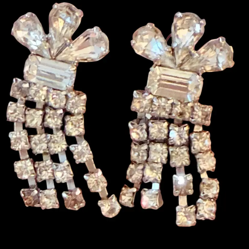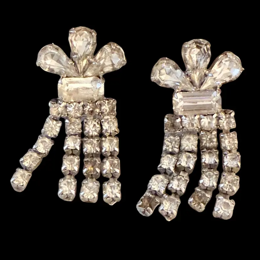 Art Deco Style Rhinestone Dangle French Wire Earrings 1.75”