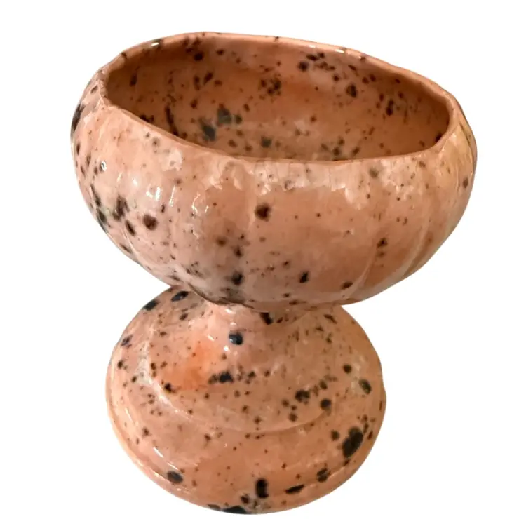 Art Deco Style Small Planter Splatter Glaze, Peach And Brown