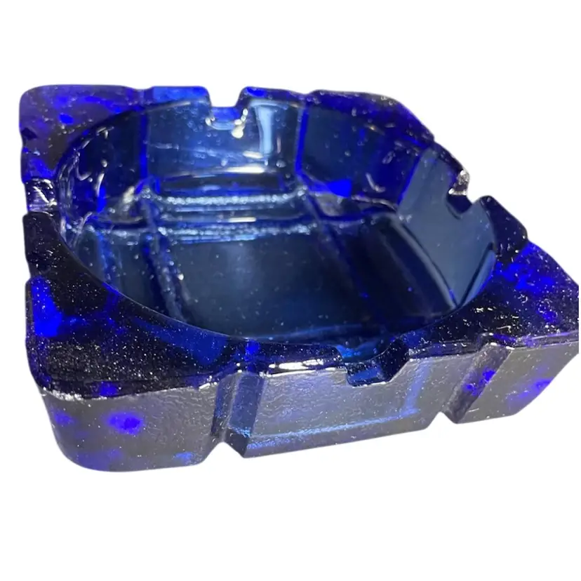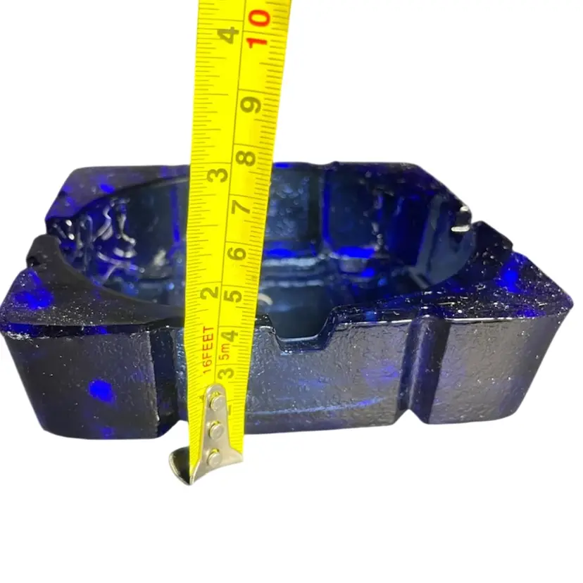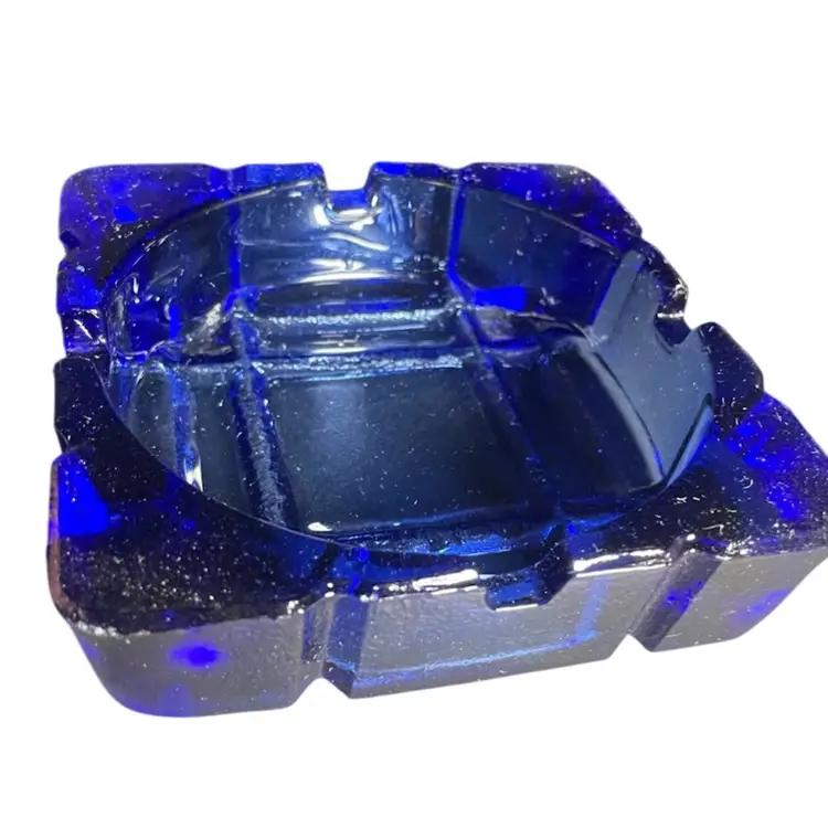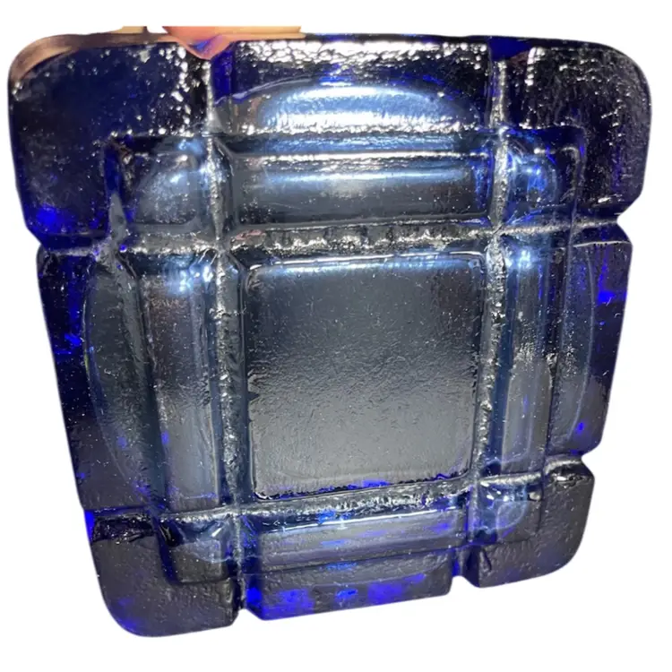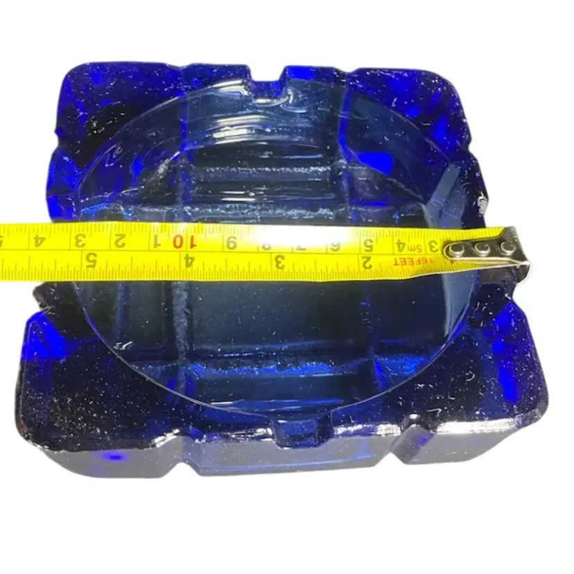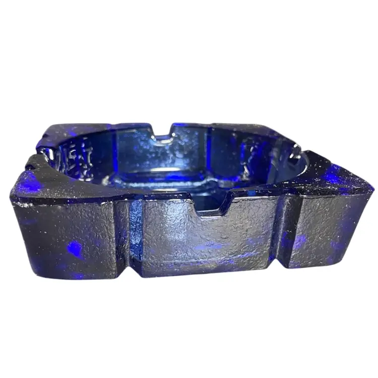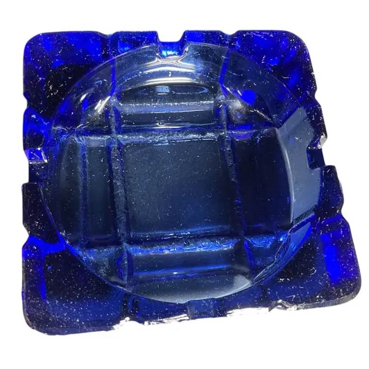 Art Deco Vintage Cobalt Blue Glass Ashtray Square Design Condition is Used. Shipped with USPS Mail