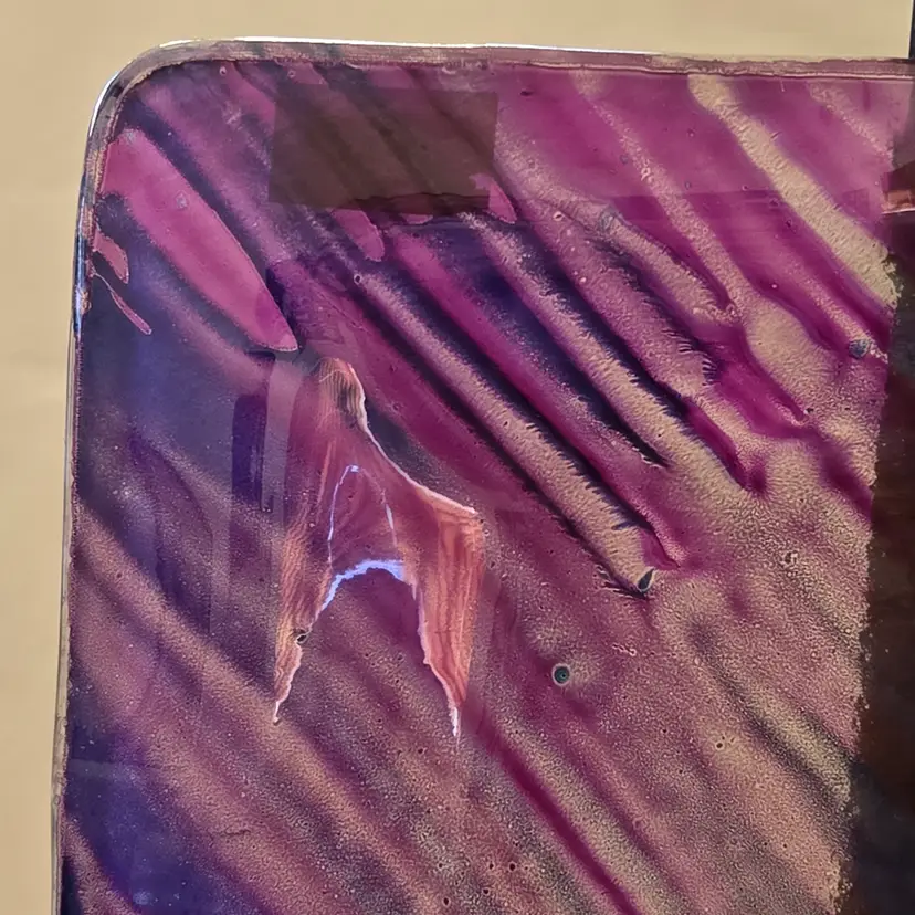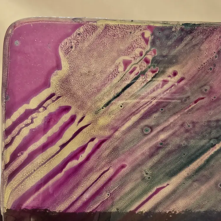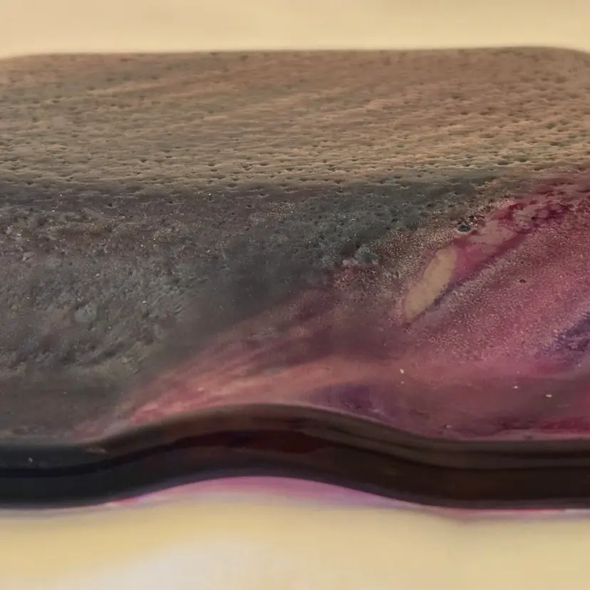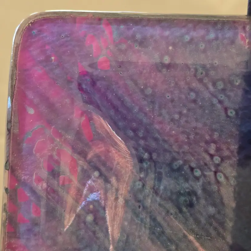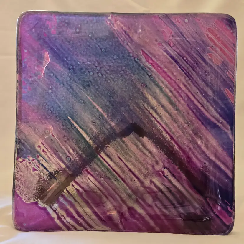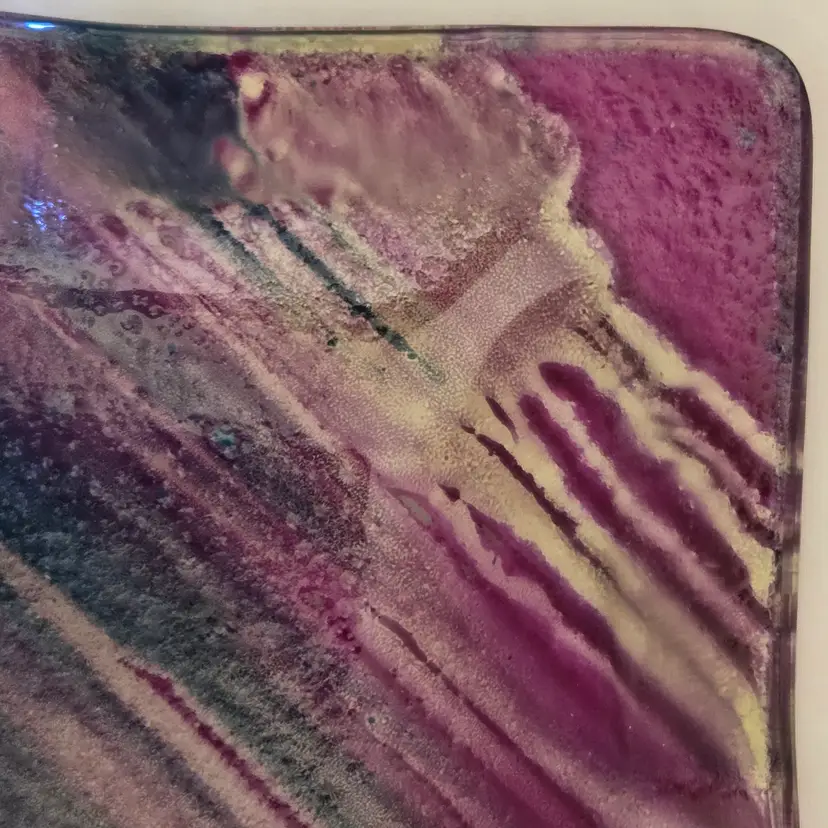 Art Fused Glass Ashtray Decorative Plate Made In Greece Sticker 8½" Square approximately. Used condition with some sticker residue, fingerprints, loose sticker in bottom, manufacturer flaws including dirt, bubbles, stains all within the glass. Please view all the photos and please ask any questions prior to purchase when possible.