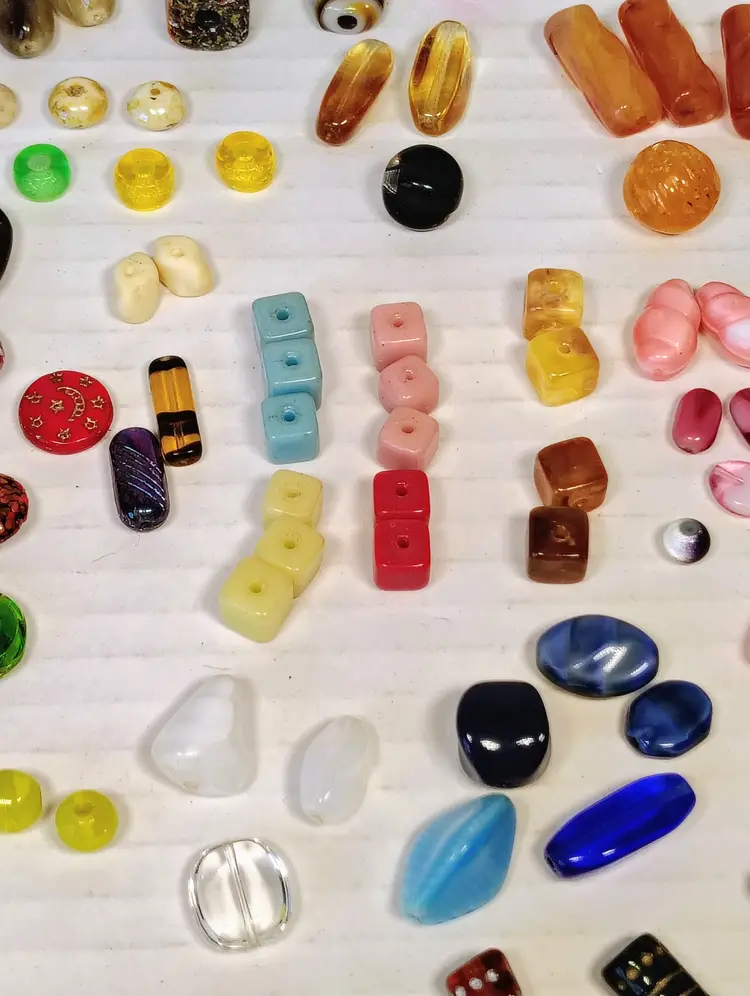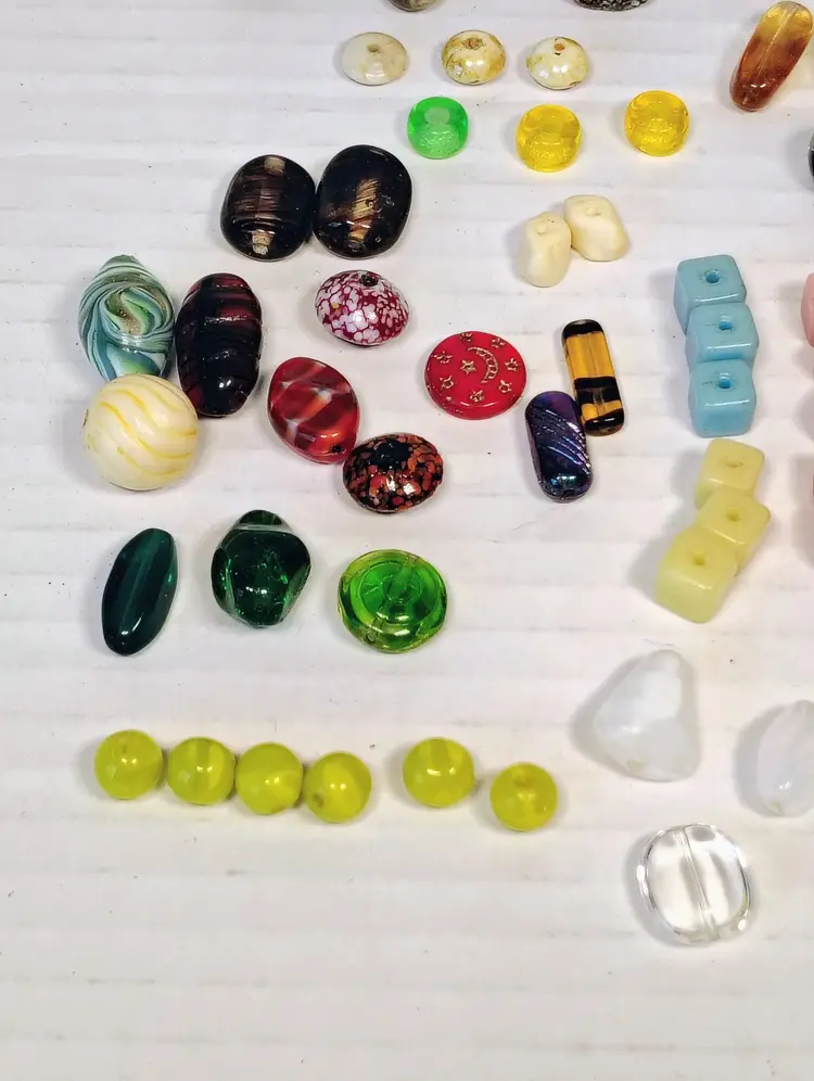 This is a beautiful collection of 86 art glass beads. Most look to be vintage, there is a Venetian possibly Murano trade bead /end of day bead. There's a nice assortment of colors and many of the beads have pairs or multiples. Please see pictures for closer details and size measurements.