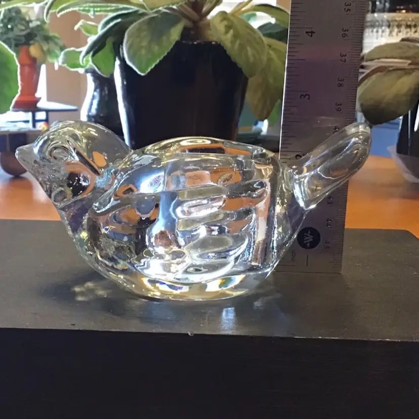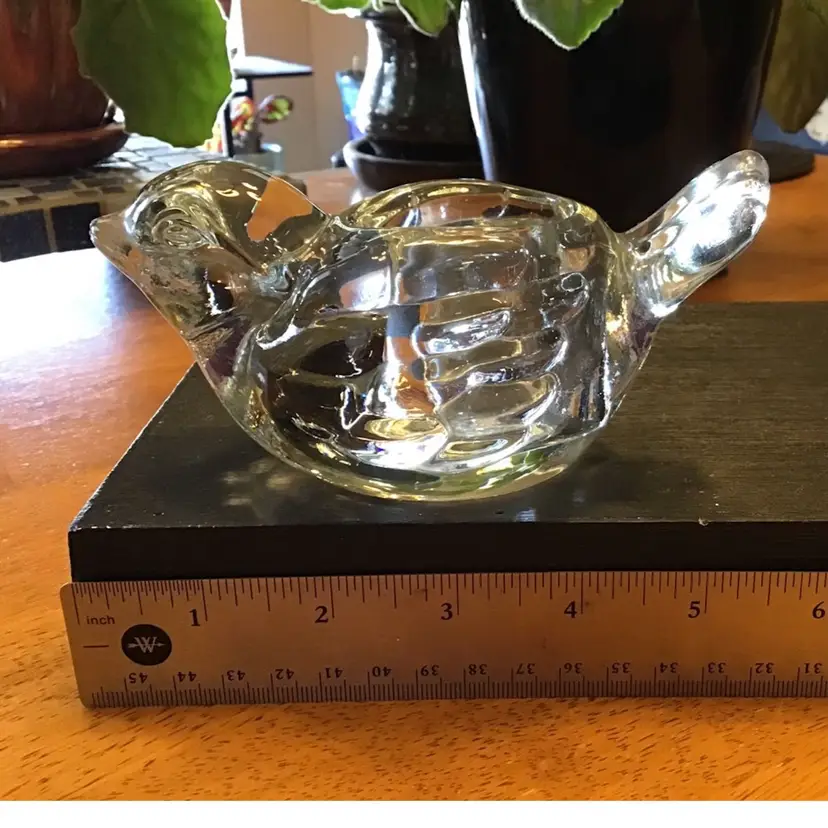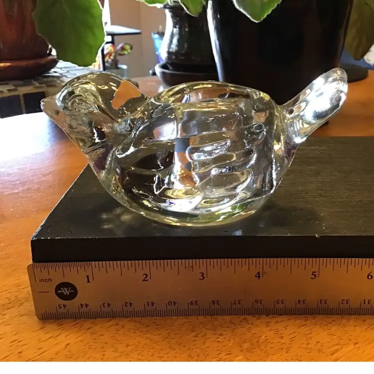 Super cute bird candle holder in in great condition. It does have one tiny bruise on its side but no chips, cracks, or repairs. Not sure the brand name on this. Size is in the pictures. See all pictures as they are an important part of the description.