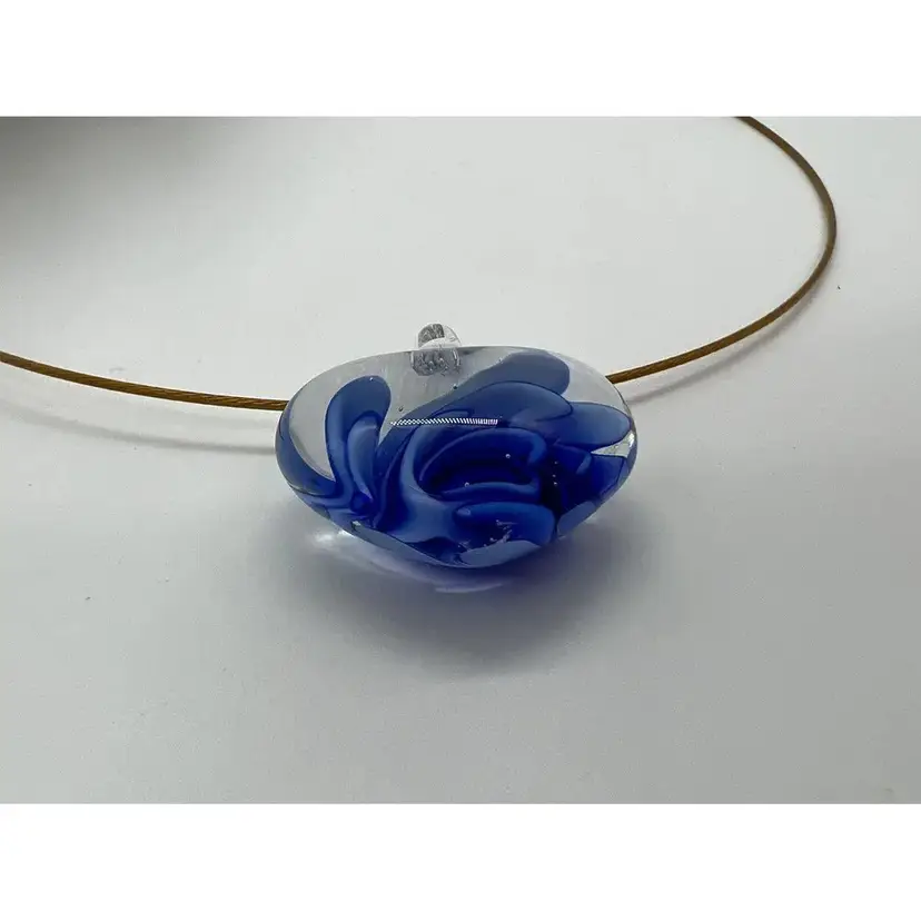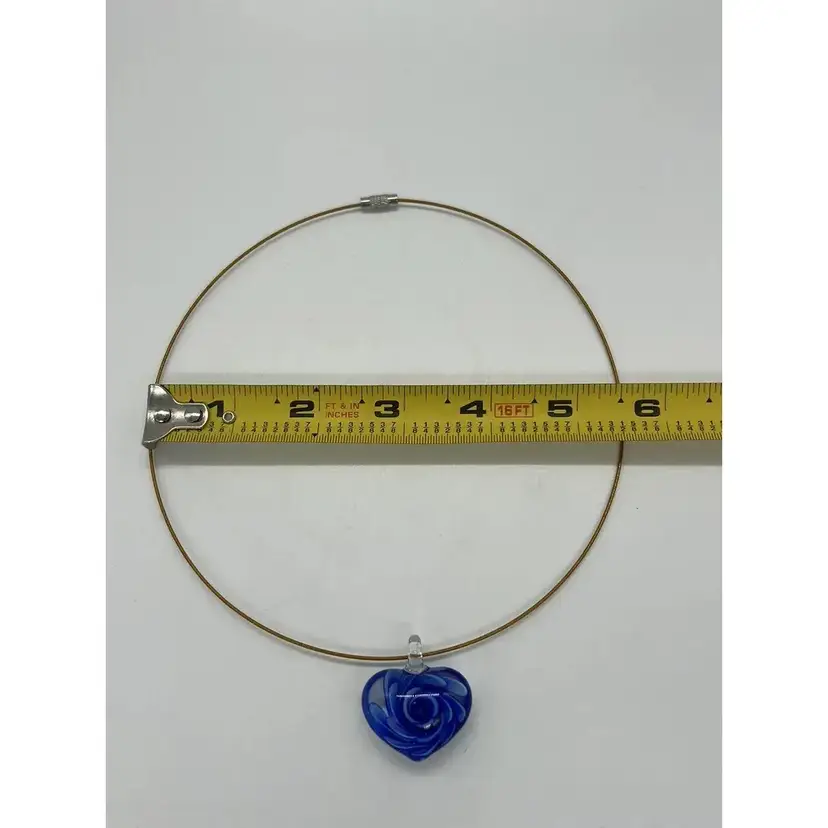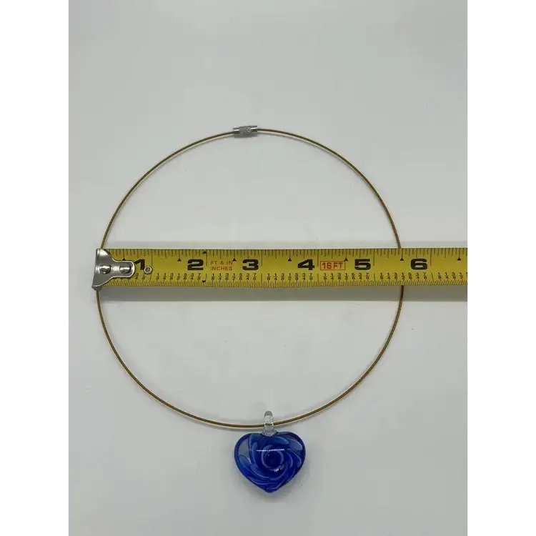 This lovely piece is made with great quality. The choker measures about 5 1/2 inches in diameter and the pendant is a little bigger than an inch wide. Excellent condition. No damage.