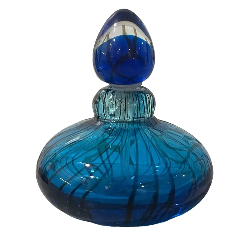 Art Glass Blue Zebra Stripe Glass Perfume Bottle with dauber Offered for sale is a very collectable Murano Blue with black zebra stripes glass perfume bottle with dauber.