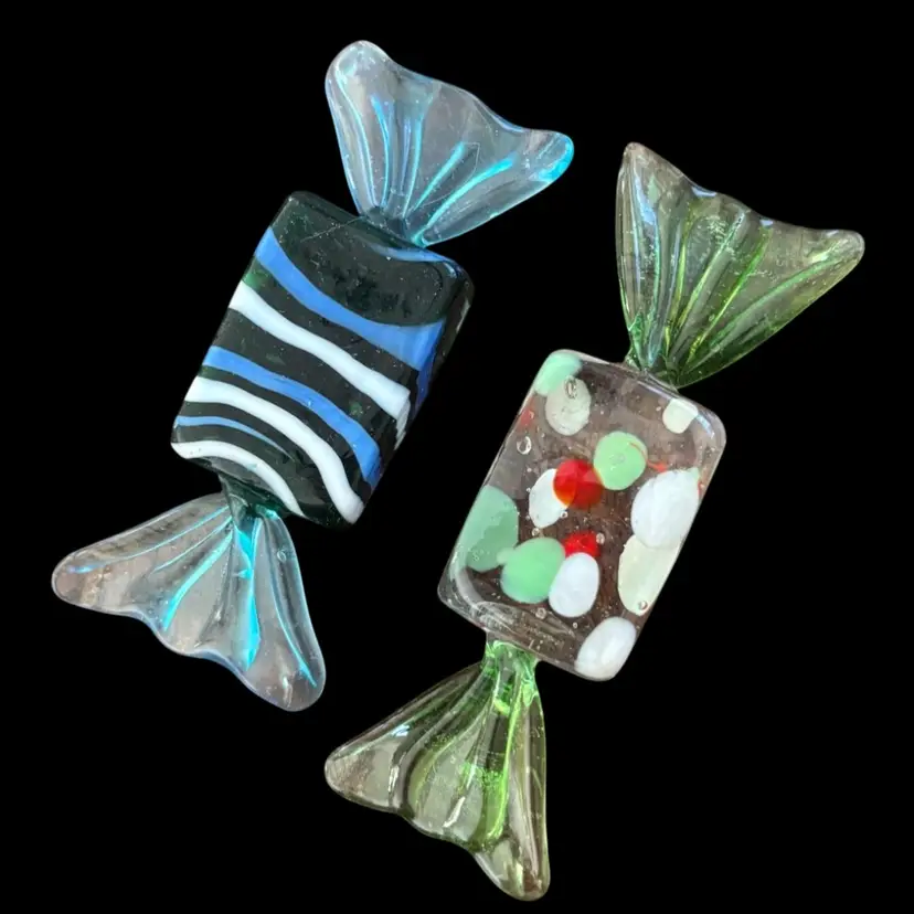 Scrumptious art glass candy duo. No chips or cracks. 2.75β