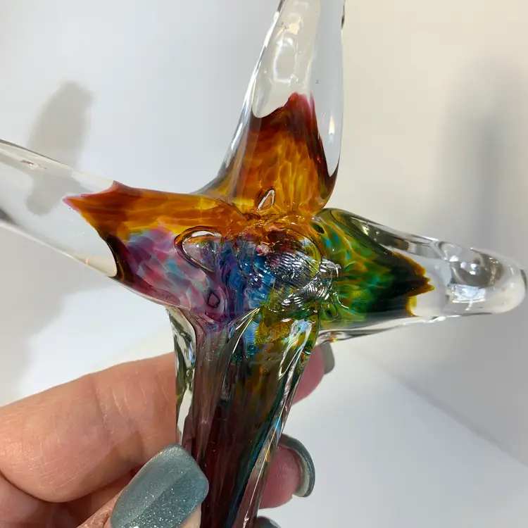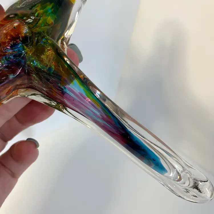 This is so beautiful! It is in great condition. No chips or cracks. Measures 4 3/4 inches wide and 6 1/2 inches tall. Weighs 6 ounces. If the actual postage ends up being less than what you paid, you will be refunded for anything over one dollar.