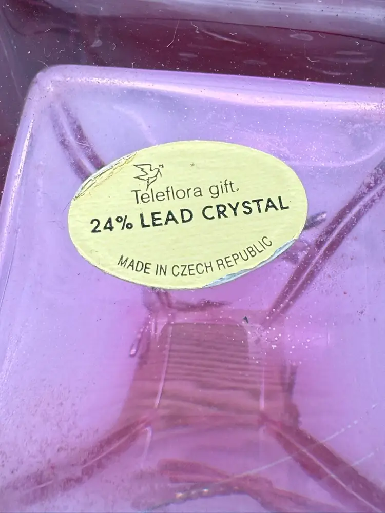 Measures 10” tall, 3.5” wide No chips or cracks Stamped 24% Lead Crystal Made in Czech Republic for Teleflora