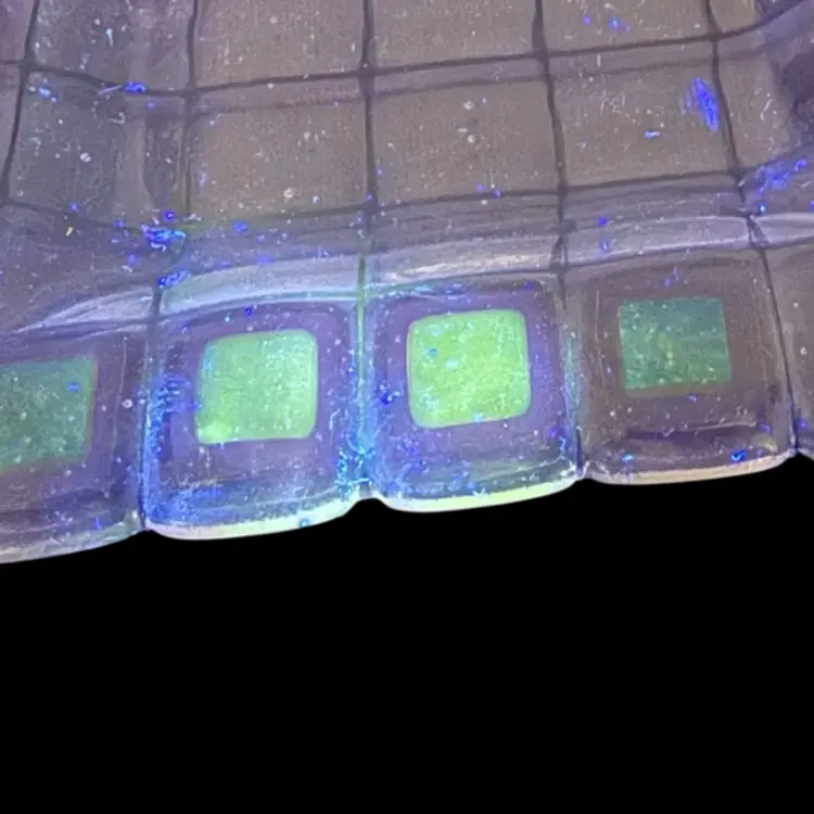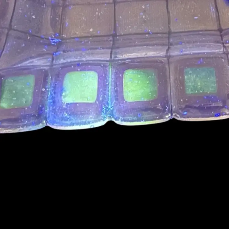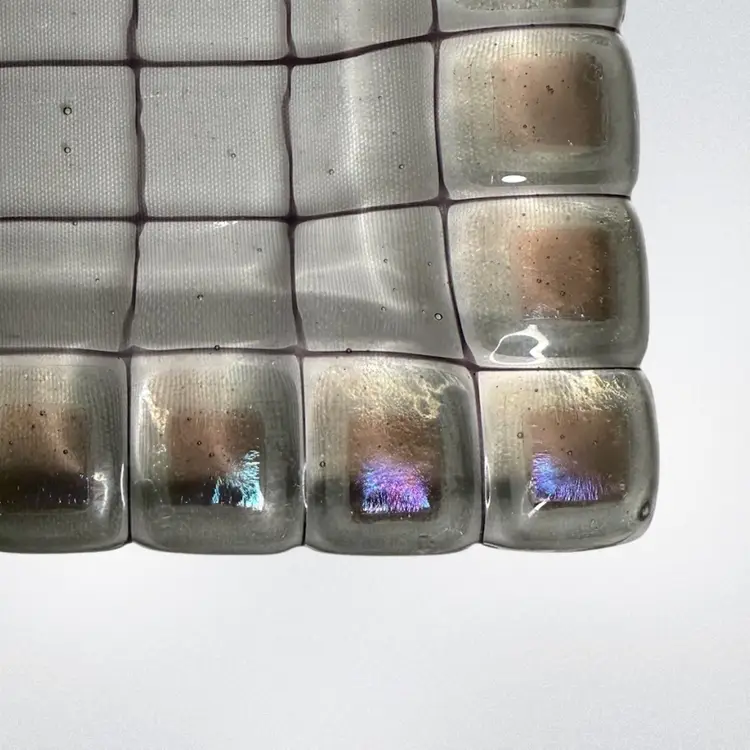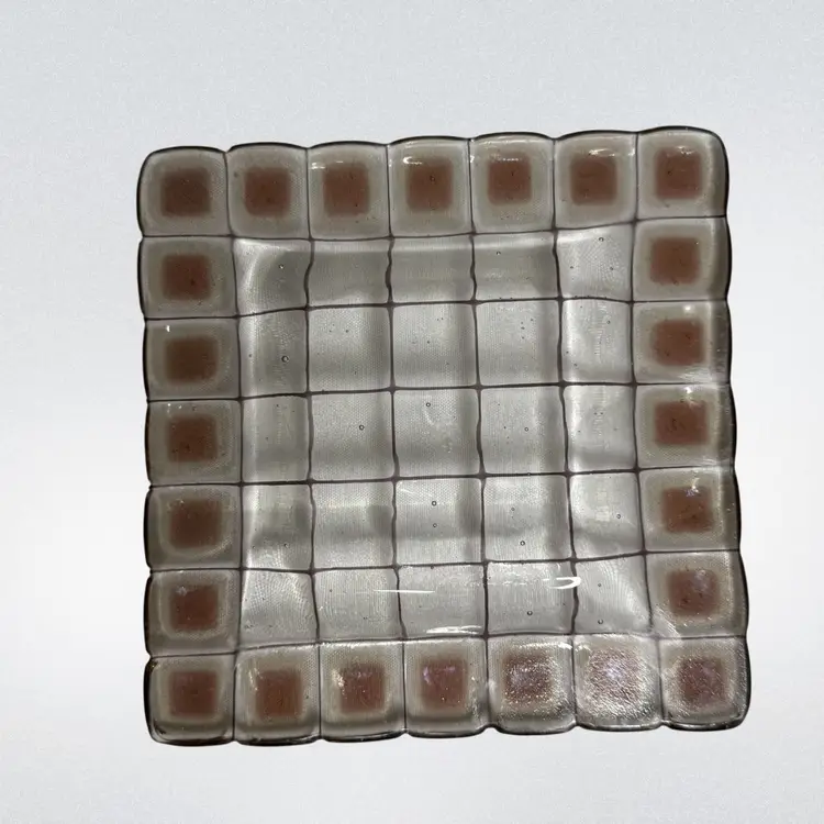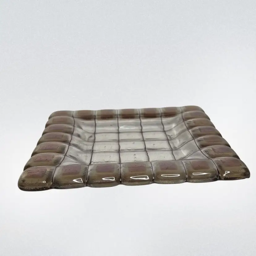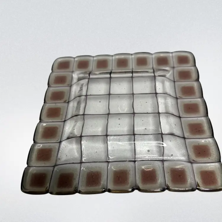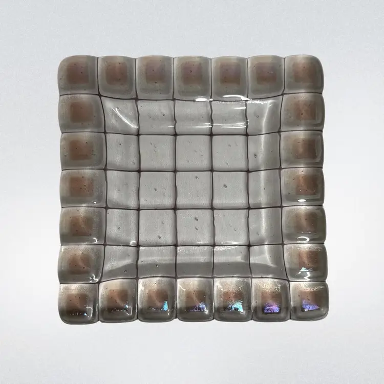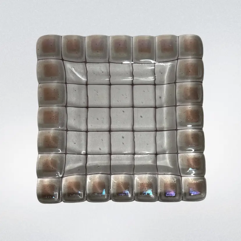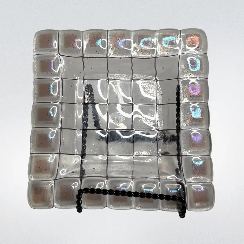 Art Glass trinket tray/catchall/shelf or table decor. Dichroic squares glow with a 365 UV Light.