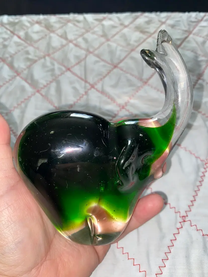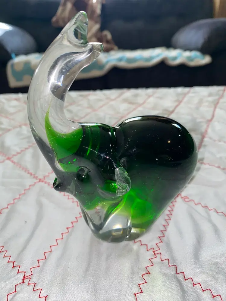 Beautiful Green art glass elephant with no cracks or chips