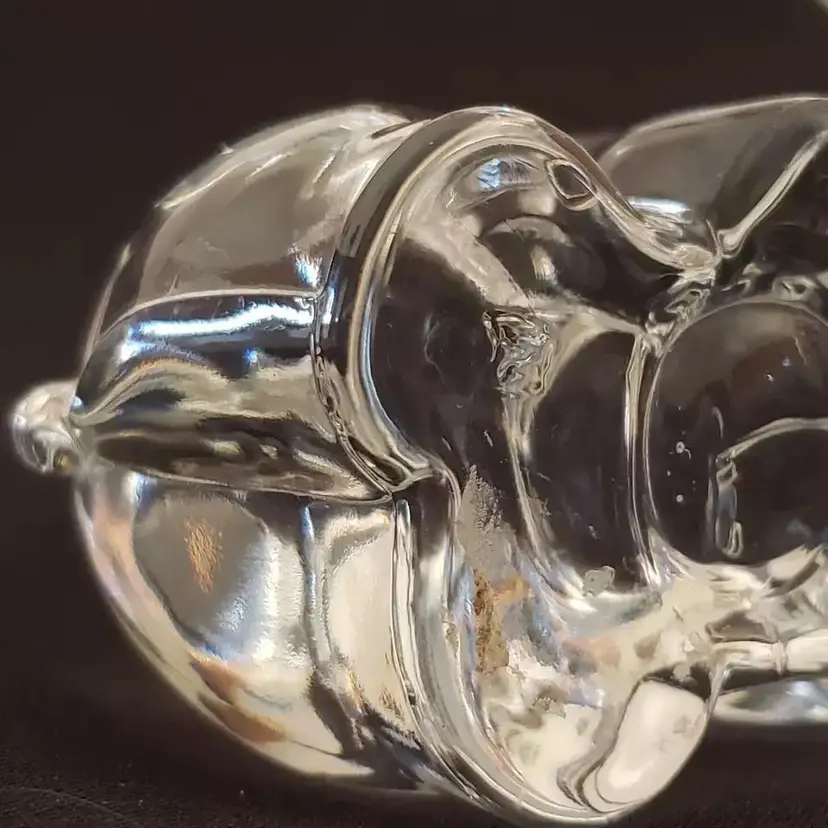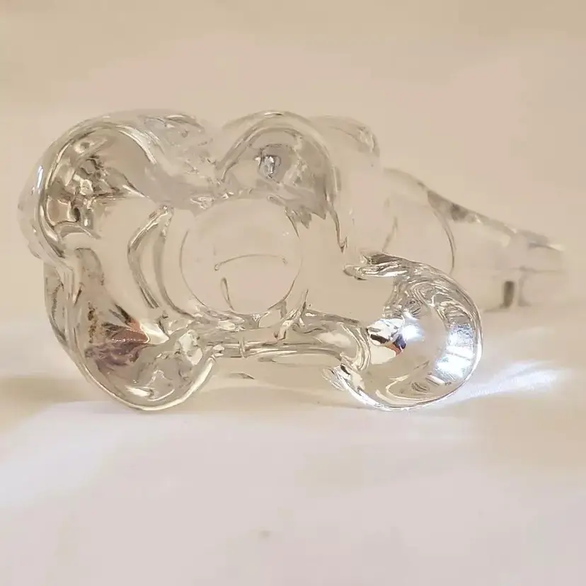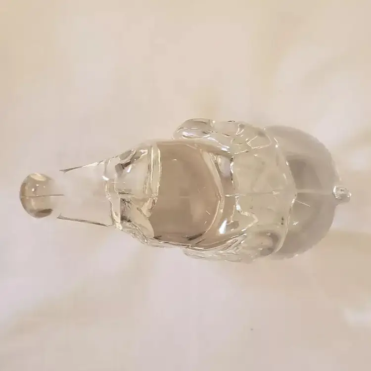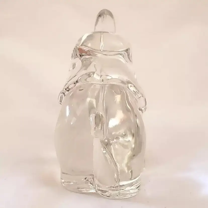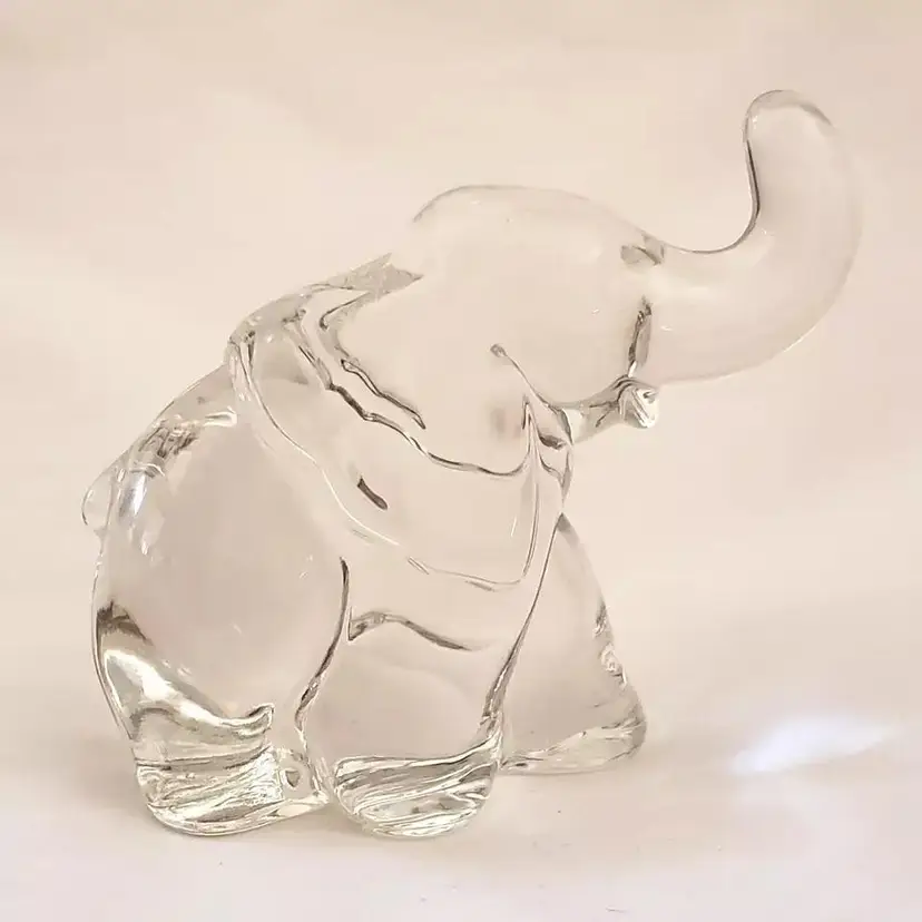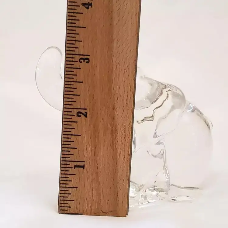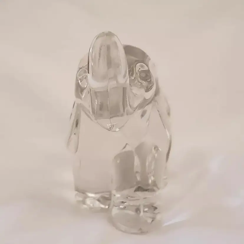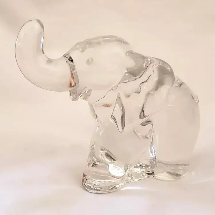 Art Glass Elephant Figurine MOSSER Paperweight Clear Glass Trunk Up 3" tall approximately. Used condition with hard to read logo on bottom, fingerprints from handling, etc. Please view all the photos and read the entire item and please ask any questions prior to purchase when possible.