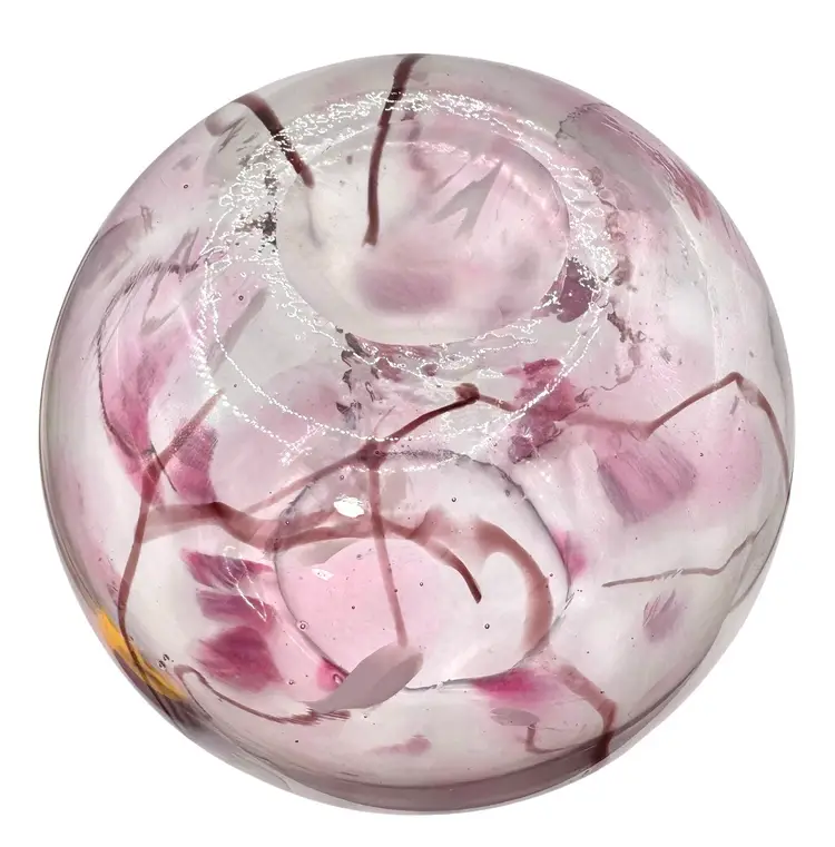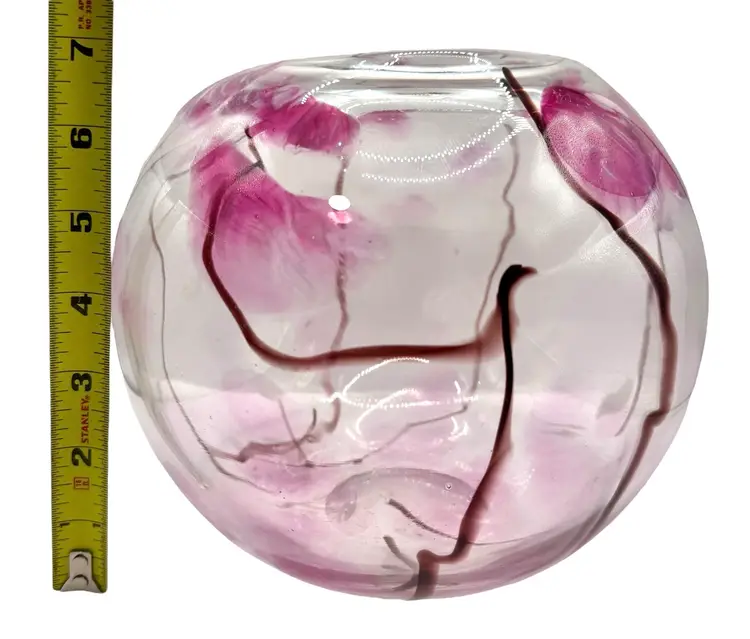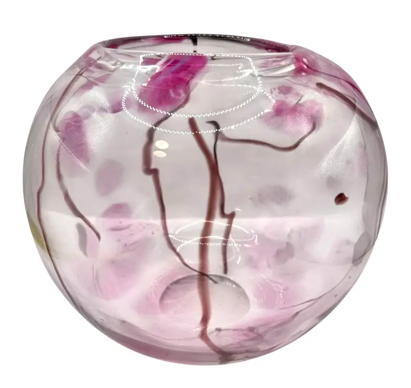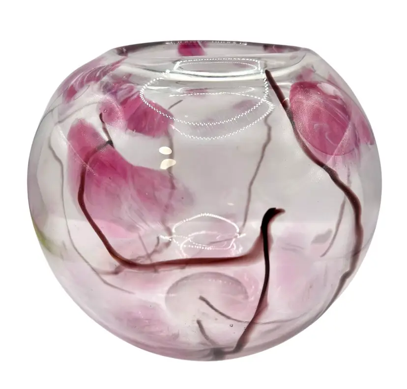 Unique glass vase with an abstract cherry blossom-like design throughout.