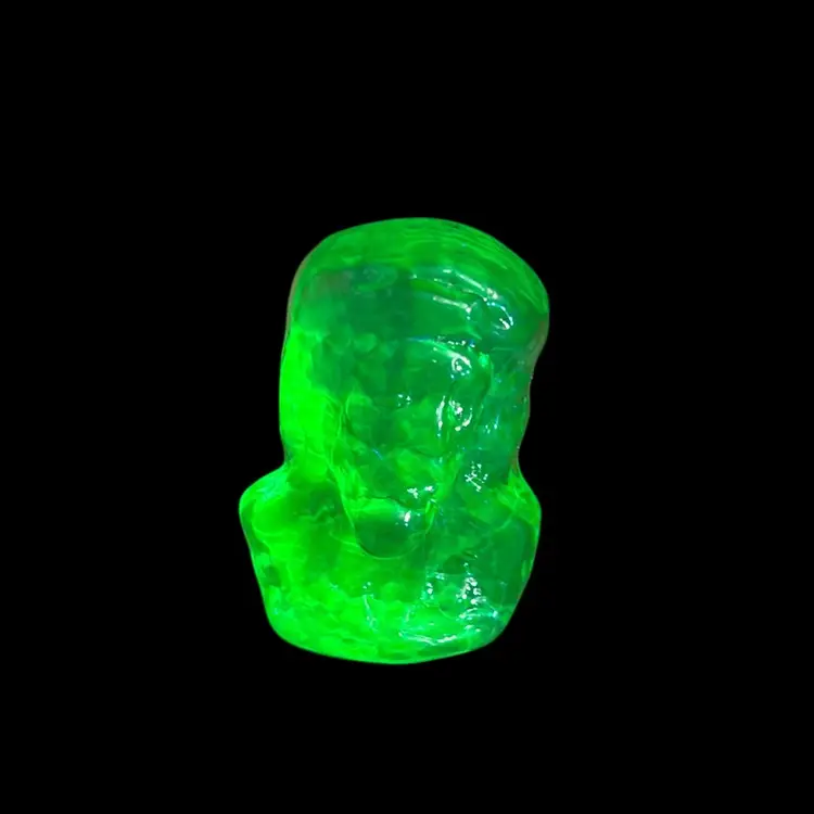 He glows . Possible Wilkerson glass. 3” h x 2” w