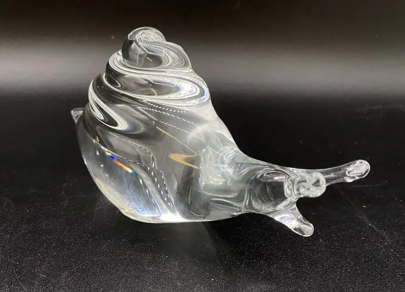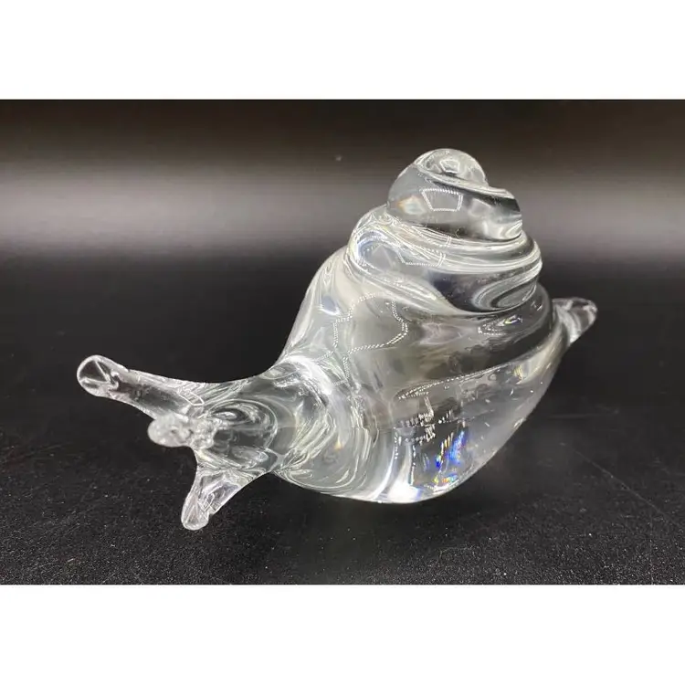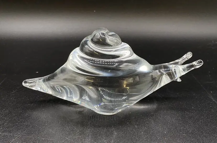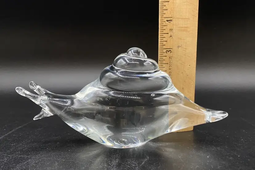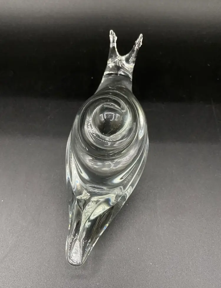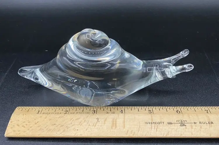 Vintage Art Glass Large Heavy Spiral Shell Snail Paperweight Figurine This is a beautiful piece of glass with very nice clarity. See photos. It is 6 1/2 inches long and it is in good condition. No markings.