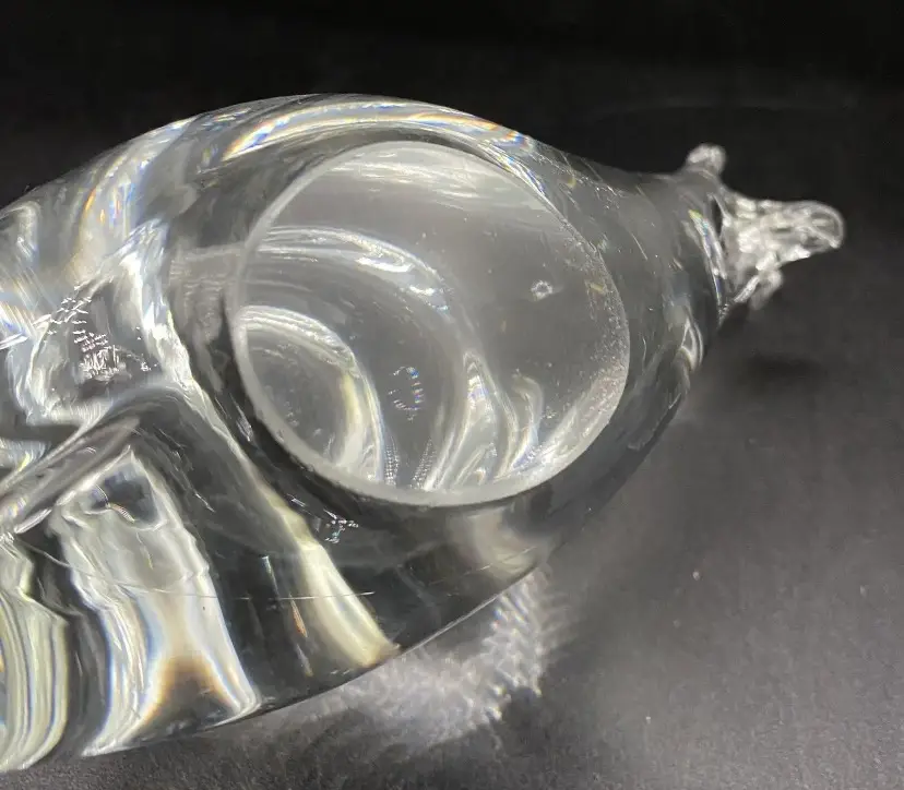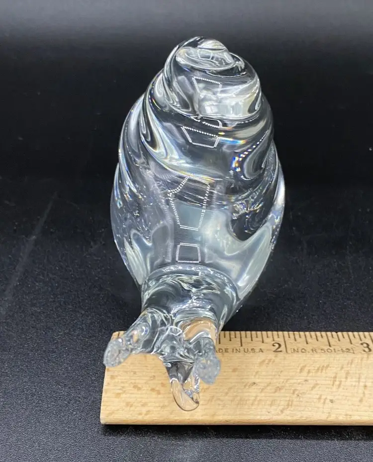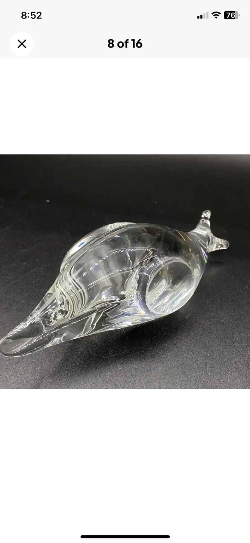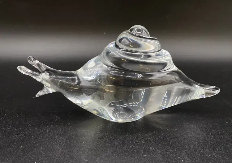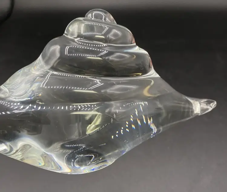 Vintage Art Glass Large Heavy Spiral Shell Snail Paperweight Figurine This is a beautiful piece of glass with very nice clarity. See photos. It is 6 1/2 inches long and it is in good condition. No markings.