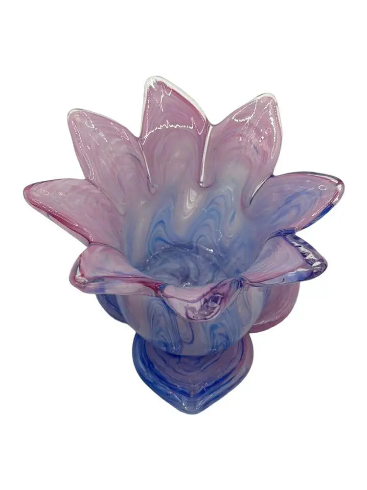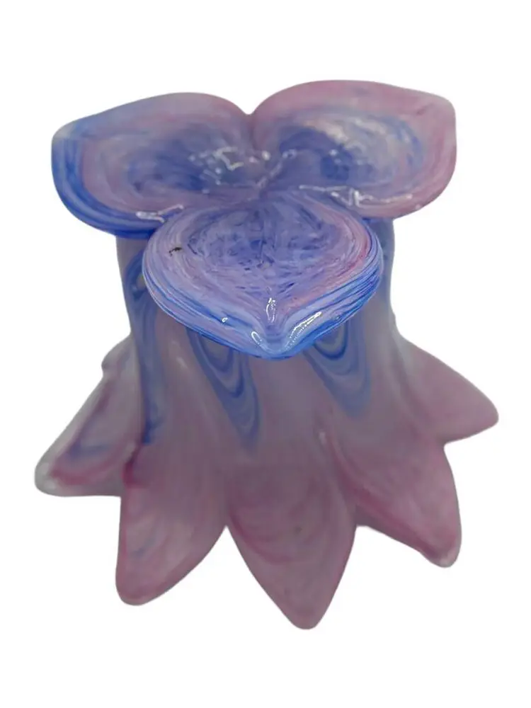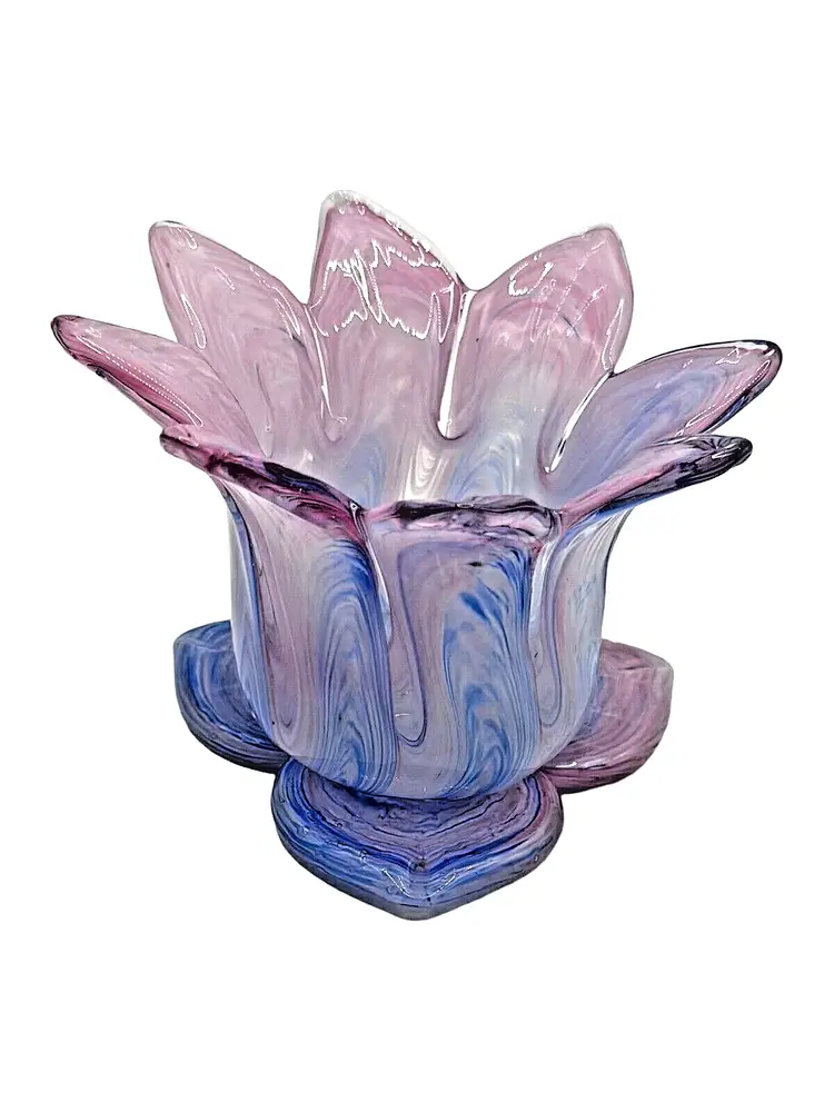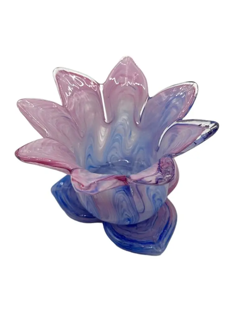 Art Glass Lotus Flower Hand Blown Candle Holder pink purple swirl spring decor 3" tall 4"across the top and 3.5" across the bottom Great shape!! No chips or cracks