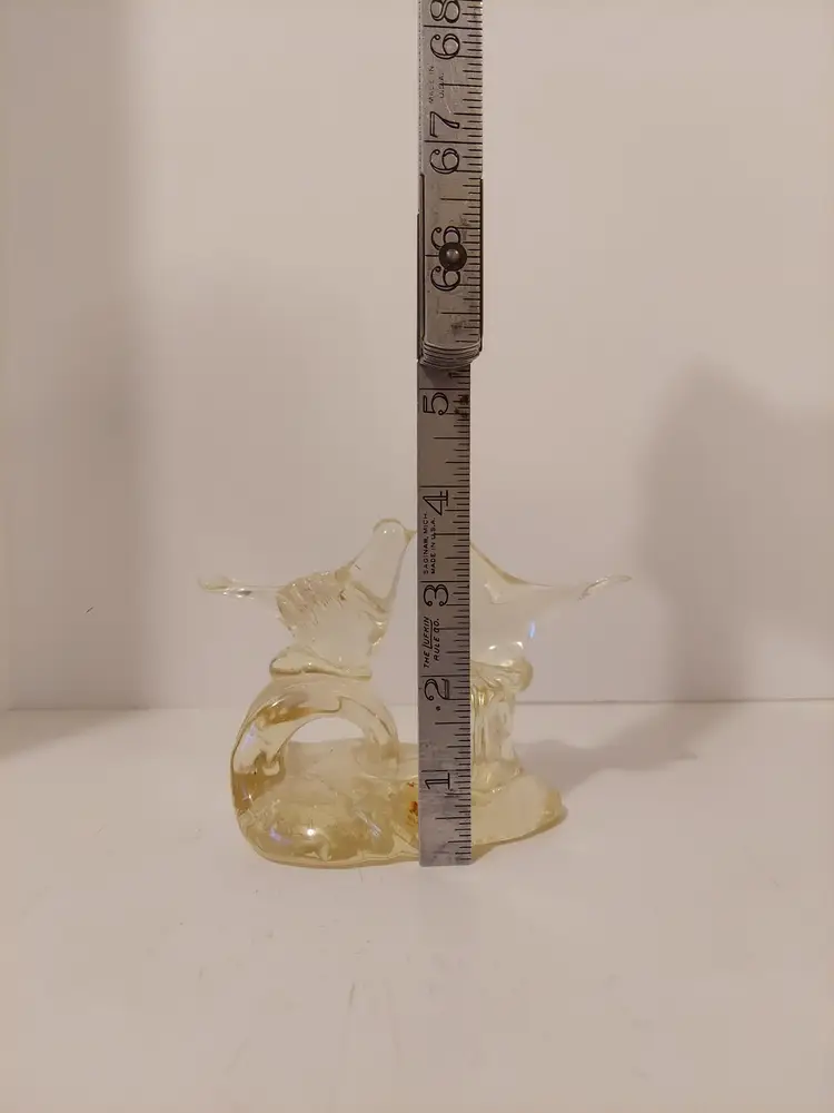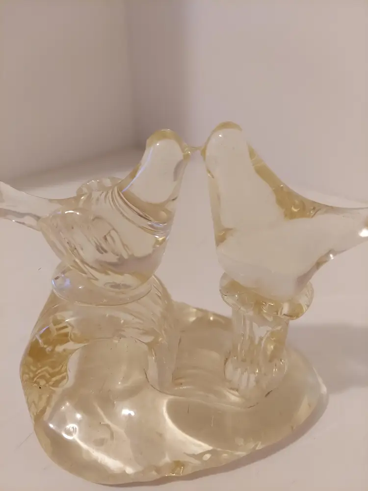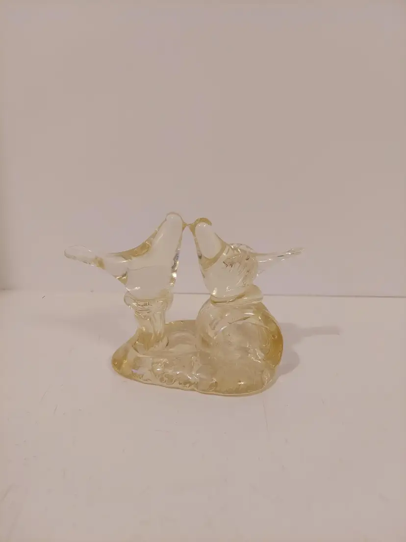 This sweet little art glass sculpture features two lovebirds. It measures approximately 5×3.75×3 inches and is in good condition.