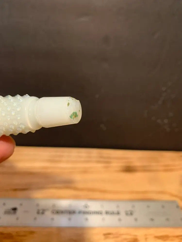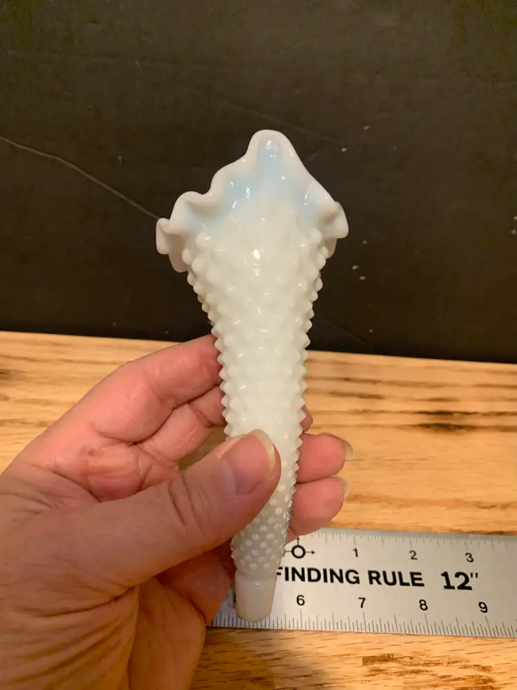 No crack, has chip at bottom, measures almost 6 1/2 inches long