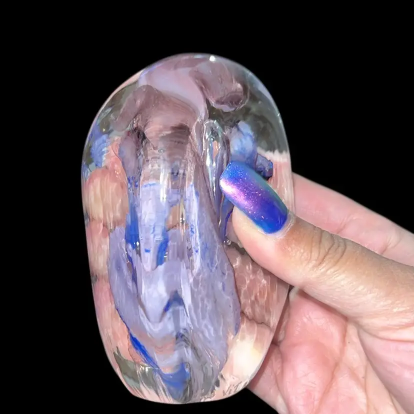 signed. I cannot find any information on this glass artist. no chips or cracks. 4 inches tall and approximately 2 1/2 inches wide.