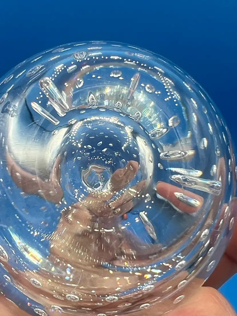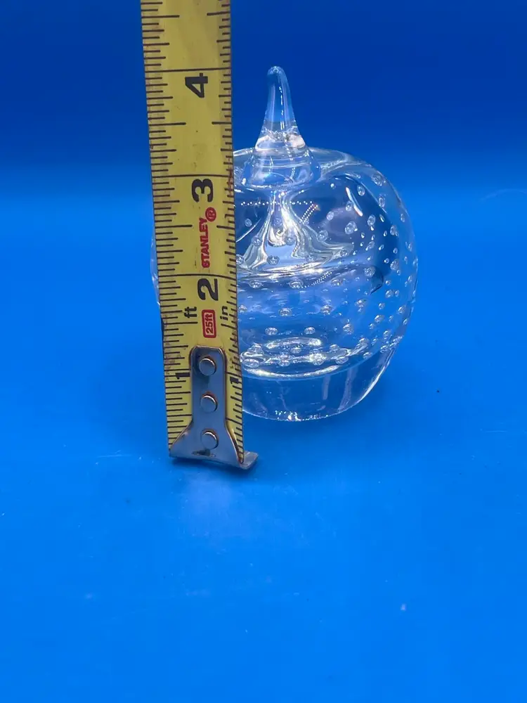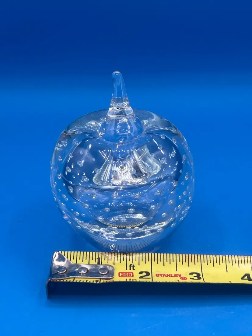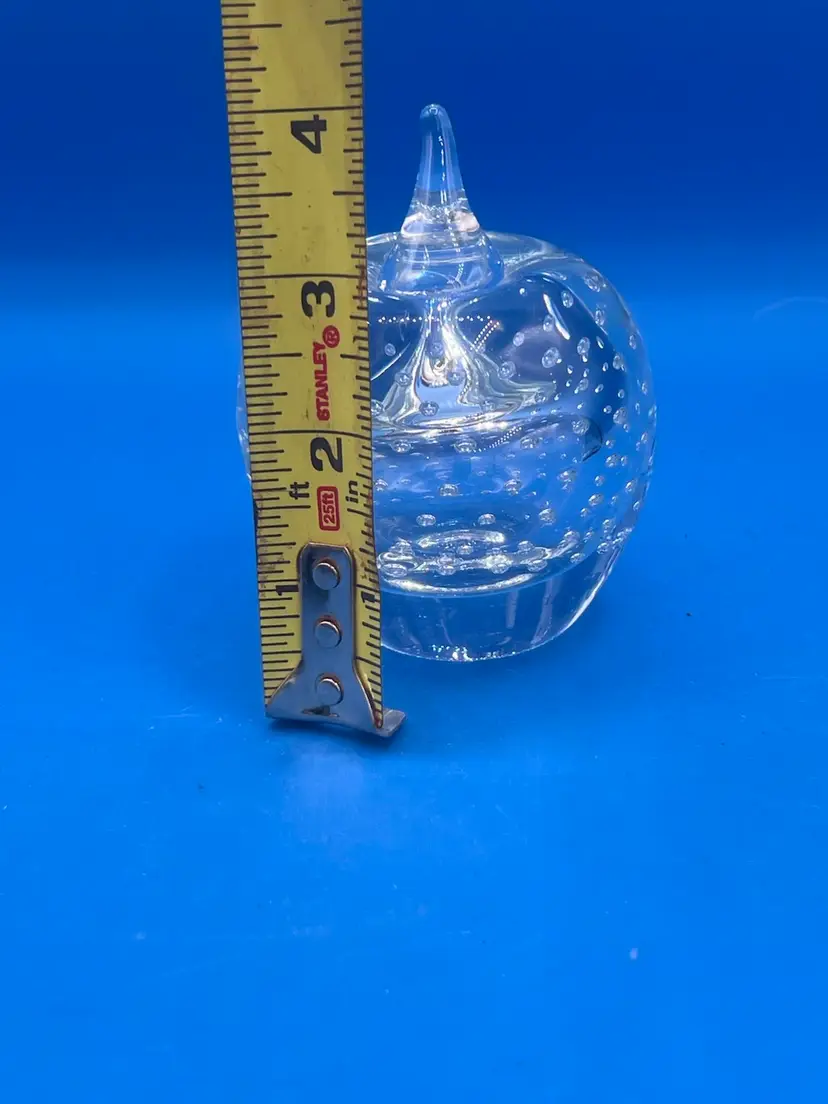 This amazing apple is in very good condition. It measures 4" tall and 3" wide. Extra nice controlled bubbles and super clear and shiny bottom.