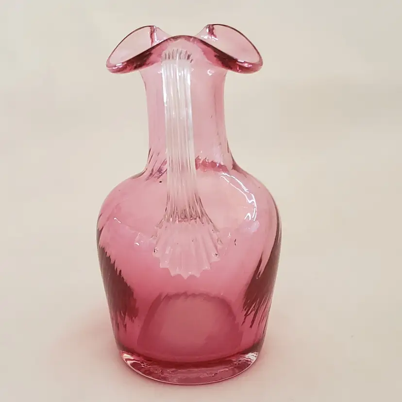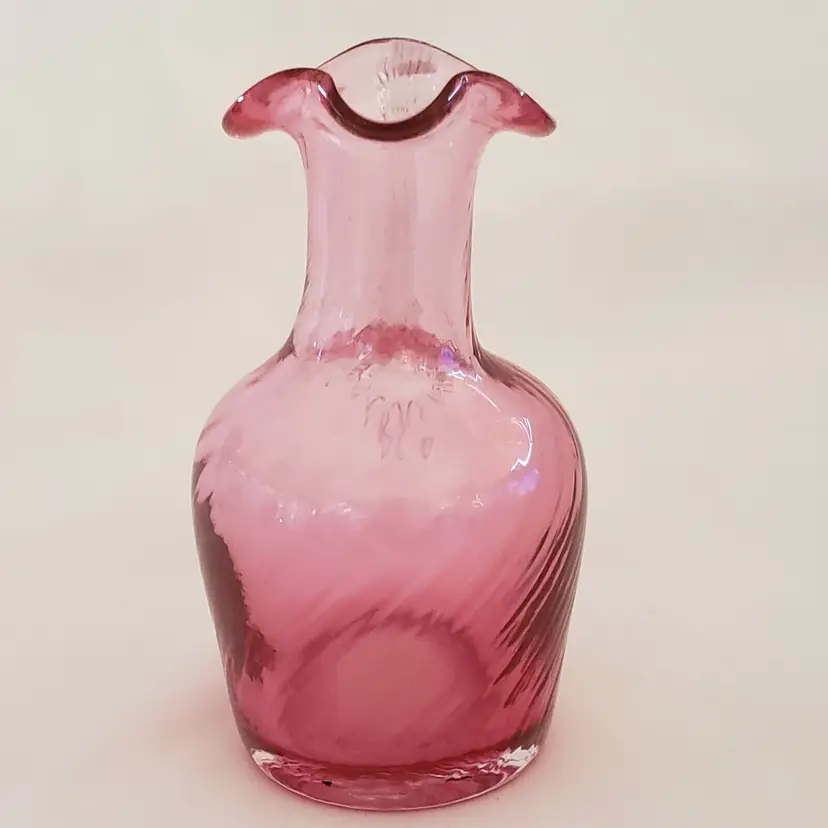 Origin: North America Pattern: Swirl Antique: Yes Type of Glass: Cranberry Signed: No Color: Cranberry Material: Glass Glassmaking Technique: Hand Blown Additional Parts Required: No Subject: North America Vintage: Yes Brand: Pilgrim Type: Vase Style: Decorative Theme: Floral & Garden Original/Reproduction: Vintage Original Production Style: Art Glass Production Technique: Hand Blown Glass Country/Region of Manufacture: United States Handmade: Yes