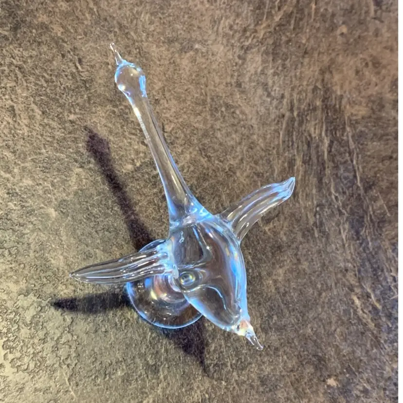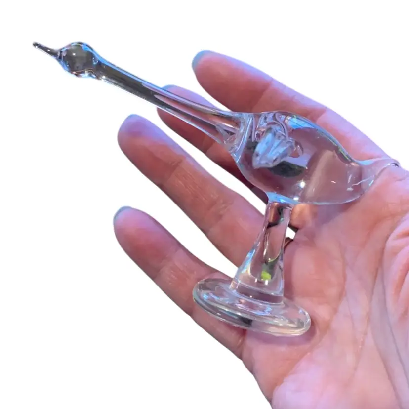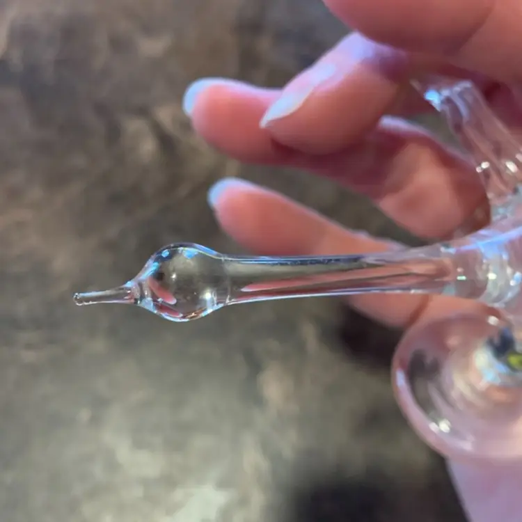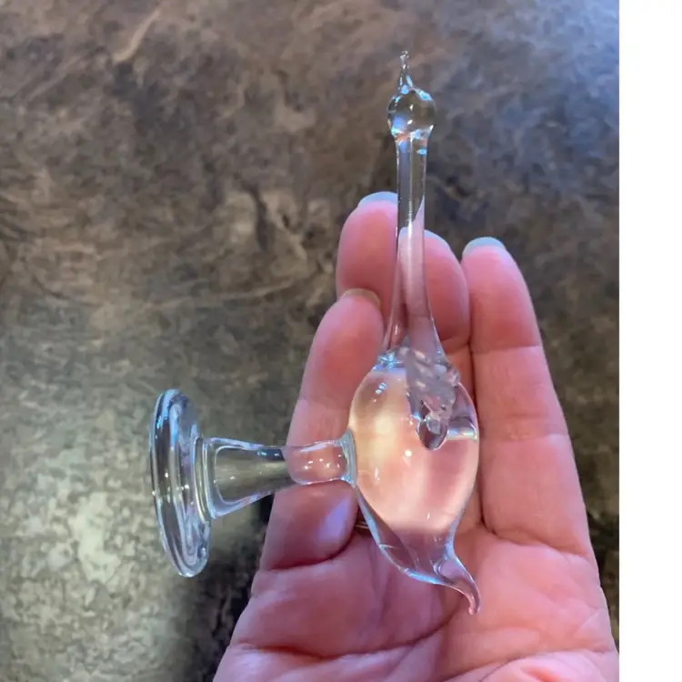 Clear blown glass. Small and delicate. With no chips, cracks or repairs. Please see photos for details. I am happy to answer any questions. Thank you for checking out my listings.