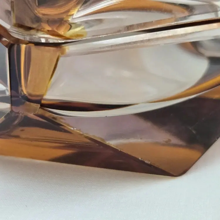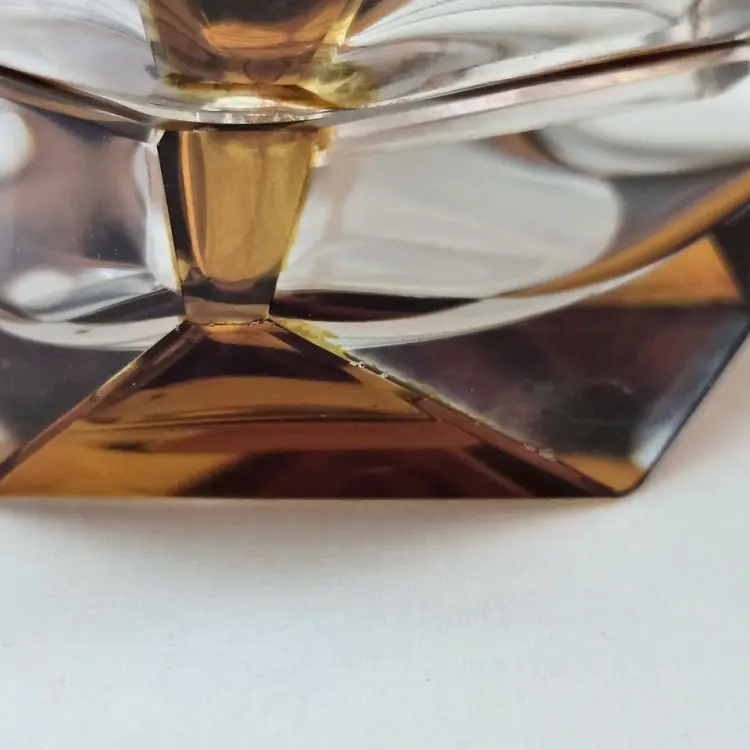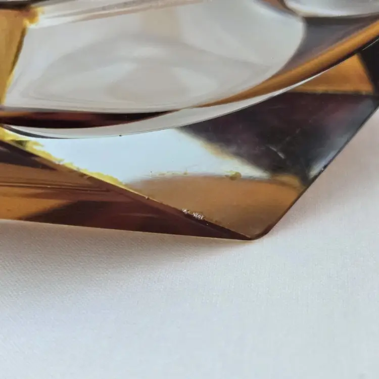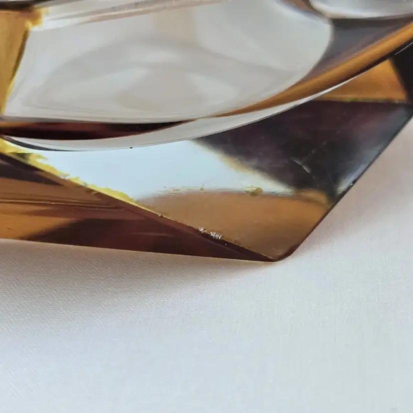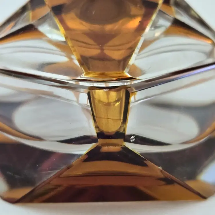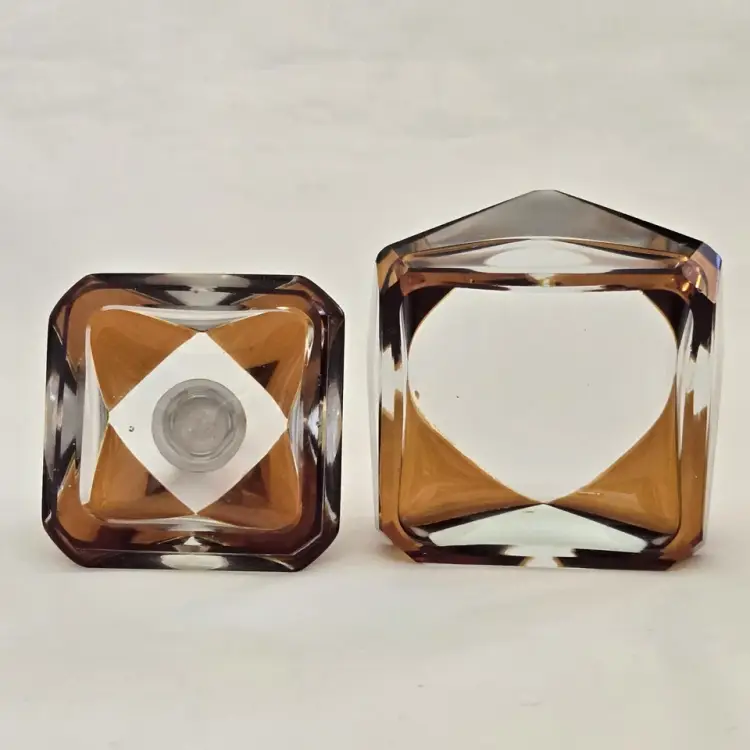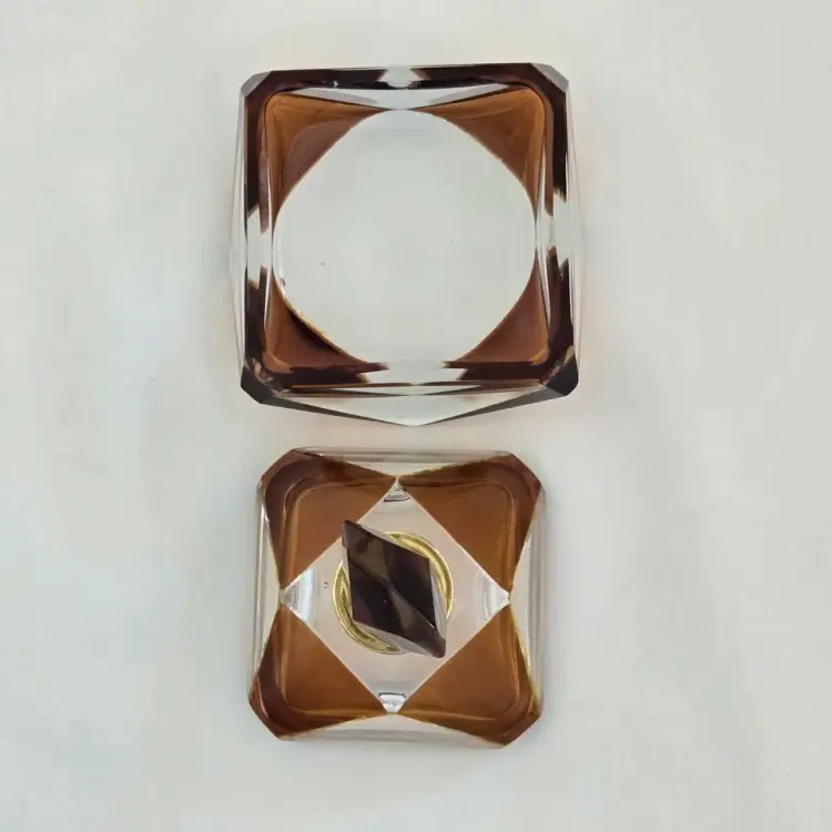 Art Glass Trinket Box Amber Flashed Dish & Lid with Brass Color strip MCM Art Deco Vintage. Used condition with flashed color, fleabites, chips, edgewear, unbranded, bubbles within the glass and no makers mark. Please view all the photos and please ask any questions prior to purchase when possible.