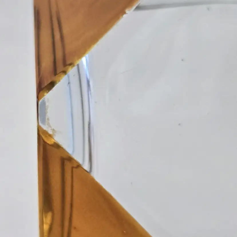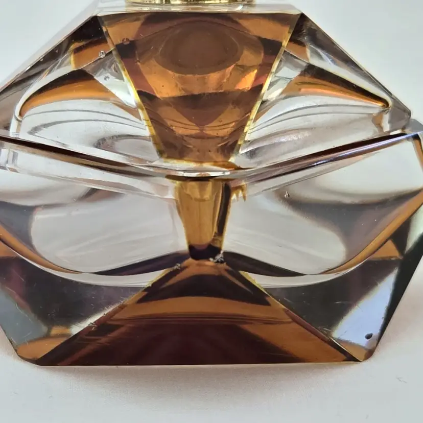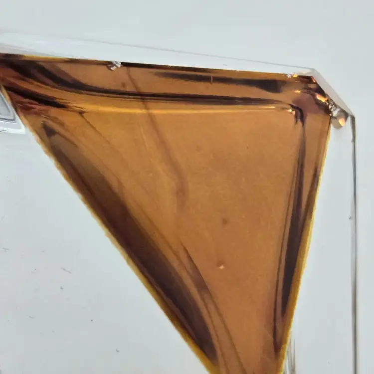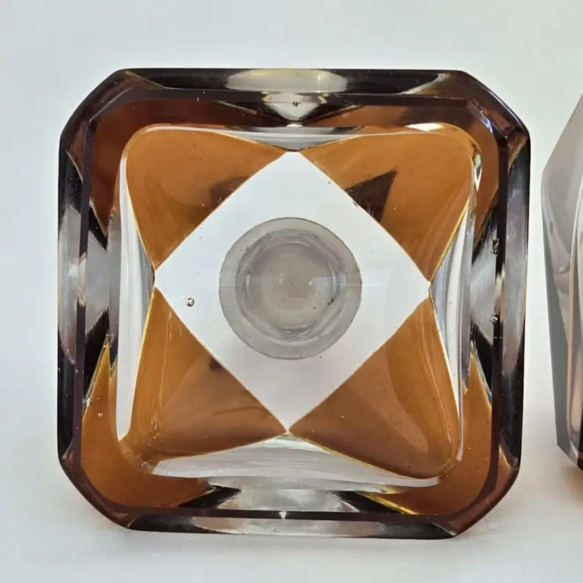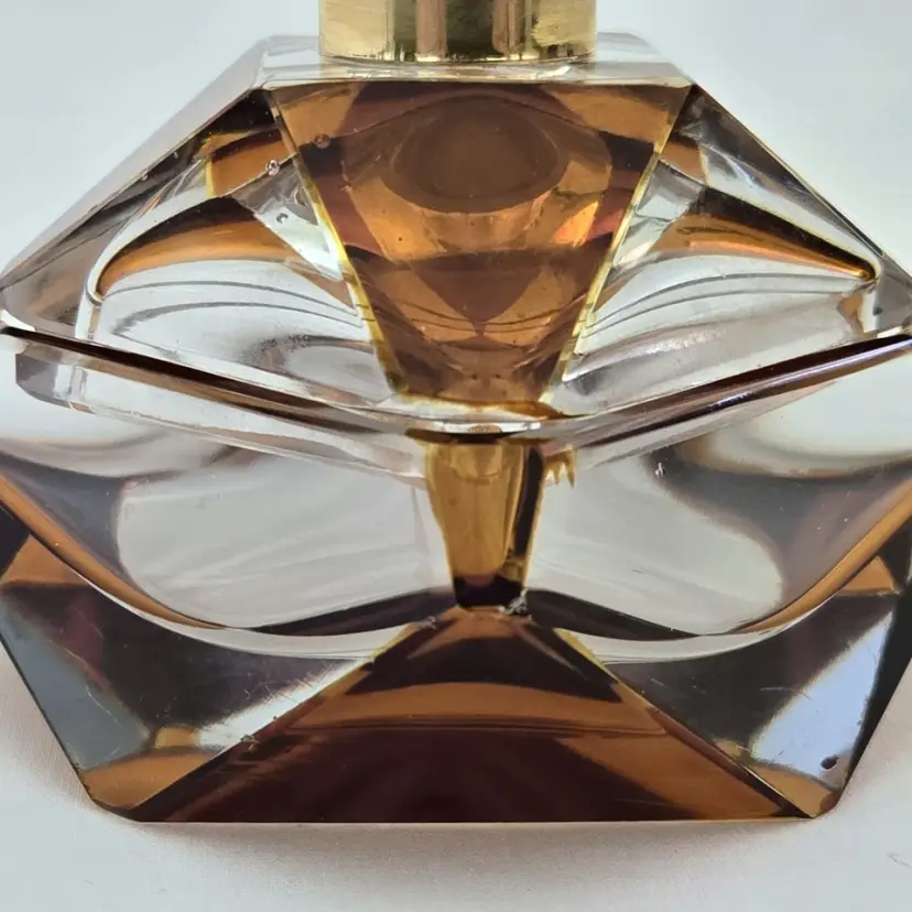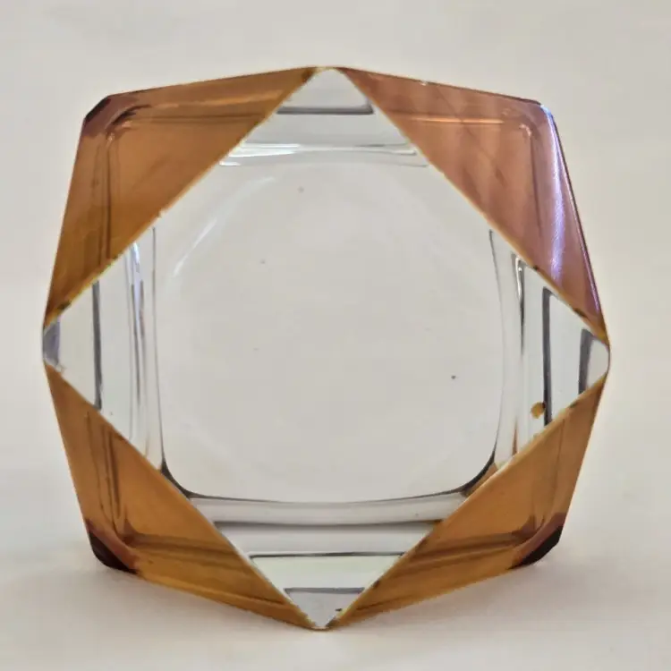 Art Glass Trinket Box Amber Flashed Dish & Lid with Brass Color strip MCM Art Deco Vintage. Used condition with flashed color, fleabites, chips, edgewear, unbranded, bubbles within the glass and no makers mark. Please view all the photos and please ask any questions prior to purchase when possible.