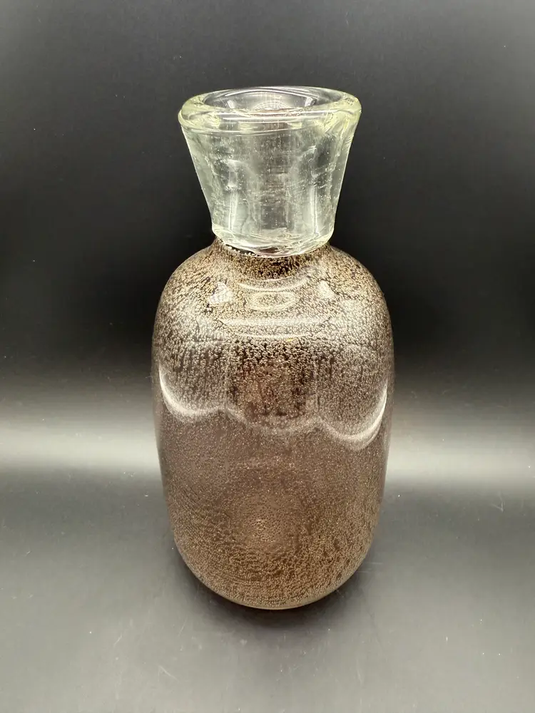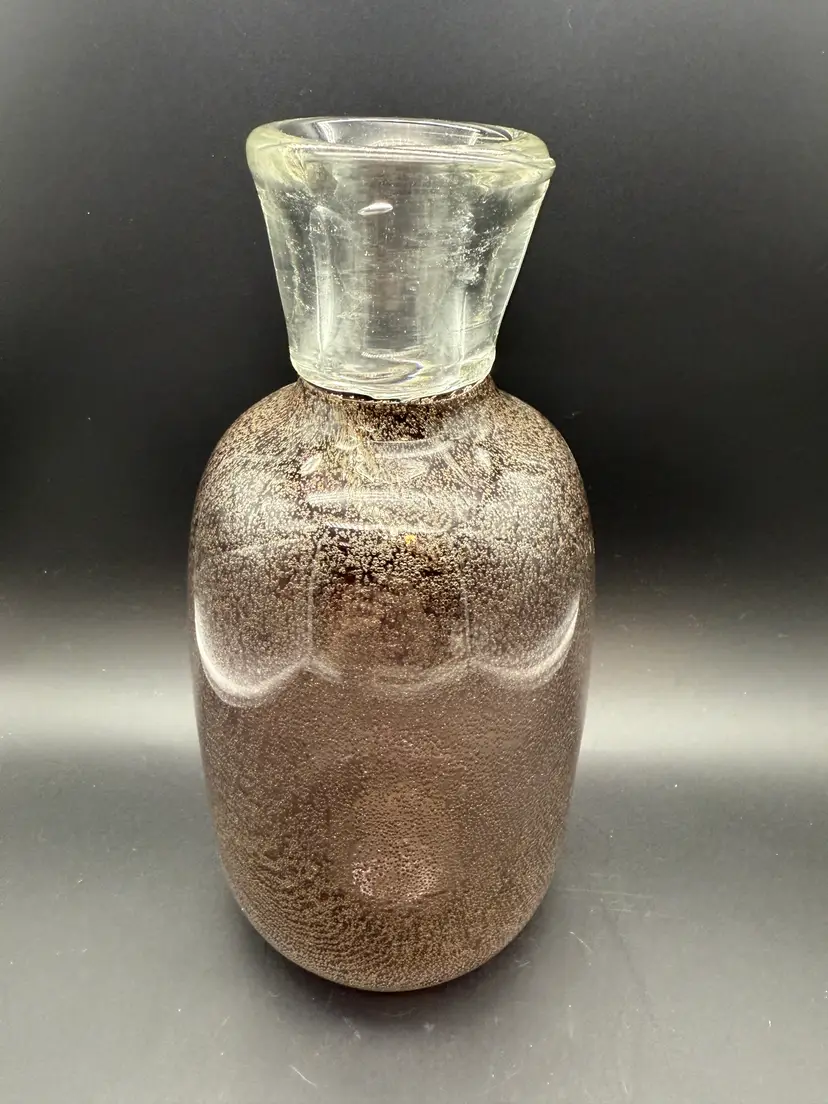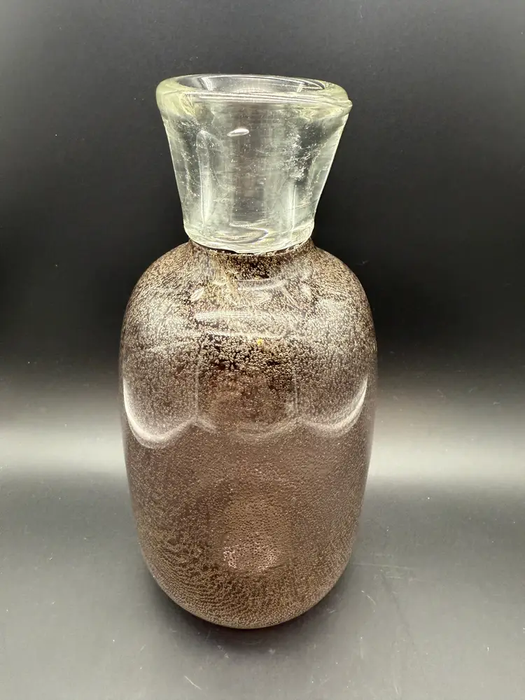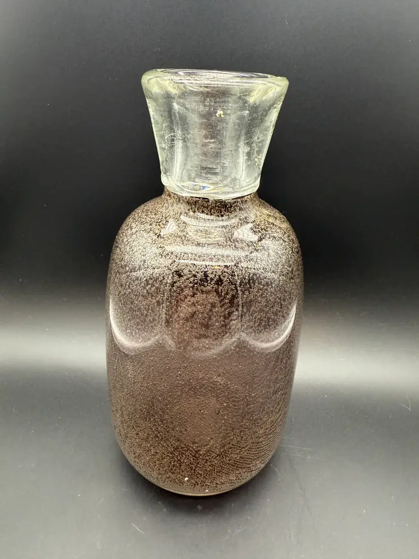 Pre-owned condition with no chips or cracks. The color is very difficult to describe as all the bubbles look goldish and the glass color itself looks a light purple to me.