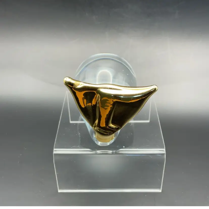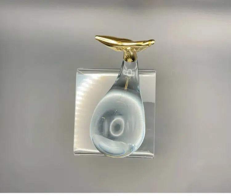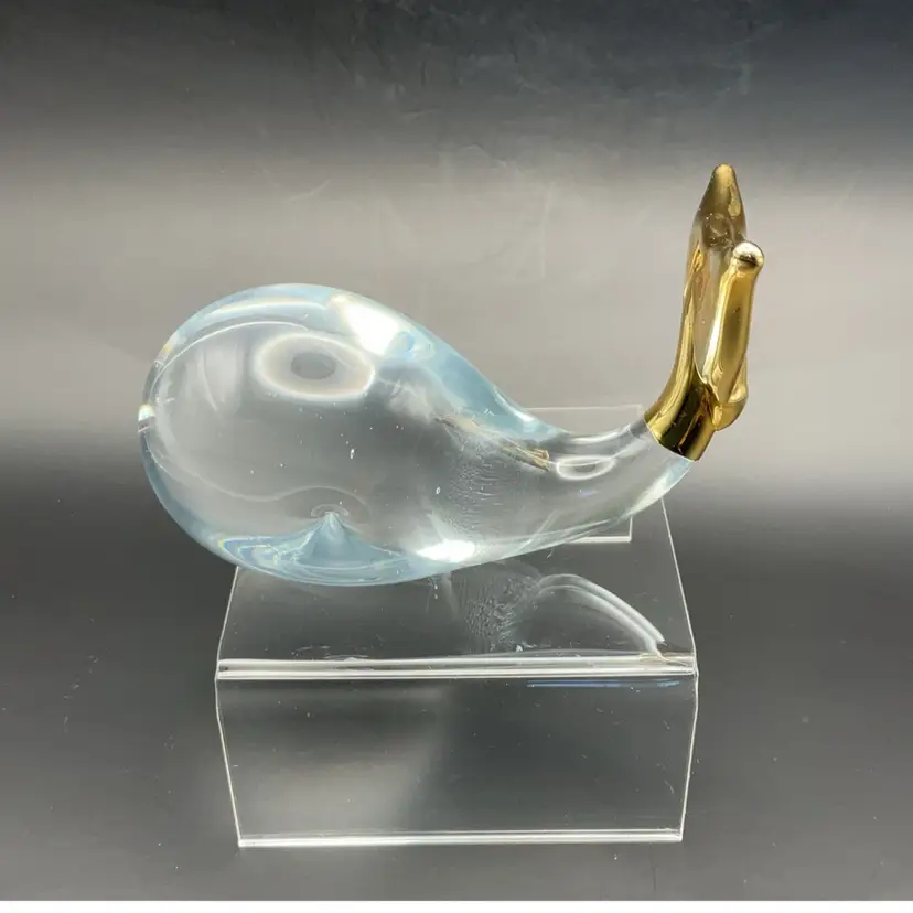 Hand blown art glass clear glass figurine/paperweight with gold trimmed tail.